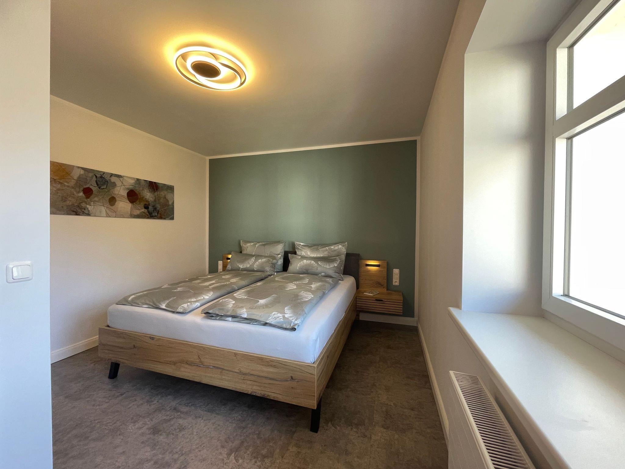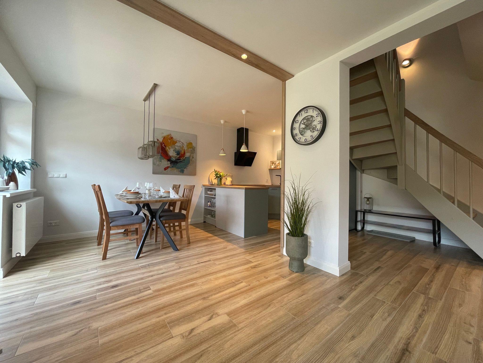 Die Ferienwohnung ?Meerzeit? ist eine zweigeschossige Maisonette, die durch eine einladende Treppe verbunden ist. Große Fenster lassen viel Tageslicht herein und bieten einen Blick auf den Innenhof ? eine ruhige Oase fernab vom Trubel der Stadt. Auf der Terrasse genießen Sie Kaffee und Kuchen bei frischer Luft. Im unteren Bereich der Maisonette lädt ein helles Wohnzimmer mit modernen Möbeln und liebevollen Details zum Entspannen ein. Die offene Küche bietet alles für Ihre kulinarischen Kreationen. Zusätzlich befindet sich unten eine praktische Gästetoilette. In der oberen Etage erwarten Sie zwei ruhige Schlafzimmer für erholsame Nächte. Das große Bad lädt zu einem Wellness-Ritual ein und sorgt für Erholung von Körper und Geist. Die Maisonette vereint Komfort und Ruhe in einer warmen, einladenden Atmosphäre. Lassen Sie sich verzaubern und genießen Sie einen unvergesslichen Aufenthalt!