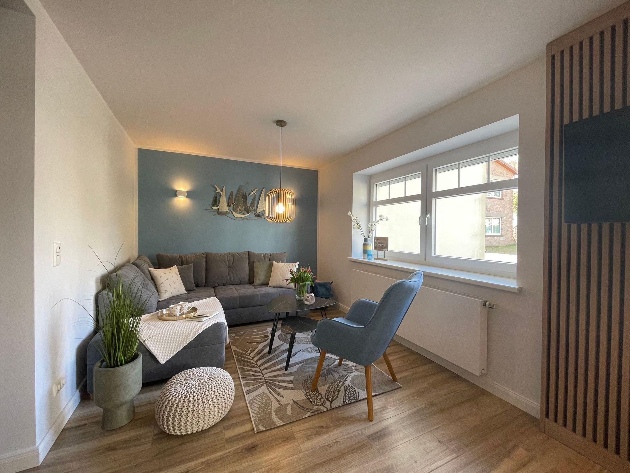 Unsere 86 m² große Ferienwohnung „Meerzeit“ bietet Ihnen eine Oase der Ruhe, fernab vom Trubel der Stadt. Die Ferienwohnung ist eine Maisonette und erstreckt sich über zwei Etagen und ist durch eine einladende Treppe miteinander verbunden, die Ihnen den Zugang zu den verschiedenen Wohnbereichen ermöglicht. Die großen Fenster lassen viel Tageslicht herein und bieten einen Blick auf den Innenhof. Auf der eigenen Terrasse können Sie bei einer Tasse Kaffee die frische Luft genießen oder einfach die Seele baumeln lassen.