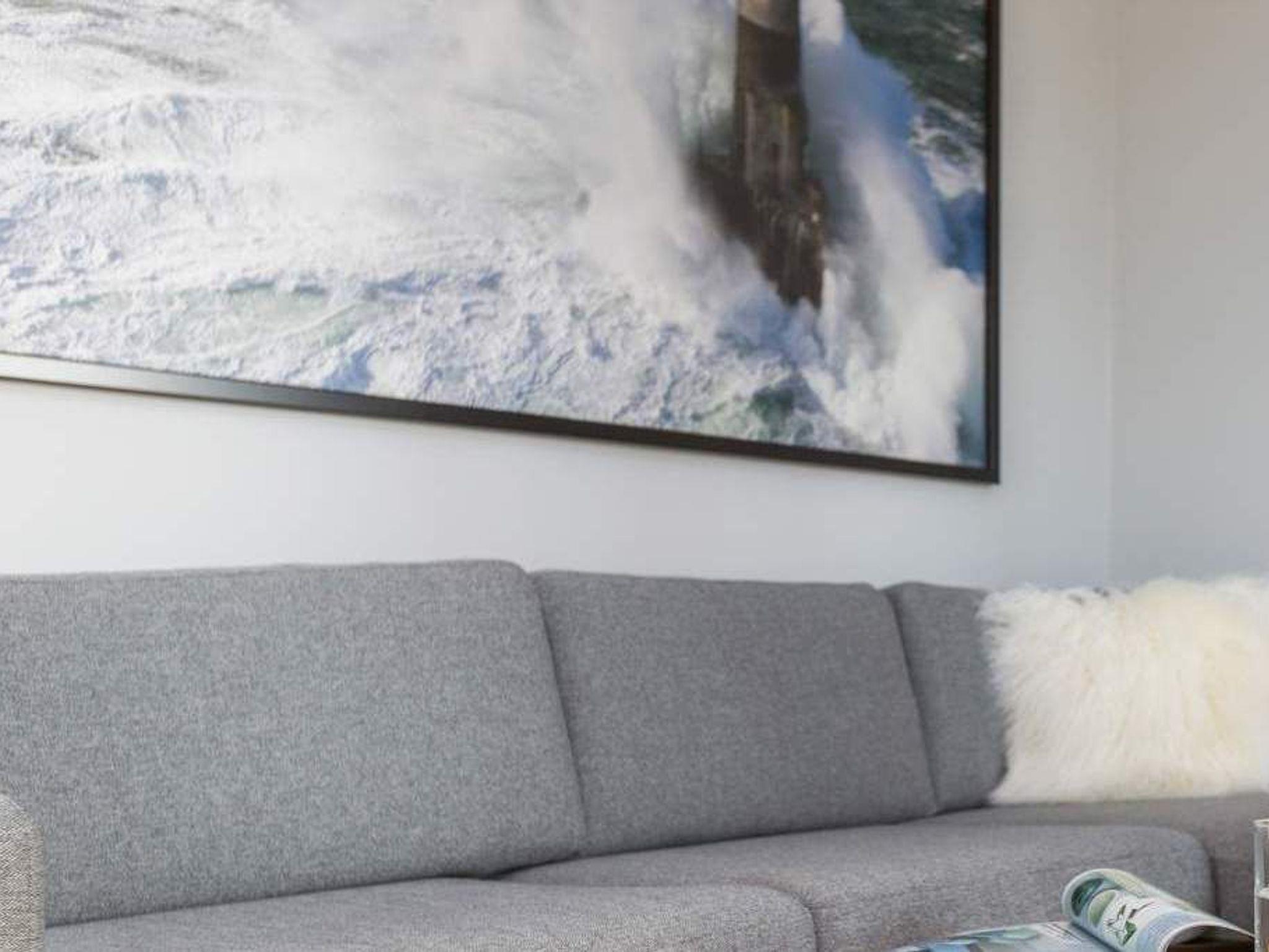 Modernes Appartement mit Kamin und Balkonblick