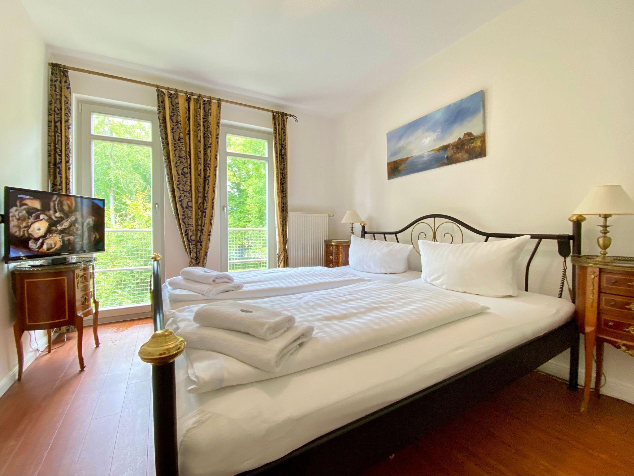 Genießen Sie die stilvolle Dreiraumwohnung in der Residenz Bleichröder im ruhigen Villenviertel von Heringsdorf mit großem Balkon und eigenem Park.