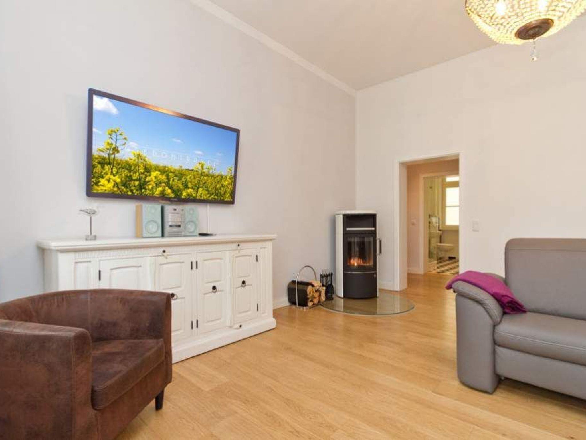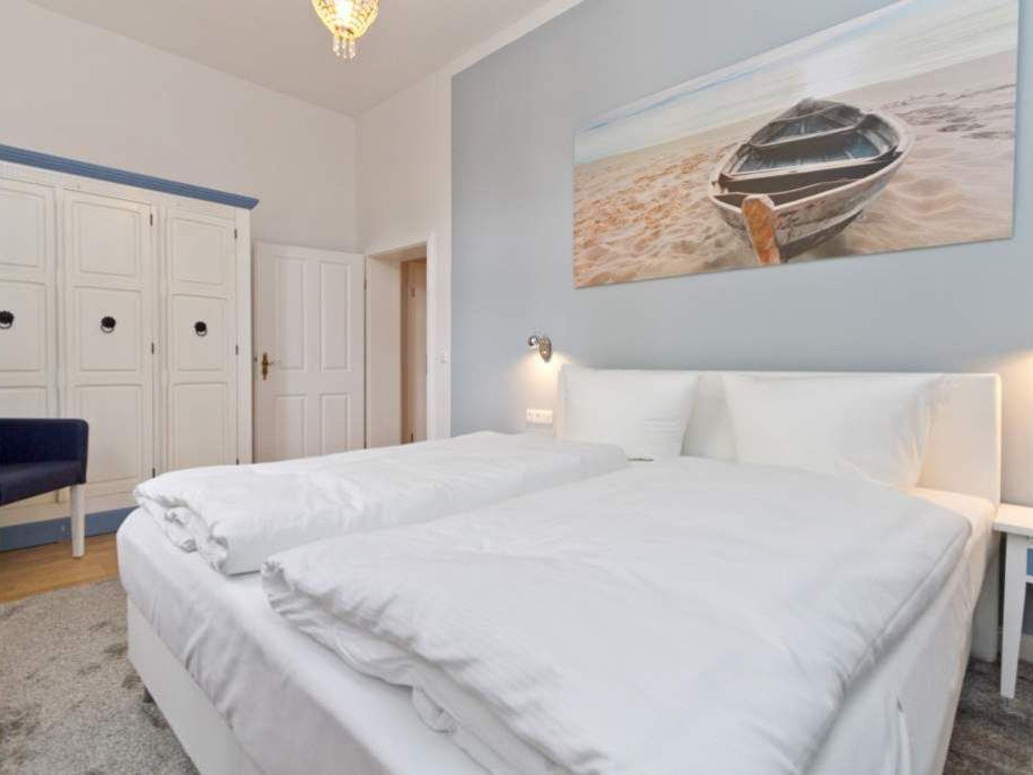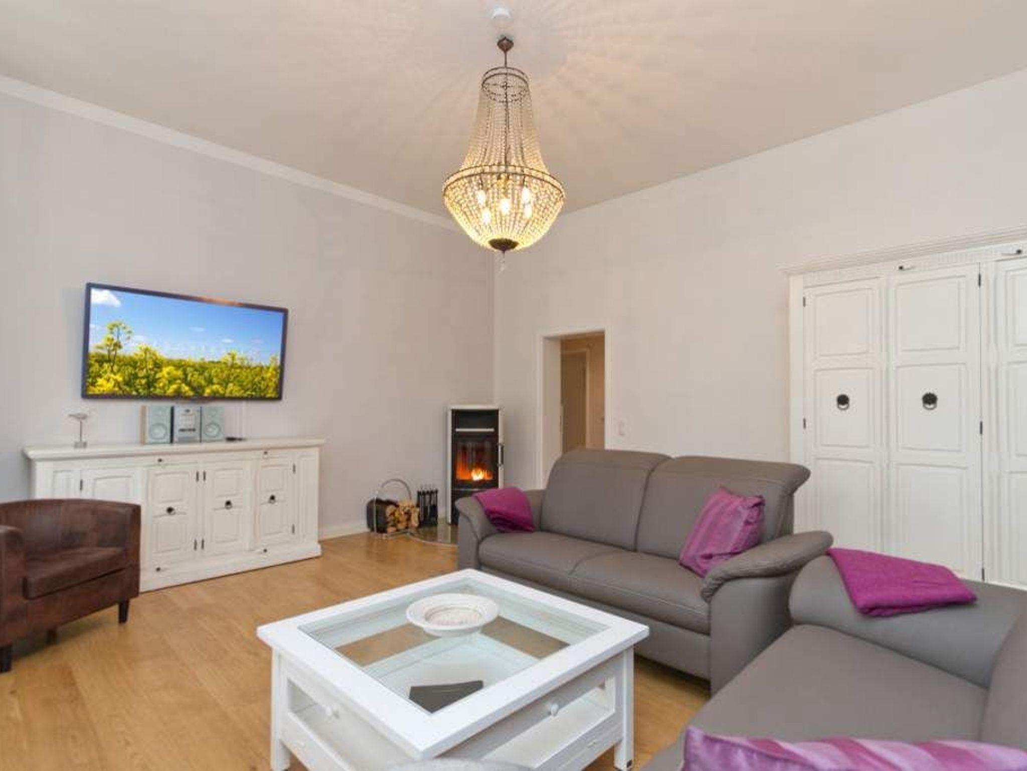 Willkommen in der 4-Raum-Ferienwohnung Nr. 01 (95 qm) in der eleganten Villa Saphira ? perfekt für einen erholsamen Aufenthalt mit bis zu 6 Personen und 2 Kleinkindern! Diese großzügige Unterkunft bietet höchsten Komfort und eine ideale Lage direkt an der Strandpromenade. Die Wohnung verfügt über drei gemütliche Schlafzimmer: ein Hauptschlafzimmer mit Doppelbett (1,80 m x 2,00 m) und Flat-TV, ein weiteres Schlafzimmer mit zwei Einzelbetten (je 0,90 m x 2,00 m) sowie ein drittes Schlafzimmer mit einem komfortablen Boxspring-Doppelbett (1,80 m x 2,00 m) ? beide ebenfalls mit Flat-TV ausgestattet. Der einladende Wohnbereich ist das Herzstück der Wohnung. Hier können Sie auf der bequemen Sitzgruppe entspannen, den Kaminofen genießen oder Ihre Lieblingsfilme auf dem Flat-TV schauen. Die angrenzende Küchenzeile im charmanten Erker ist voll ausgestattet und bietet einen Essplatz mit direktem Zugang zur Strandpromenade. Das moderne Badezimmer mit Dusche und WC sowie ein zusätzliches Gäste-WC sorgen für zusätzlichen Komfort. Selbstverständlich nutzen Sie in der gesamten Wohnung kostenfreies WLAN. Zwei PKW-Stellplätze direkt am Haus stehen Ihnen ebenfalls zur Verfügung. Für unsere kleinen Gäste stellen wir auf Wunsch ein Kinderreisebett (ohne zusätzliche Matratze [&] Bettzeug) und einen Hochstuhl bereit (gegen Aufpreis). Damit Sie sich rundum wohlfühlen, sind bei Ihrer Anreise die Betten bereits bezogen, und eine Erstausstattung mit Handtüchern liegt für Sie bereit. Genießen Sie den perfekten Mix aus Komfort und Strandnähe in dieser Ferienwohnung. Wir freuen uns darauf, Sie in der Villa Saphira willkommen zu heißen