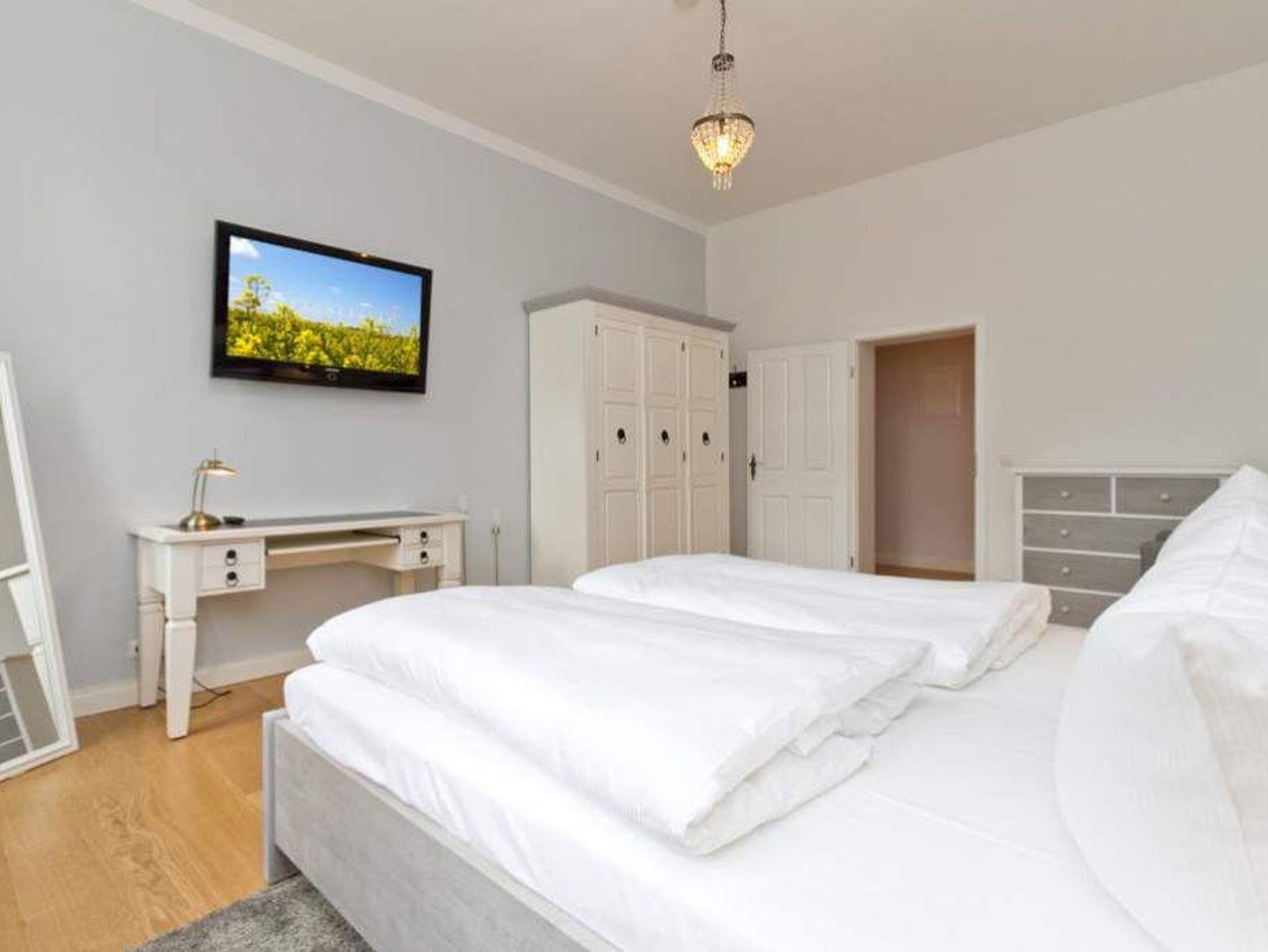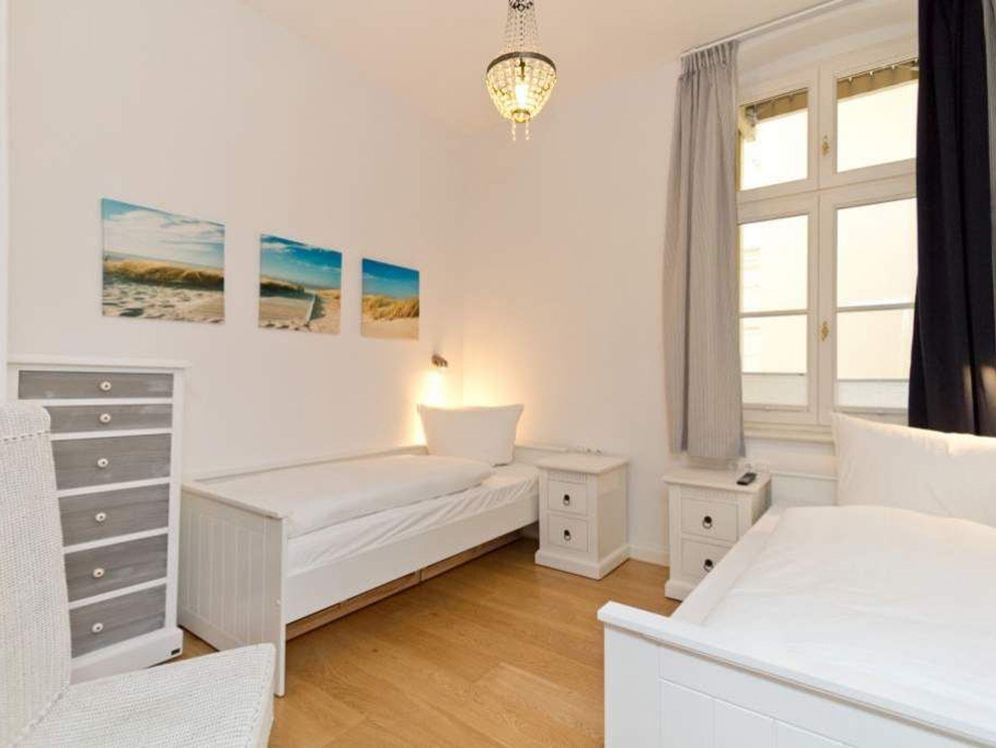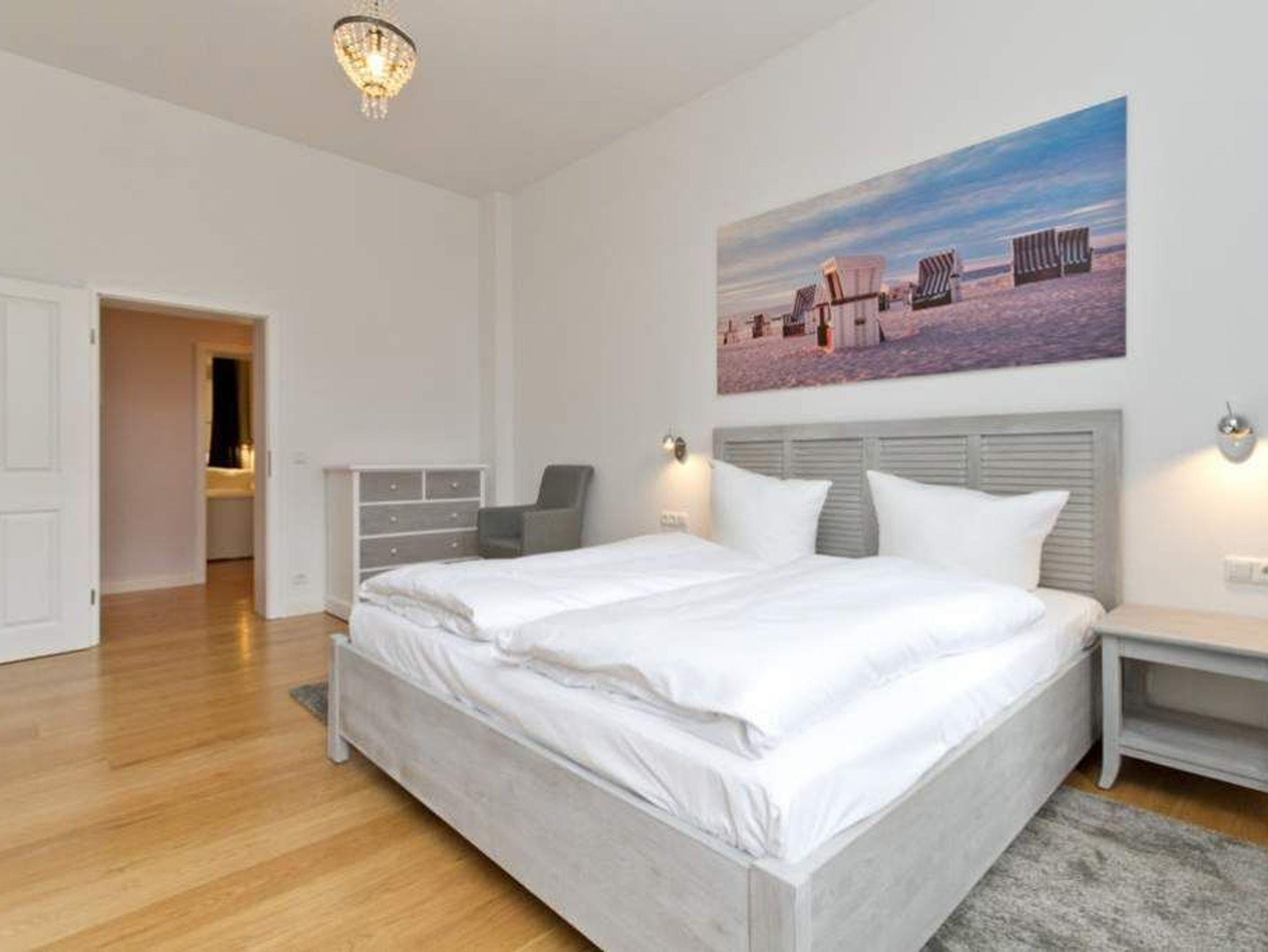 Willkommen in der 4-Raum-Ferienwohnung Nr. 01 (95 qm) in der eleganten Villa Saphira ? perfekt für einen erholsamen Aufenthalt mit bis zu 6 Personen und 2 Kleinkindern! Diese großzügige Unterkunft bietet höchsten Komfort und eine ideale Lage direkt an der Strandpromenade. Die Wohnung verfügt über drei gemütliche Schlafzimmer: ein Hauptschlafzimmer mit Doppelbett (1,80 m x 2,00 m) und Flat-TV, ein weiteres Schlafzimmer mit zwei Einzelbetten (je 0,90 m x 2,00 m) sowie ein drittes Schlafzimmer mit einem komfortablen Boxspring-Doppelbett (1,80 m x 2,00 m) ? beide ebenfalls mit Flat-TV ausgestattet. Der einladende Wohnbereich ist das Herzstück der Wohnung. Hier können Sie auf der bequemen Sitzgruppe entspannen, den Kaminofen genießen oder Ihre Lieblingsfilme auf dem Flat-TV schauen. Die angrenzende Küchenzeile im charmanten Erker ist voll ausgestattet und bietet einen Essplatz mit direktem Zugang zur Strandpromenade. Das moderne Badezimmer mit Dusche und WC sowie ein zusätzliches Gäste-WC sorgen für zusätzlichen Komfort. Selbstverständlich nutzen Sie in der gesamten Wohnung kostenfreies WLAN. Zwei PKW-Stellplätze direkt am Haus stehen Ihnen ebenfalls zur Verfügung. Für unsere kleinen Gäste stellen wir auf Wunsch ein Kinderreisebett (ohne zusätzliche Matratze [&] Bettzeug) und einen Hochstuhl bereit (gegen Aufpreis). Damit Sie sich rundum wohlfühlen, sind bei Ihrer Anreise die Betten bereits bezogen, und eine Erstausstattung mit Handtüchern liegt für Sie bereit. Genießen Sie den perfekten Mix aus Komfort und Strandnähe in dieser Ferienwohnung. Wir freuen uns darauf, Sie in der Villa Saphira willkommen zu heißen