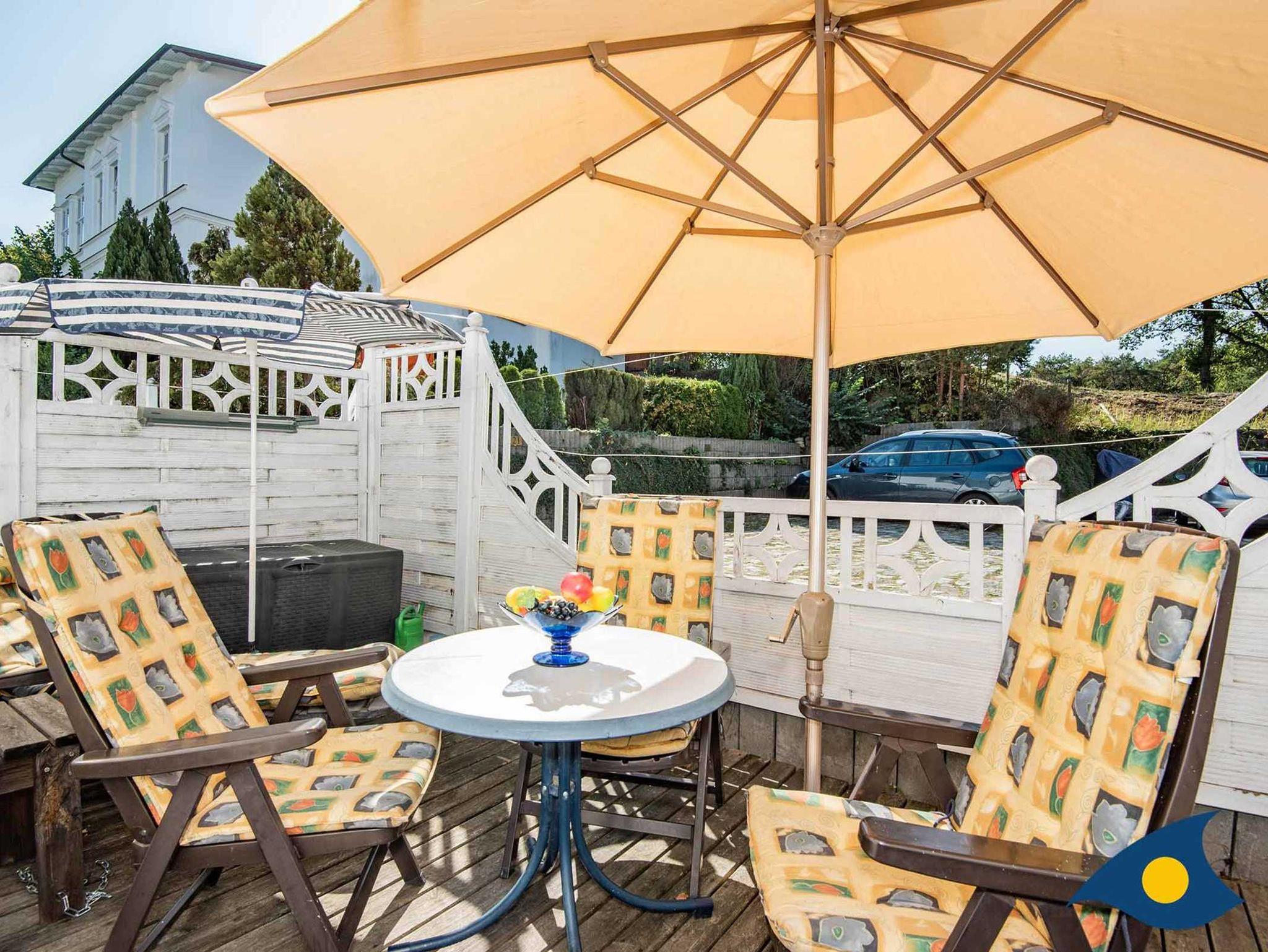 Das Gartenhaus der stilvollen Villa Sonnenschein begrüßt Sie auf Herzlichste. Den Eingang zum Gartenhaus und die Parkplätze erreichen die Feriengäste über eine funkgesteuerte Schrankenanlage. Urlauber der FeWo 21 können sich daran erfreuen, dass sie Gepäck und Einkäufe bequem über ihre Terrasse entladen können. Die Benutzung von Waschmaschine und Trockner sind im Haupthaus, der Villa Sonnenschein, gegen Gebühr möglich.