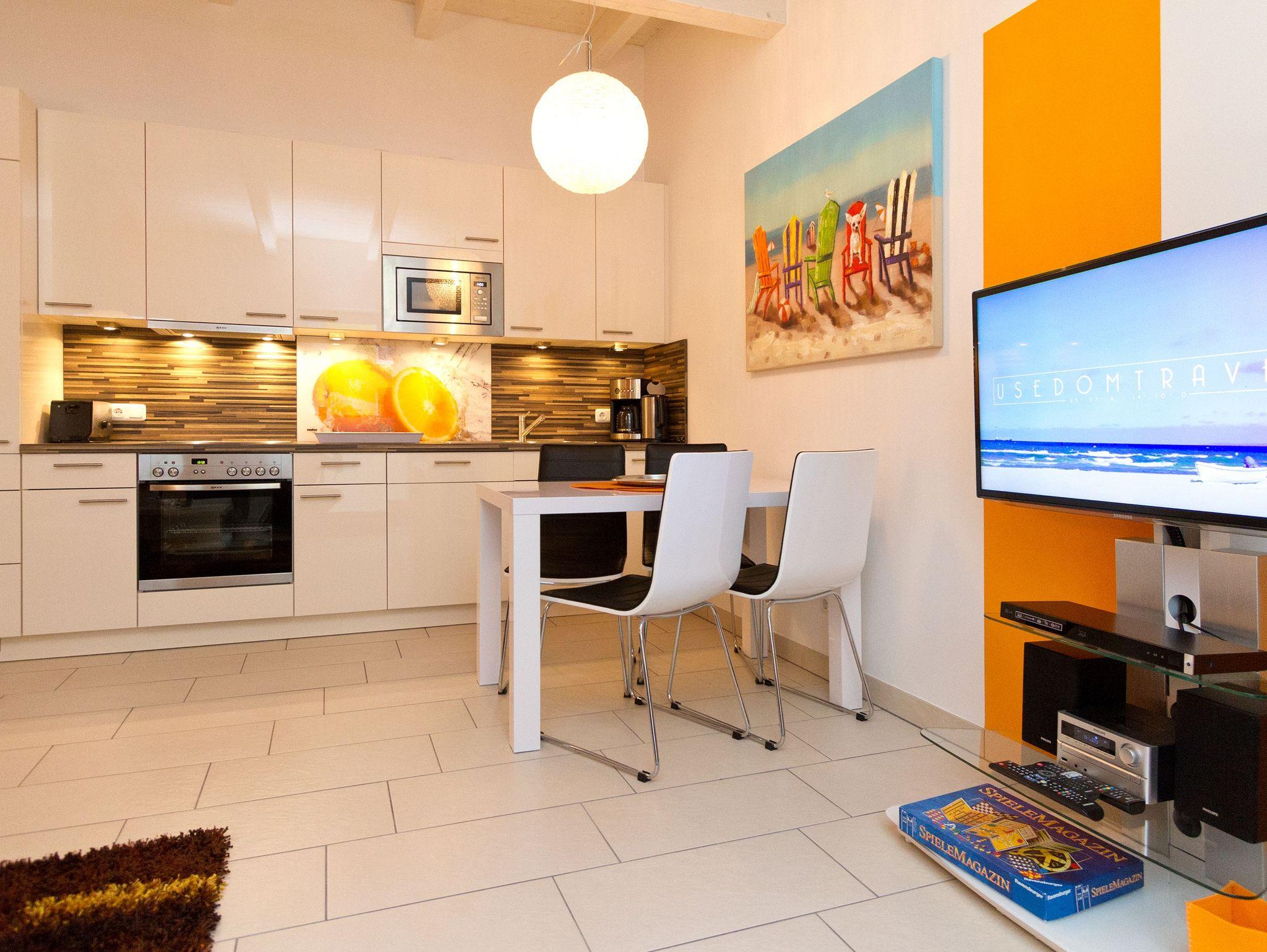 Modernes Ferienapartment mit Balkon, Kamin und strandnaher Lage in Heringsdorf.