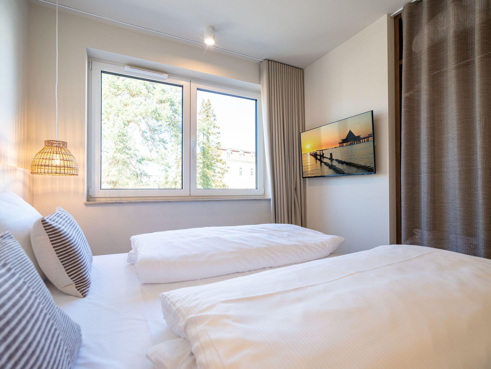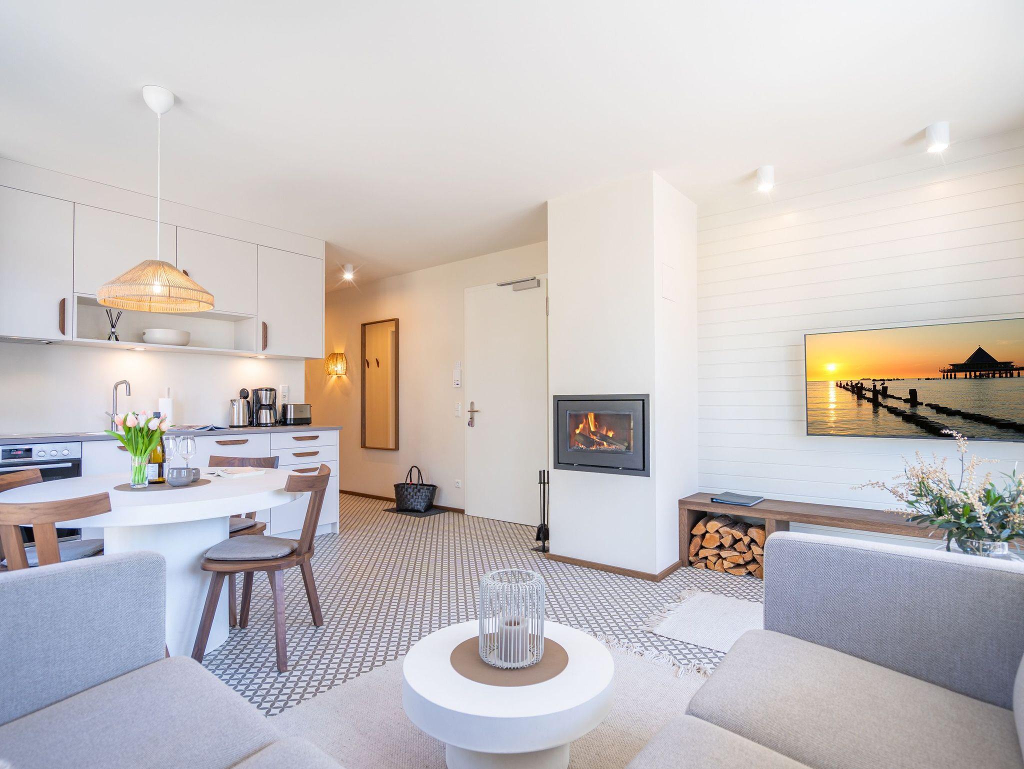 Modernes 3-Raum-Appartement mit Sauna, Kamin und Balkon nur 50 m vom Strand in Heringsdorf.