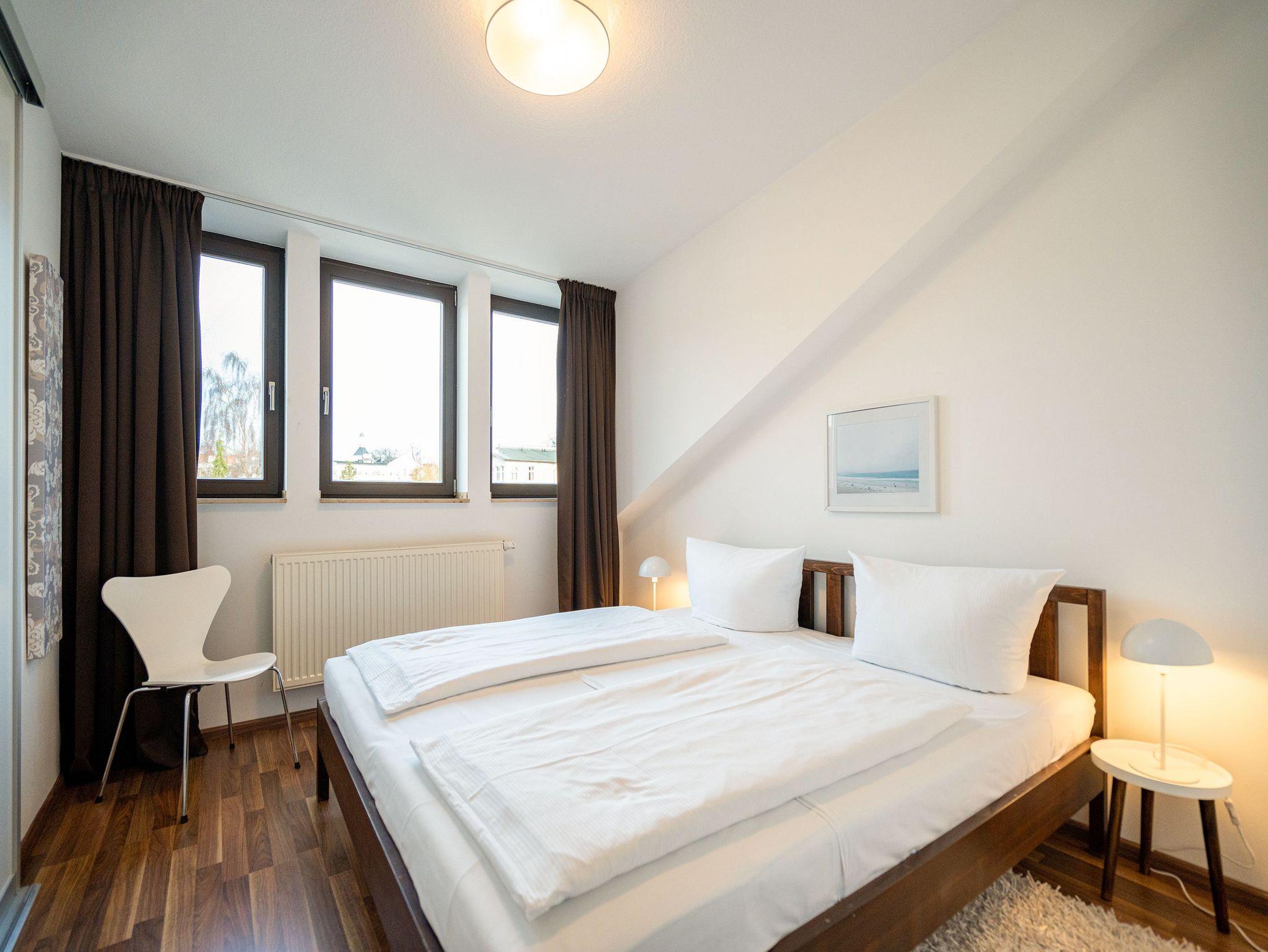 Moderne Ferienwohnung mit 2 Schlafzimmern, Terrasse und kostenlosem Strandkorb nahe dem Strand in Heringsdorf.