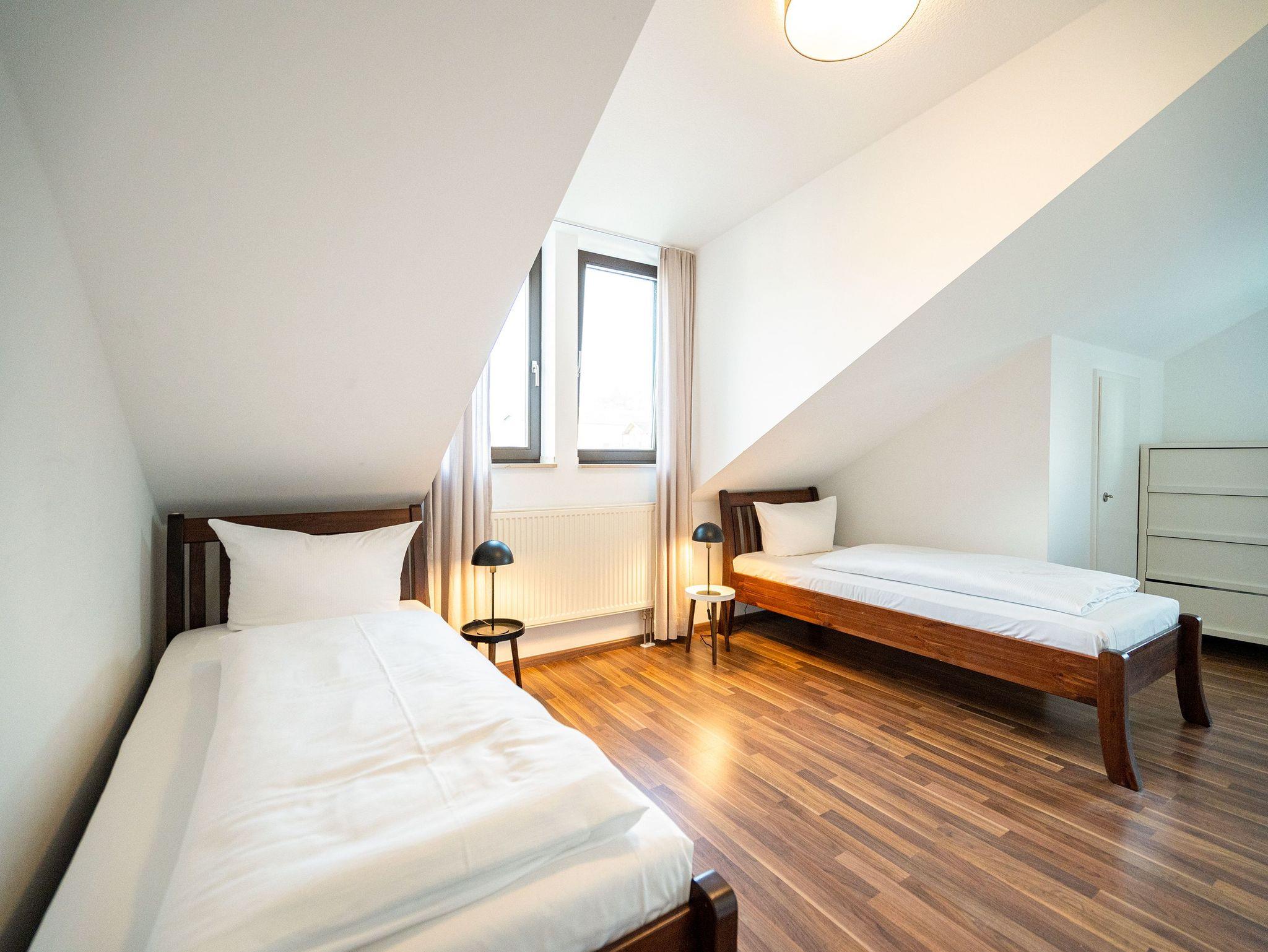 Stylisch wohnen unter dem Dach der Villa Sanssouci. Auf 82 qm Wohnfläche empfängt Sie hier eine moderne, geschmackvoll designte Ferienwohnung mit 2 Schlafzimmern (1x Doppelbett / 1x getrennte Betten), schönem, großzügigem Wohnbereich mit Flat-TV, eine offene, komplett ausgestattete Küche mit angrenzendem Essplatz und einem Bad mit Duschbadewanne und WC. Ideal für 4 Personen und ein Kleinkind (bis 3 Jahre). Am Haus kann ein kleiner Gartenanteil mit Terrasse und Strandkorb genutzt werden. Für den Tag am Meer steht Ihnen als besonderes Bonbon von Mitte Mai bis Ende September (je nach Witterung) ein Strandkorb am Strand kostenlos zur Verfügung.