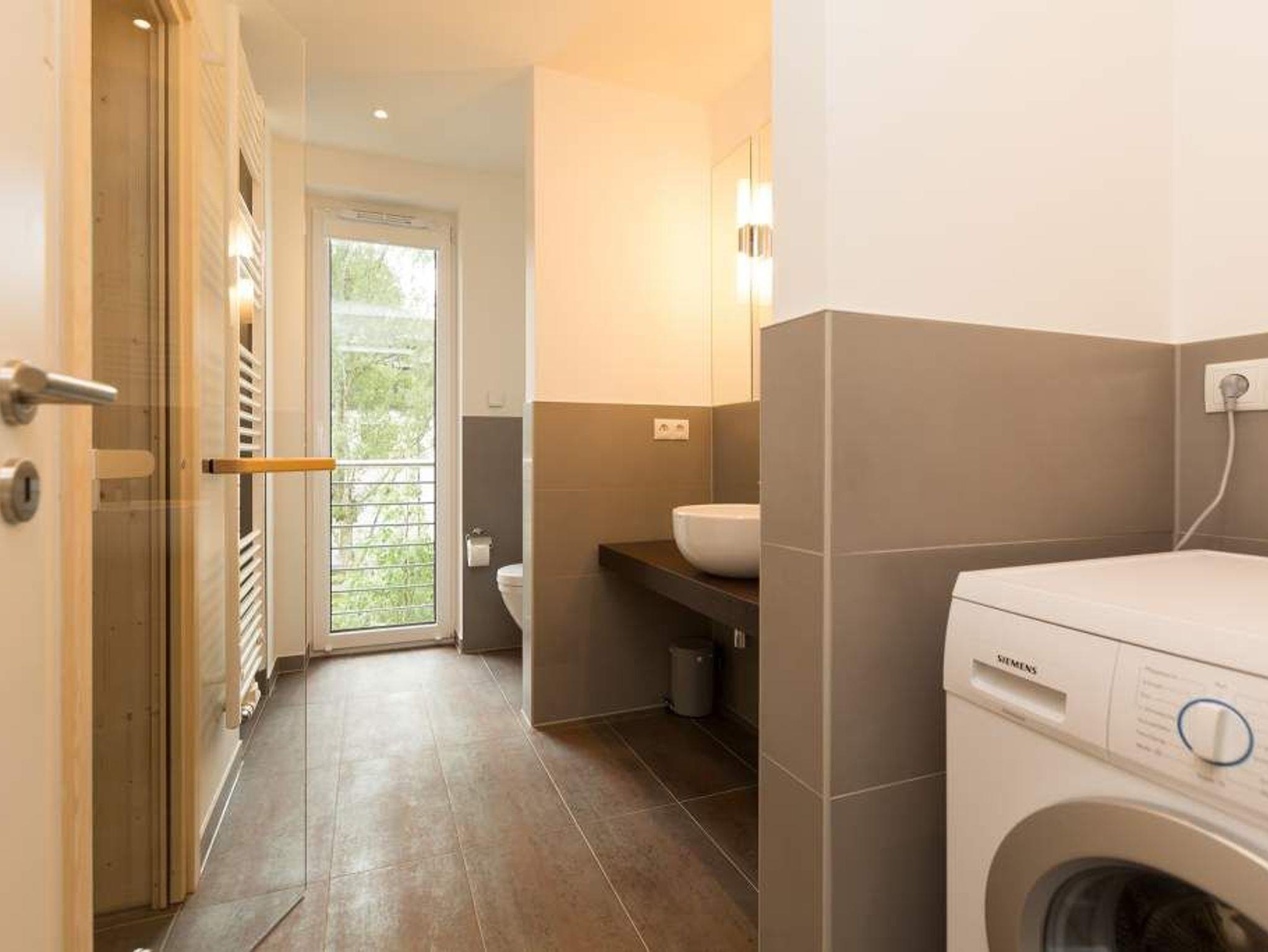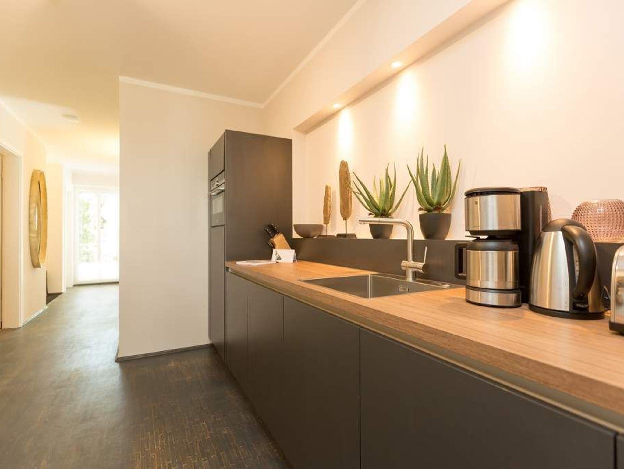 Eine Wohnung mit Stil, extravagant und exklusiv, ist die Ferienwohnung 06 im ersten Obergeschoss der Villa Strandgrün. Nur einen Steinwurf von der Ostsee entfernt laden ihre drei hellen und komfortabel ausgestattete Zimmer zum Wohlfühlen und entspannten Urlauben ein. In den 87 Quadratmetern finden vier Personen und ein Kleinkind (bis zwei Jahre im Kinderreisebett) bequem Platz. Ein Highlight des Wohnzimmers ist der offene Essbereich mit Tresen, Barhockern und einer stylischen Kochinsel. Die Küche ist übrigens voll ausgestattet. Ein zweites Highlight ist der Kamin, der abends oder an Schietwetter-Tagen für eine behagliche Atmosphäre sorgt. Ebenso wie die kuscheligen Schaf- und Kuhfelle auf den Hockern oder dem beheizbaren Fußboden. Auf der Design-Wohnlandschaft lässt es sich herrlich relaxen. Alltagsstress? Schon nach kurzer Zeit in diesem Appartement wird Ihnen dieses Wort, wie ein Fremdwort vorkommen. Genießen Sie die Sonne, die fast den ganzen Tag auf den großen, überdachten Südbalkon mit Blick in den Garten scheint. Ein zweiter, kleinerer Balkon ist über eines der beiden Schlafzimmer zugänglich. In beiden lichtdurchfluteten Schlafzimmern warten hochwertige Doppelboxspringbetten (1,80 m x 2,00 m) nur darauf, Ihnen wunderschöne Träume zu verschaffen. Ausgestattet sind beide Schlafzimmer und auch das Wohnzimmer mit Flat-TVs. Der Fernseher im Wohnzimmer enthält einen Blue-Ray-Player. Sie lieben Sauna? In der Wohnung Nummer 6 können Sie, so oft Sie wollen, in ihre ganz eigene kuschelige Wohlfühlzone abtauchen. Denn in eines der beiden Bäder ist eine finnische Sauna eingebaut. Ansonsten sind beide Bäder geräumig, verfügen über Waschtisch, Dusche und WC. Auch eine Waschmaschine und ein Safe gehören zur Ausstattung der Wohnung. Das WLAN ist kostenfrei. In der Tiefgarage ist für Sie ein Pkw-Stellplatz reserviert. In einem separaten Abstellraum in der Garage können Fahrräder verwahrt werden. Im Urlaub sollte nichts das Entspannen stören. Darum sind die Betten bereits bezogen und Handtücher liegen für Sie bereit.