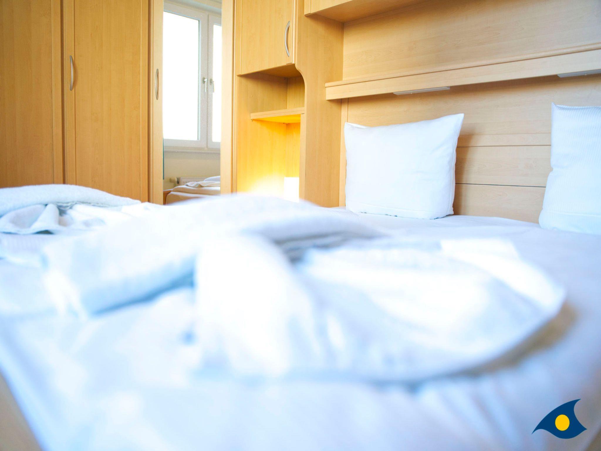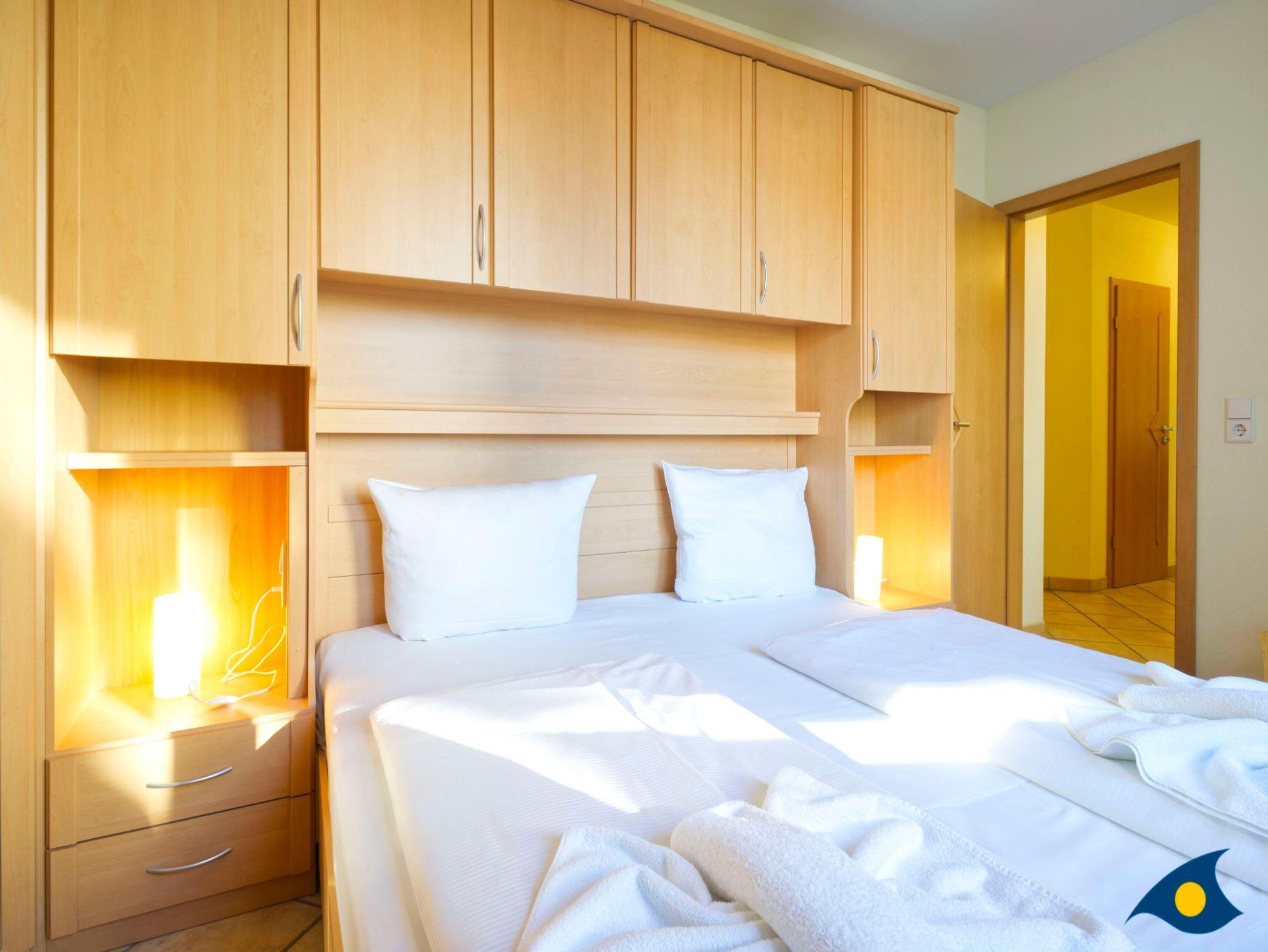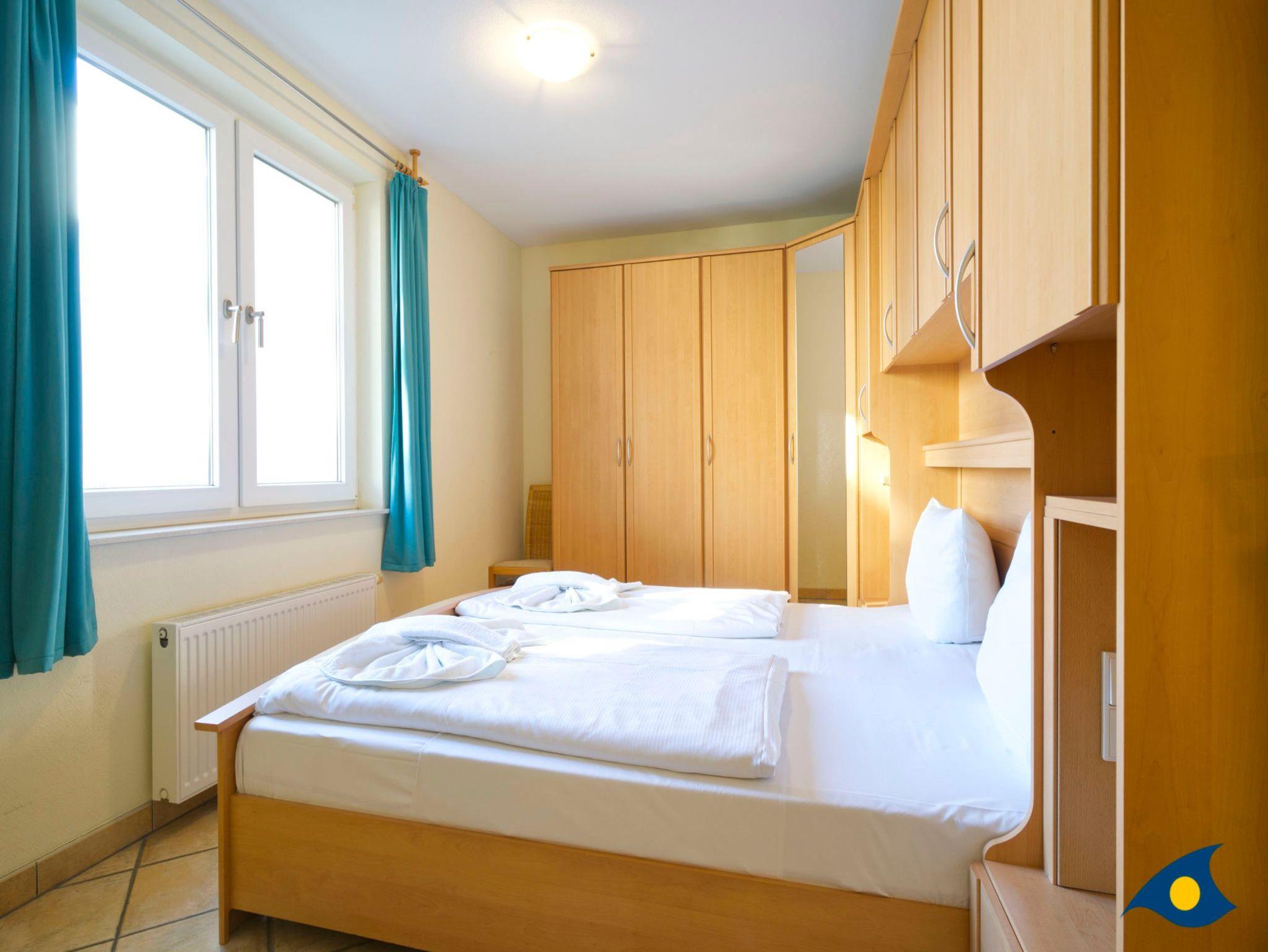 Das gemütliche Schlafzimmer mit dem bequemen Doppelbett sorgt für erholsame Nächte. Der große Kleiderschrank bietet genügend Ablagemöglichkeiten für Ihre Urlaubsgarderobe.
