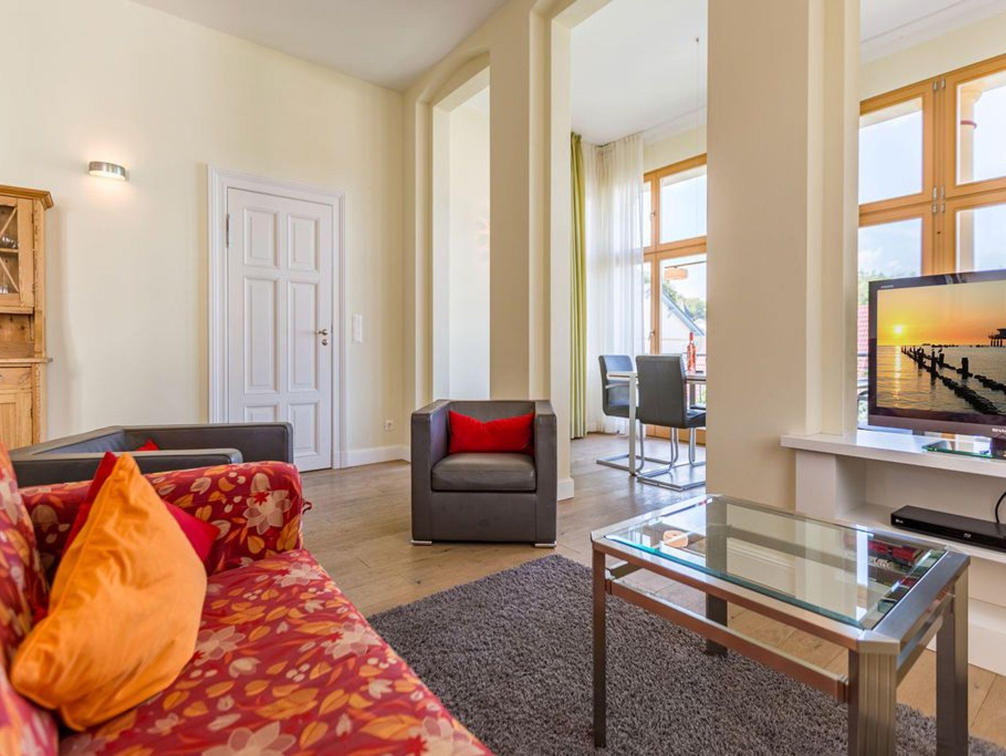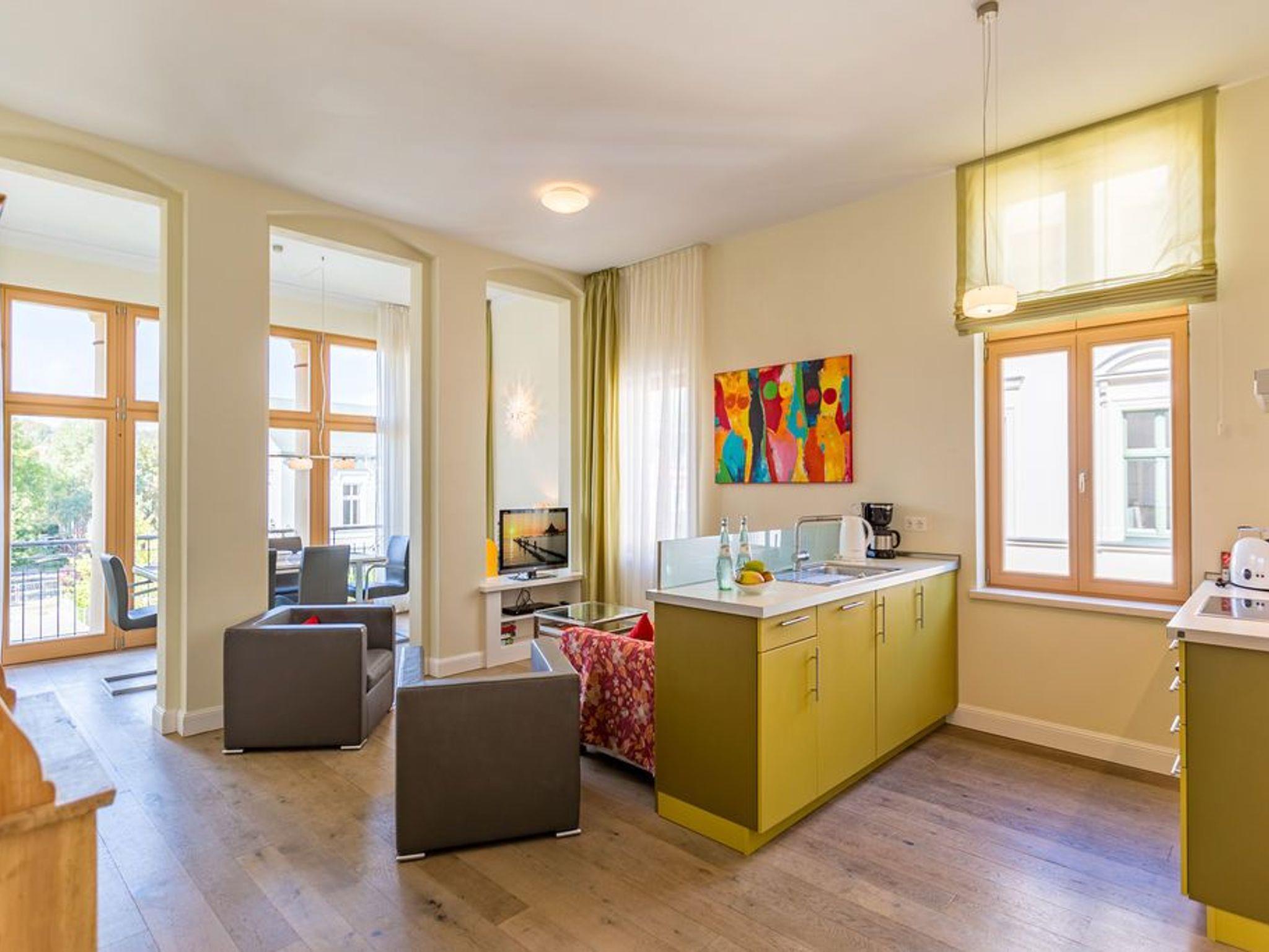 Villa Julius - Freuen Sie sich auf ein Wohnerlebniss der besonderen Art. Eine wunderschöne historische Villa mit großzügigen, stylischen Wohnungen und hochwertigster Einrichtung ist ein passendes Hideaway! Lassen Sie sich begeistern von einem stilvollen Ambiente, das von einer versierten Innenarchitektin gestaltet wurde. Viel Platz und jeglicher Komfort verstehen sich von selbst. Jedes der sechs 2- bzw. 3-Raum-Appartements wurde individuell eingerichtet: Marrakesch, La Mer, American Style... Wohnungen, die sofort Urlaubsatmosphäre versprühen. Auch die wunderschöne Gartenanlage mit einer Grillecke wird Sie begeistern. Das WLAN-Netz im Haus kann kostenfrei genutzt werden. Fahrradständer und ein Pkw-Stellplatz befinden sich am Haus.