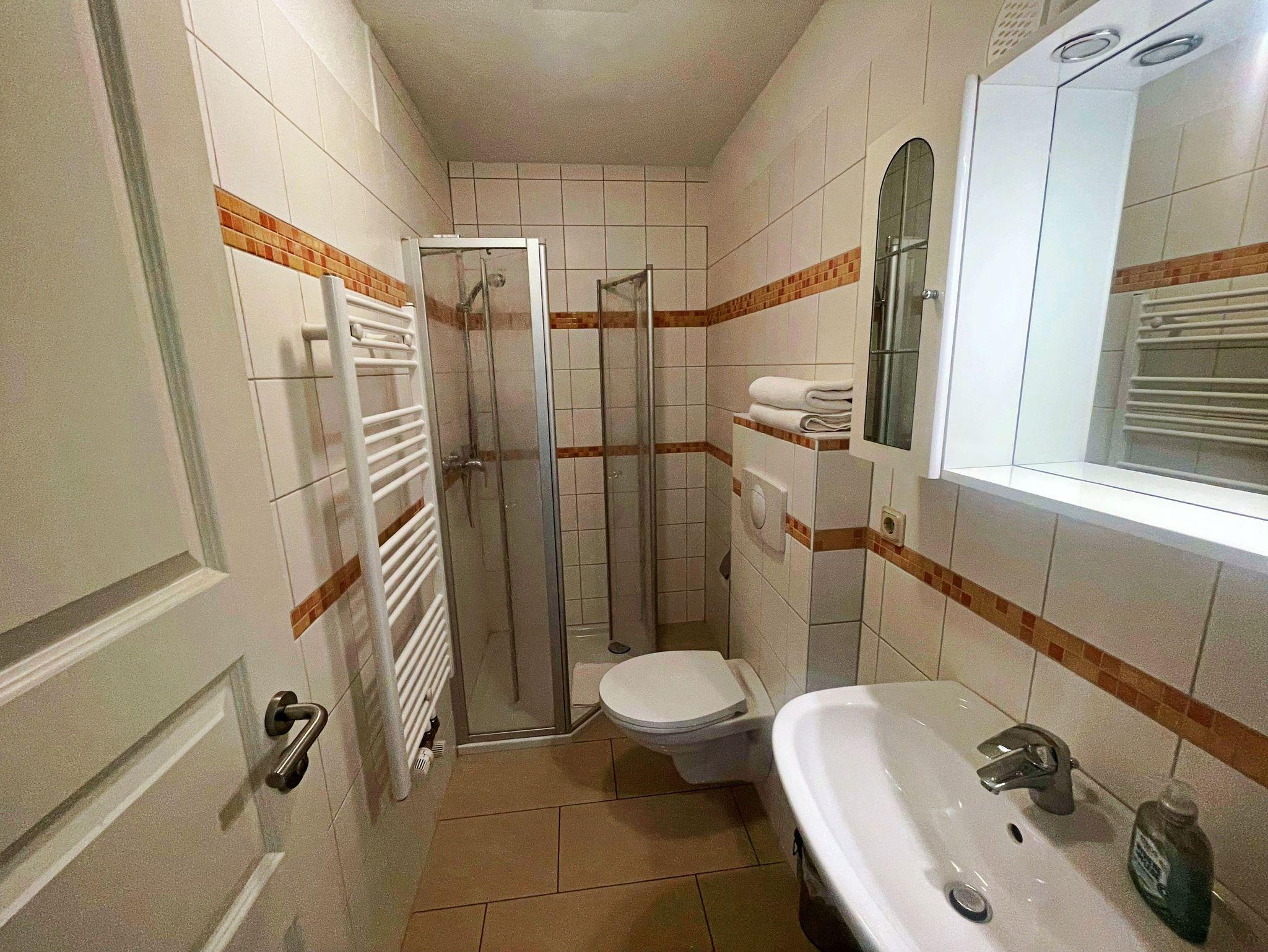 Der offene Wohnraum lädt zum Entspannen ein und verfügt über einen komfortablen Wohnbereich, in dem ein Schlafsofa Platz für zwei weitere Personen bietet. Die moderne Küche ist mit allem ausgestattet, was Sie benötigen, darunter ein Ceranherd, Backofen, Spülmaschine, Backofen und Kühlschrank - ideal für gesellige Kochabende am Esstisch. Das separate Schlafzimmer mit einem einladenden Doppelbett sorgt für erholsame Nächte. Das Badezimmer ist mit einer Dusche und WC ausgestattet, um Ihren Aufenthalt so angenehm wie möglich zu gestalten. Für Ihre Internetbedürfnisse steht Ihnen kostenfreies WLAN für ein Gerät zur Verfügung, für jedes weitere Gerät wird lediglich 10 € pro Woche berechnet. Zudem ist ein PKW-Stellplatz auf dem Grundstück vorhanden.