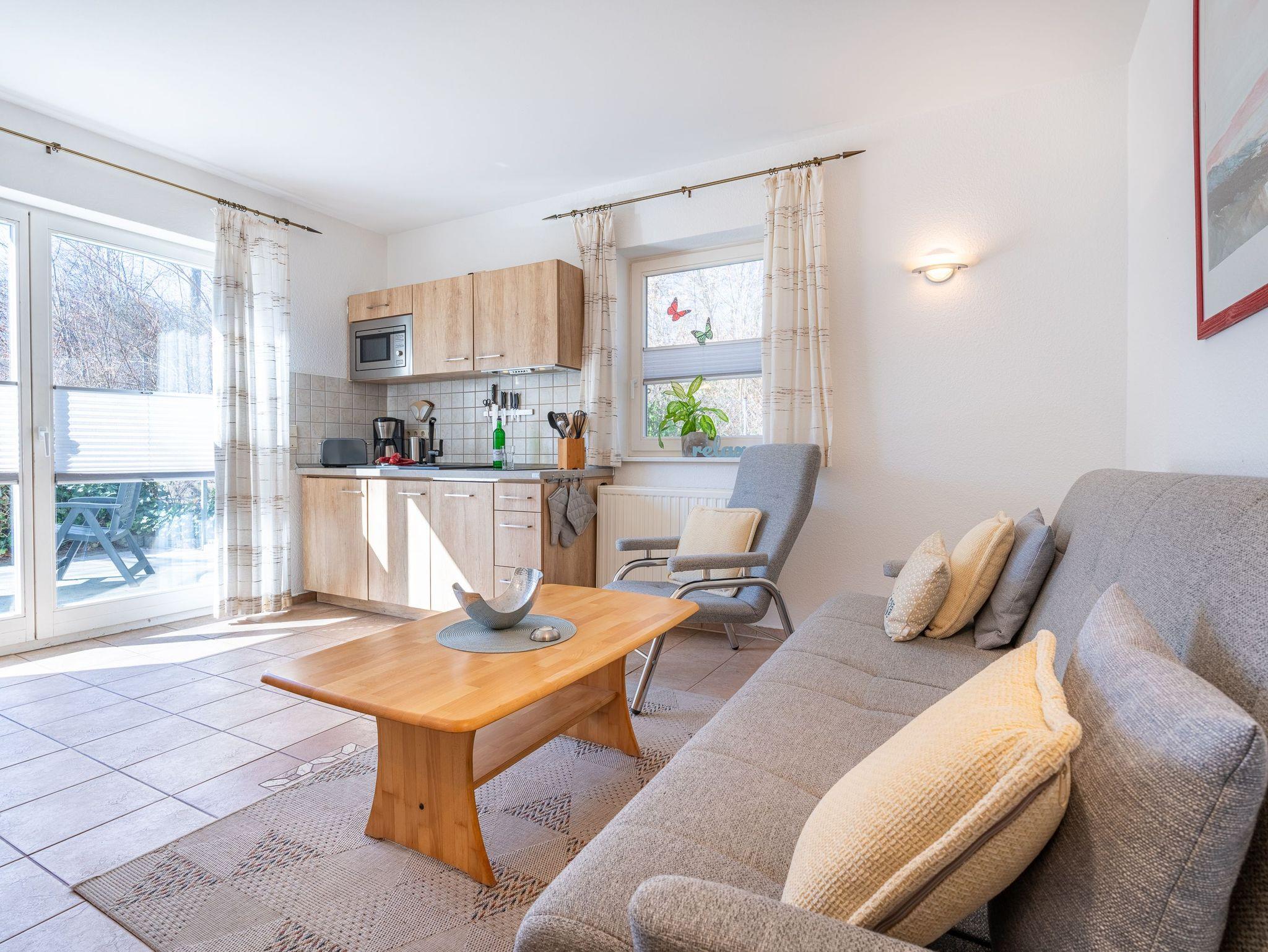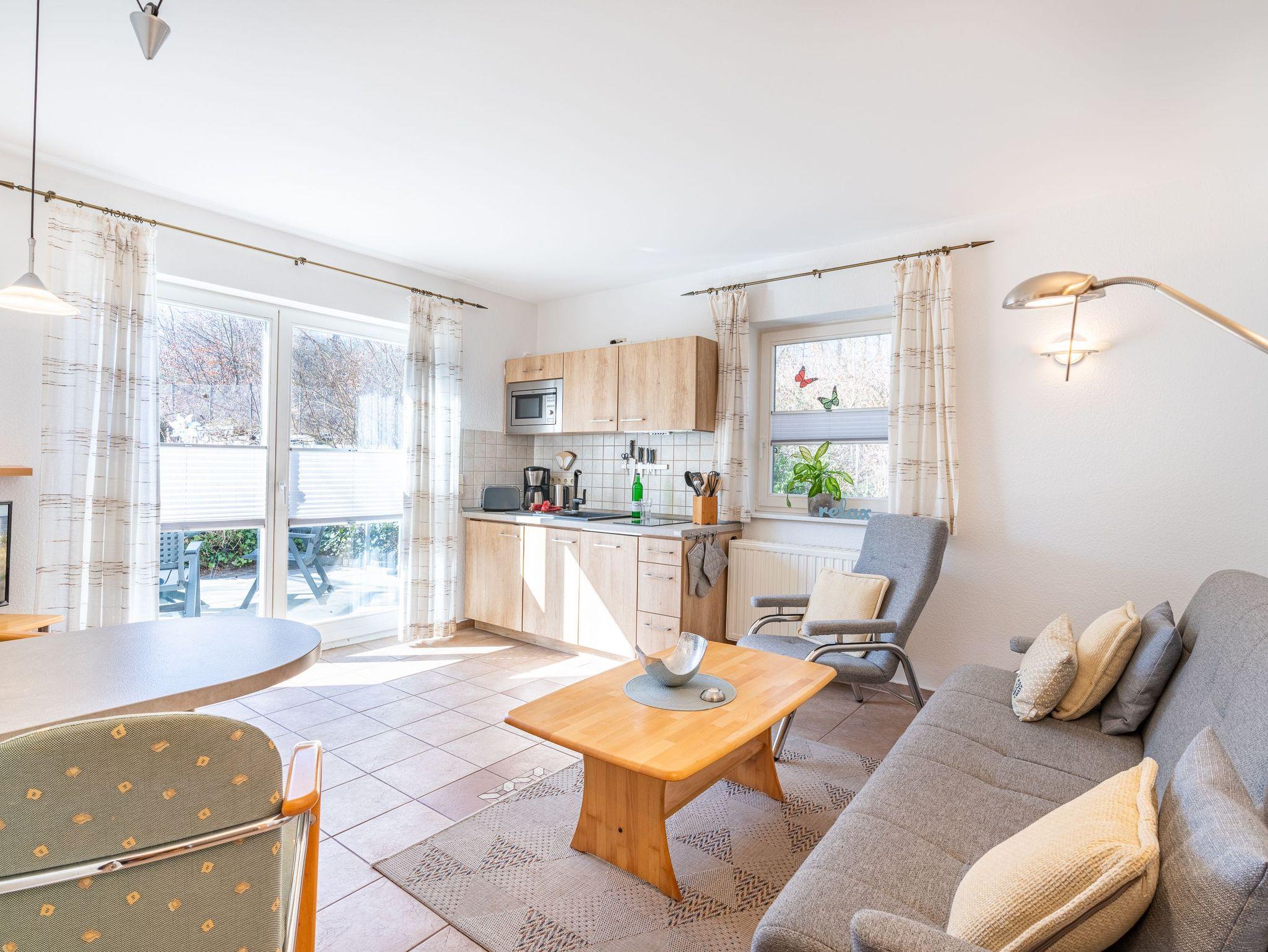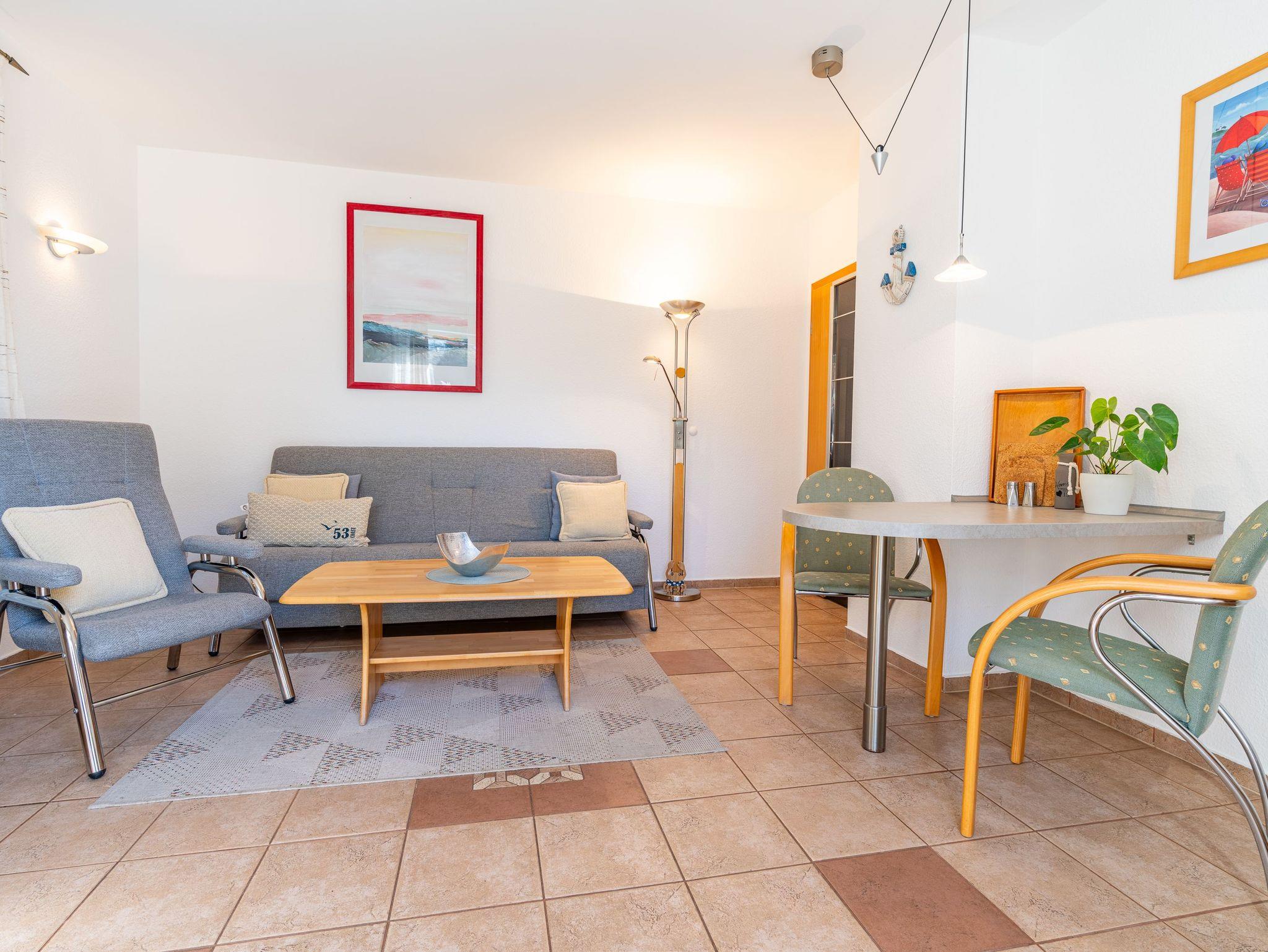 Das Zwei-Zimmer-Appartement befindet sich ebenerdig und bietet mit seinen 40 Quadratmetern ausreichend Platz für einen erholsamen Urlaub zu zweit oder auch zu dritt. Der Wohnbereich verfügt über eine integrierte moderne Küchenzeile (inkl. Geschirrspüler, Induktionskochfeld (2Felder), Mikrowelle mit Grillfunktion, Kühlschrank mit Gefrierfach, Wasserkocher, Toaster, Kaffeemaschine und Eierkocher) mit Esstisch für drei Personen sowie über ein gemütliches Sofa, auf dem Sie nach einem erholsamen Urlaubstag die Seele baumeln lassen können. Ein moderner FlatTV macht es möglich, dass Sie auch im Urlaub auf keine Ihrer Lieblingsserien verzichten müssen.