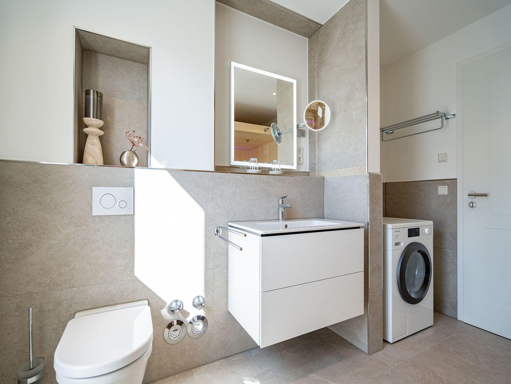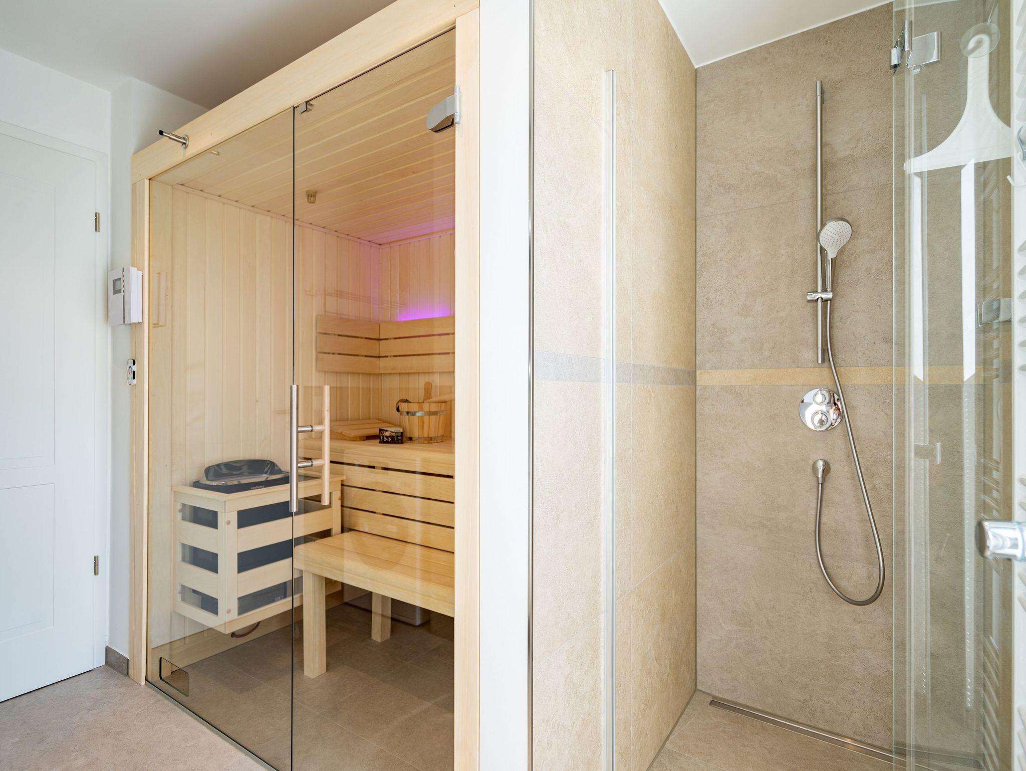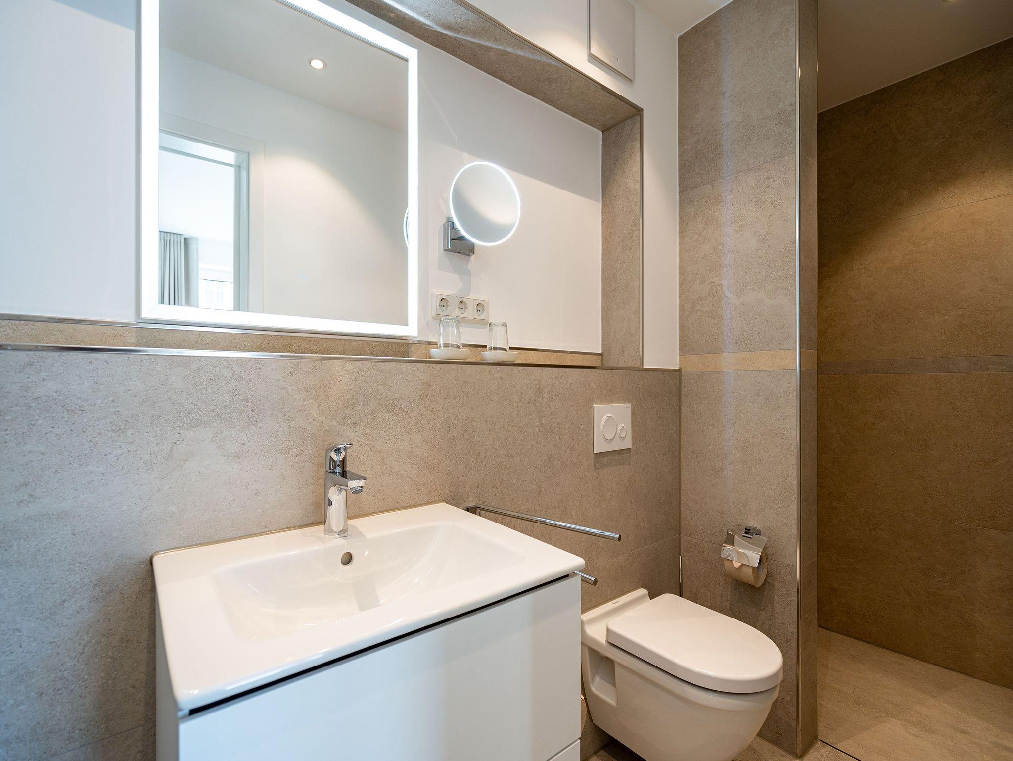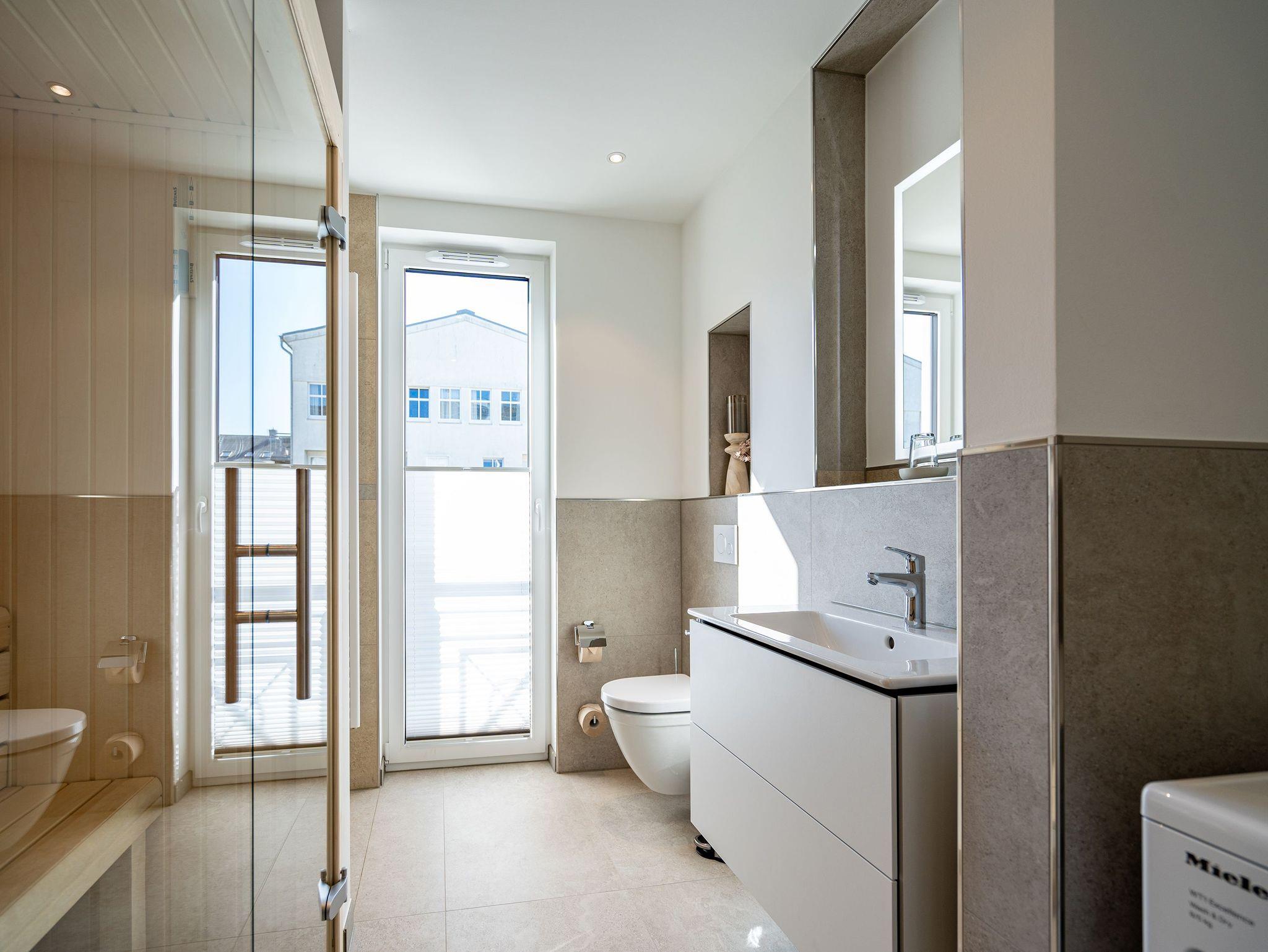 Die perfekte Auszeit für die ganze Familie oder befreundete Paare bietet Ihnen das Appartement 06 im Quartier am Strand. Die drei Räume verteilen sich großzügig auf insgesamt 84 Quadratmeter und bieten Platz für bis zu 4 Personen. Ideal ist die Aufteilung in diesem Urlaubsquartier: Während ein Schlafbereich etwas abseits vom Wohnzimmer liegt, grenzt ein zweiter direkt an den offenen Wohn-Essbereich an. Bereiten Sie morgens in Ruhe das Familienfrühstück vor, während auf der anderen Seite Ihres Appartements ausgeschlafen wird. In der modernen Küche finden Sie neben Kleinküchengeräten einen Induktionsherd mit Backofen sowie einen Kühlschrank mit Gefrierfach und eine Spülmaschine. Nach einem ausgiebigen Tag am Strand stehen Ihnen im Wohnbereich ein Flat-TV sowie eine Sofalandschaft und zwei Sessel zum Relaxen zur Verfügung. Kostenfreies W-Lan zählt selbstverständlich ebenfalls zu den Vorzügen dieses Appartements. Ein Holzkamin komplettiert die hochwertige Ausstattung, die farblich in allen Räumen aufeinander abgestimmt ist. Verlagern Sie Ihren Essplatz von drinnen nach draußen und genießen Sie Ihre gemeinsame Zeit auf dem 8 Quadratmeter großen Balkon, auf dem Ihnen ein Tisch und vier Stühle zur Verfügung stehen. Ein zweiter Balkon befindet sich auf der Nordost-Seite des Hauses. Hier finden zwei Personen Platz für eine gemütlich Zeit zu Zweit. Auf erholsamen Schlaf müssen Sie auch im Urlaub nicht verzichten. Bequeme Boxspringbetten (1,80m x 2,00m) laden zum Füße hochlegen ein. Für Ihre Urlaubsgarderobe wurde an ausreichend Schrankraum gedacht. Selbstverständlich verfügen beide Schlafbereiche über einen Flat-TV. Den Komfort von zwei Badezimmern finden Sie ebenfalls im Appartement 06. Während ein Badezimmer direkt über ein Schlafzimmer zu erreichen ist, lädt ein weiteres Bad zum gemeinsamen Gang in die Finnische Sauna ein. Waschtische, WCs und Duschen runden die Nassbereiche ab. An einen Waschtrockner im Appartement wurde ebenso gedacht. Für Ihr Auto ist ein Stellplatz in der Tiefgarage verfügbar (mit kostenpflichtiger E-Ladestation). Gern können Sie Ihre Fahrräder mitbringen, die Sie im wohnungseigenen Abstellraum in der Tiefgarage verstauen können. Für Ihren Komfort sind die Betten bei Ihrer Anreise bereits bezogen und Handtücher liegen für Sie bereit.