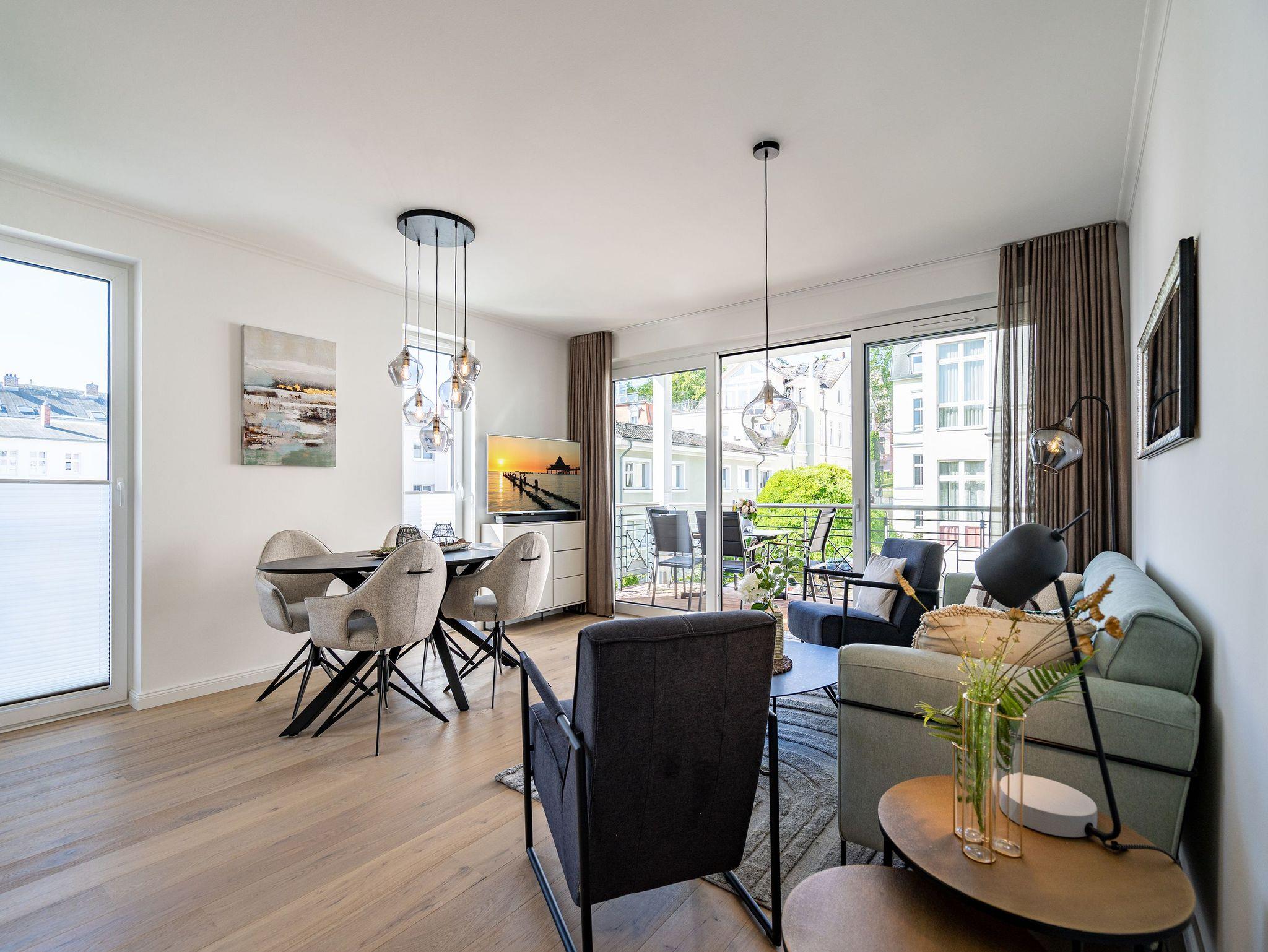 Modernes Appartement mit Sauna, Kamin und Balkon nur 60 m vom Strand in Heringsdorf.