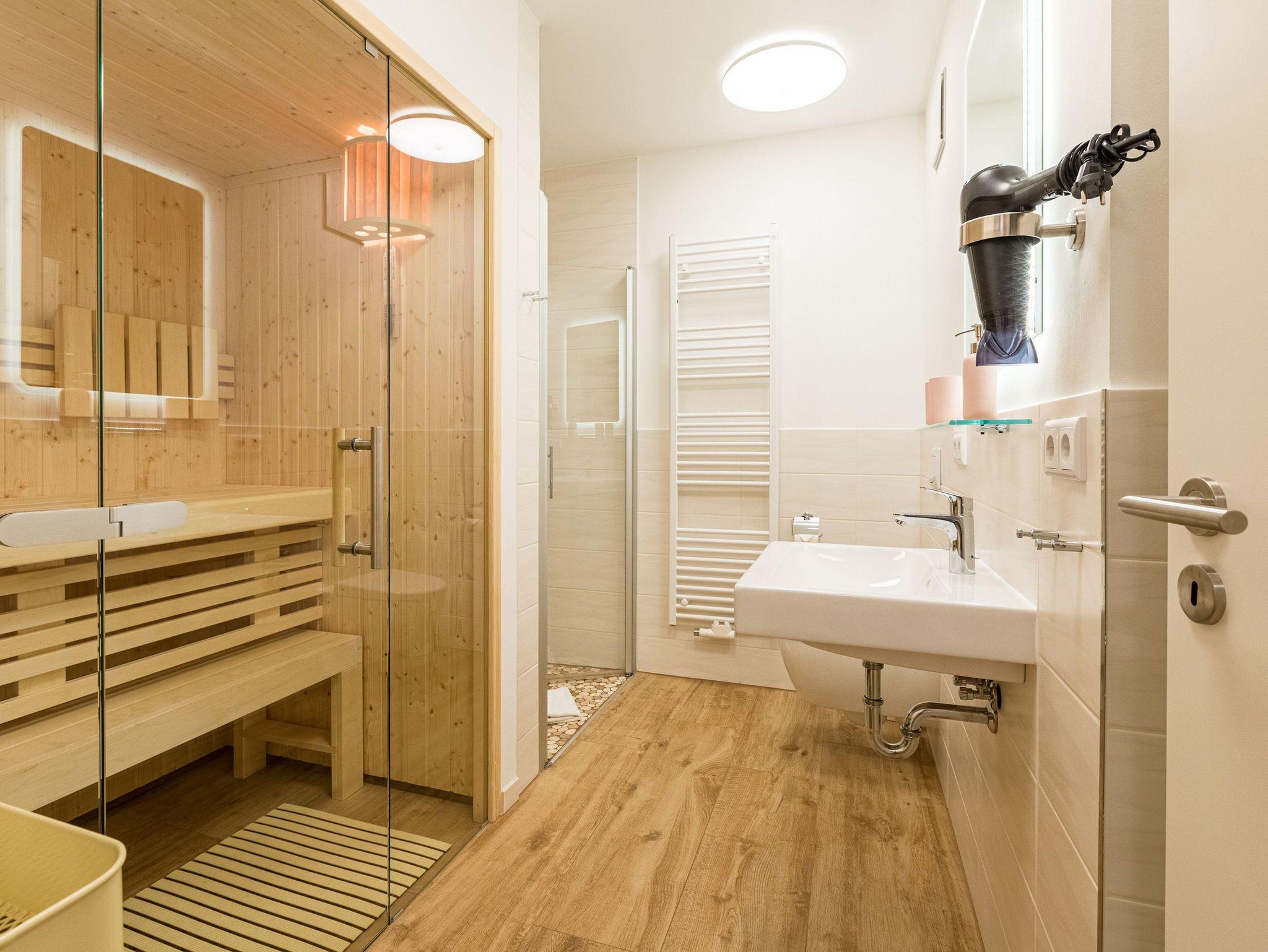 Großzügig, licht und elegant ist dieser Drei-Zimmer-Ferientraum im Erdgeschoss. Das Appartement 1 bietet auf seinen 83 Quadratmetern viel Platz für vier Personen und ein Kleinkind bis zwei Jahre (im Kinderreisebett). Die Einrichtung ist modern, stylisch und ausgewählt. Helle, lichtdurchflutete Räume sorgen für eine harmonische Atmosphäre, in der sich jeder Moment leicht anfühlt. Geben Sie Ihrer Seele und Ihrem Körper einmal wieder Raum und tanken Sie neue Energie auf den komfortablen Nordic Design-Sofas in maritimem Blau, beim Entspannen vor dem großen Flat-TV, einem gemeinsamen Essen in den bequemen Sesseln am schönen Esstisch, beim Blick auf das Flammenspiel des Kamins oder draußen in der Sonne auf einer der beiden Terrassen (5 Quadratmeter und 6 Quadratmeter groß). Die offene Küche ist mit hochwertigen Geräten voll ausgestattet. Im amerikanischen Kühlschrank lässt sich so manche Leckerei unterbringen. Platzprobleme brauchen sie hier wie im gesamten Appartement nicht zu fürchten. Passend zum eleganten Interieur finden Sie in den Küchenschränken stilvolles Geschirr. Hier stimmt einfach alles. Auch in den beiden Schlafzimmern. Schlafvergnügen der Extra-Klasse versprechen die großen Boxspringdoppelbetten (1,80 m x 2,00 m). Flat-TV und ein geräumiger Einbauschrank fehlen natürlich in keinem der beiden Zimmer. Der Wohn- und Schlafbereich ist mit Parkettboden ausgestattet. Für eine entspannte Auszeit stehen zwei Bäder zur Verfügung. Beide haben eine Dusche, ein Waschbecken und ein WC. Eine Waschmaschine gibt es auch. Das Masterbad hält zudem noch ein ganz besonderes Highlight für Sie bereit: eine Finnische Sauna. Graue und triste Tage an der Ostsee gehören damit der Vergangenheit an. Denn was gibt es schöneres, als sich nach einem langen Strandspaziergang im Winter in die wohlige Wärme einer Sauna zu kuscheln. Handtücher liegen bereit und die Betten sind bei Anreise bezogen. Für den Tag am Meer steht Ihnen als besonderes Bonbon von Mitte Mai bis Ende September (je nach Witterung) ein Strandkorb am Strand kostenlos zur Verfügung. Sie brauchen also nur noch Ihr Auto in der Tiefgarage abstellen und loslassen.