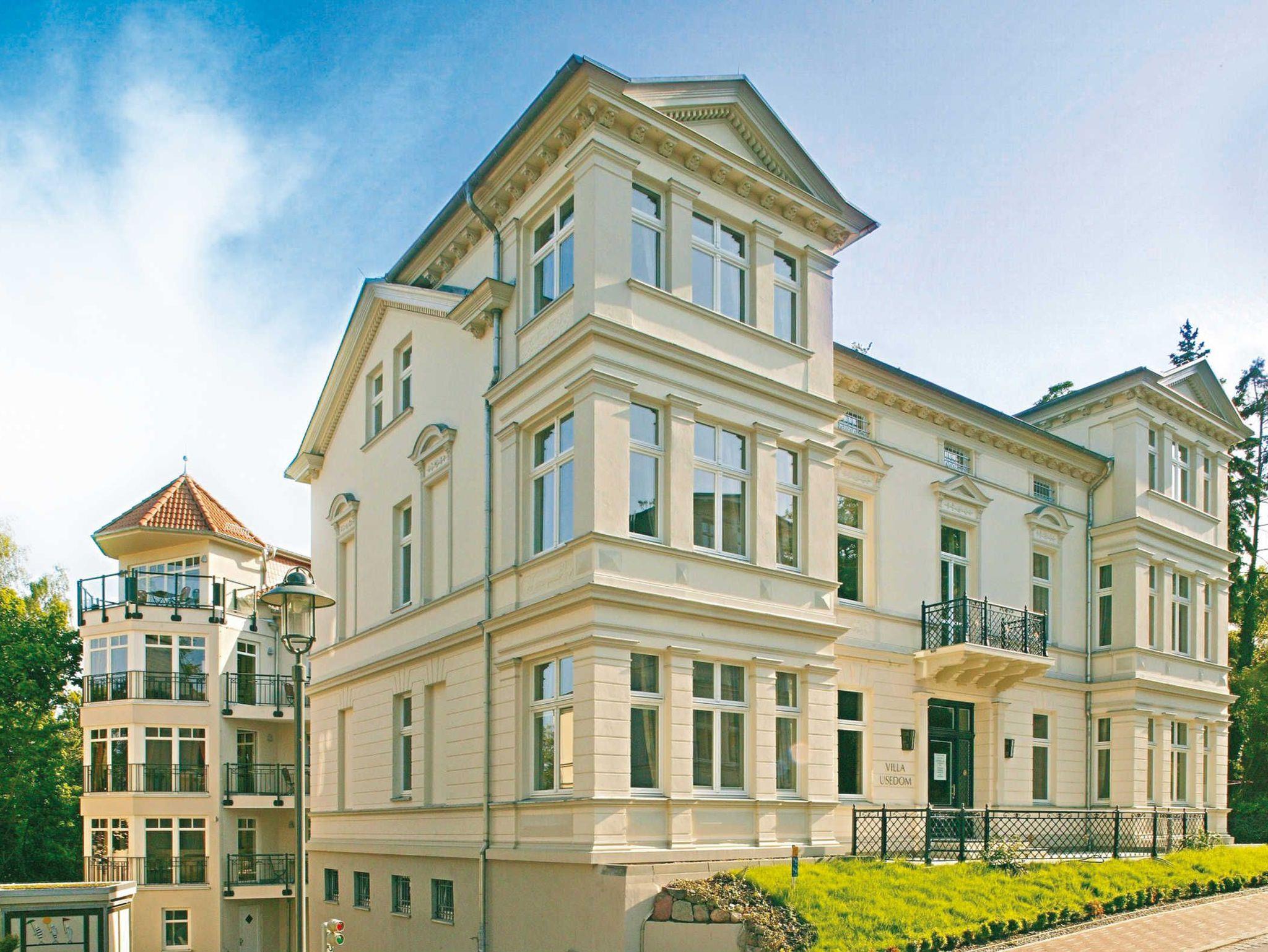 Das Apartmenthaus Villa Usedom befindet sich in zentraler Lage im Seebad Heringsdorf unweit des Strands und besteht aus einer historischen Villa (Bäderarchitektur) und einer Neubauresidenz mit Tiefgarage und Aufzug. Der ebenfalls in der Neubauresidenz befindliche Wellnessbereich Vitalis SPA hat einen Pool, Biosauna, finnische Sauna und Fitnessraum. Die Apartments sind großzügig und komfortabel ausgestattet mit individuellem Innenausbau und zum Teil mit Balkon oder Terrasse. Dazu gehört eine zum Wohnbereich offene Einbauküche.
