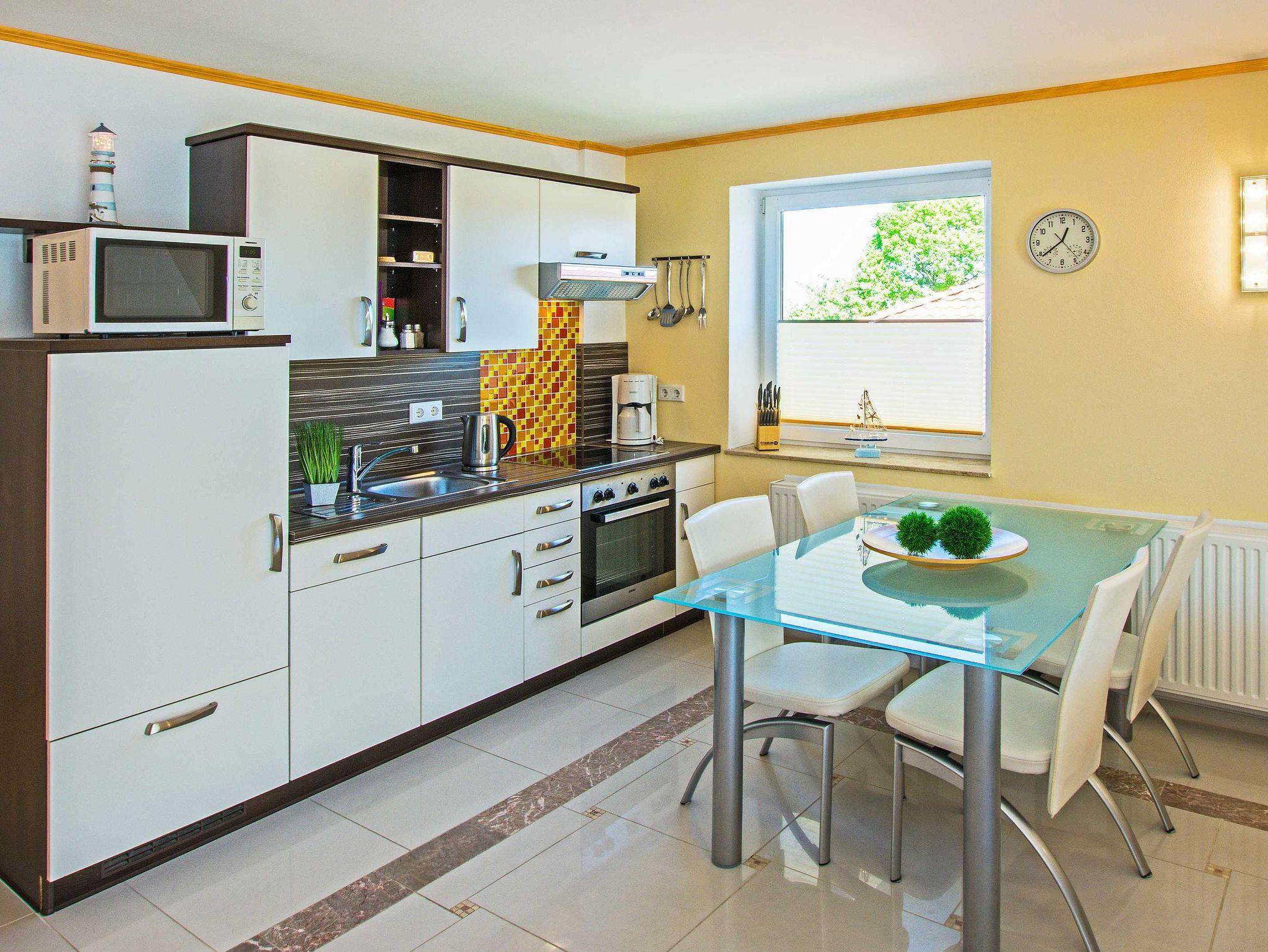 Nehmen Sie Platz auf den beiden gemütlichen Sofas im offenen Wohnbereich, die Ihnen die Sicht auf den Fernseher und hinaus durch die bodentiefen Fenster auf den Balkon. Eines der beiden Sofas lässt sich als Schlafbett für eine weitere Personen ausziehen. Die Küchenzeile, bestehend aus Backofen, Herd mit Ceranfeld, Kühlschrank mit Gefrierfach, Geschirrspülmaschine, sowie Kleinelektrogeräten wie einer Mikrowelle, Kaffeemaschine, Toaster und Wasserkocher steht vor dem großen Esstisch mit vier Stühlen. Zu Ihrer Unterhaltung stehen Ihnen ein 3D 40“Flat TV mit Blue-Ray HiFi-Anlage zur Verfügung. Der Kamin schafft in den Wintermonaten eine wohlige Atmosphäre. Das maritime Badezimmer stellt Ihnen eine gläserne Duschkabine, ein unterbautes Waschbecken mit Spiegel und Kosmetikspiegel, Haartrockner, Bidet und WC bereit.