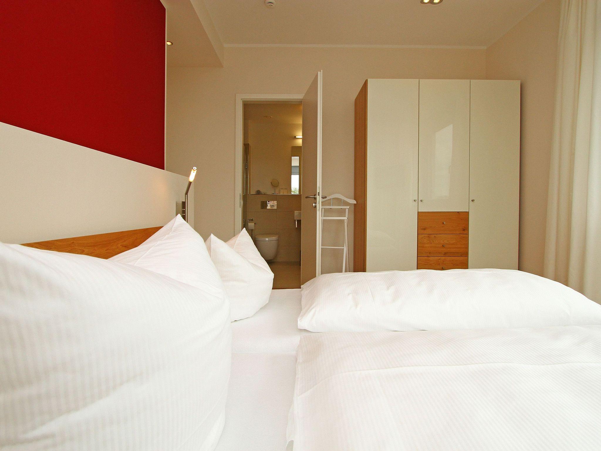 Ein Domizil der Extraklasse und Platz in Hülle und Fülle! Auf 108 qm Wohnfläche findet sich alles für einen perfekten Urlaub. Freuen Sie sich auf eine über komplette Ausstattung, geschmackvollen Luxus und eine perfekt durchdachte Raumsituation. In der Mitte der Ferienwohnung lädt ein großzügiger Wohnbereich mit Sitzgruppe, Essplatz und Kamin zum Relaxen ein. Er wird ergänzt durch eine offene Küche und einen großen, sonnigen Balkon. Jedes der zwei Schlafzimmer mit Doppelbetten und TV verfügt über ein eigenes Bad (1x Duschbad, 1x Bad mit Dusche und Badewanne). In den geräumigen Schlafräumen findet auch ein Kinderreisebett Platz, so dass 4 Personen und zwei Kleinkinder bis 2 Jahre bequem Urlauben können. Ein besonderes Highlight ist die wohnungseigene Sauna, die nicht nur in der Nebensaison angenehme Stunden verspricht. Auf Wunsch stellen wir für unsere kleinen Gäste (für das 2. Kleinkind) ein Kinderreisebett (ohne zusätzliche Matratze [&] Bettzeug) und einen Kinderhochstuhl ( gegen einen Aufpreis) zur Verfügung. Für Ihren Komfort sind die Betten bei der Anreise bezogen und Handtücher liegen bereit. Das WLAN-Netz im Haus kann kostenfrei genutzt werden.