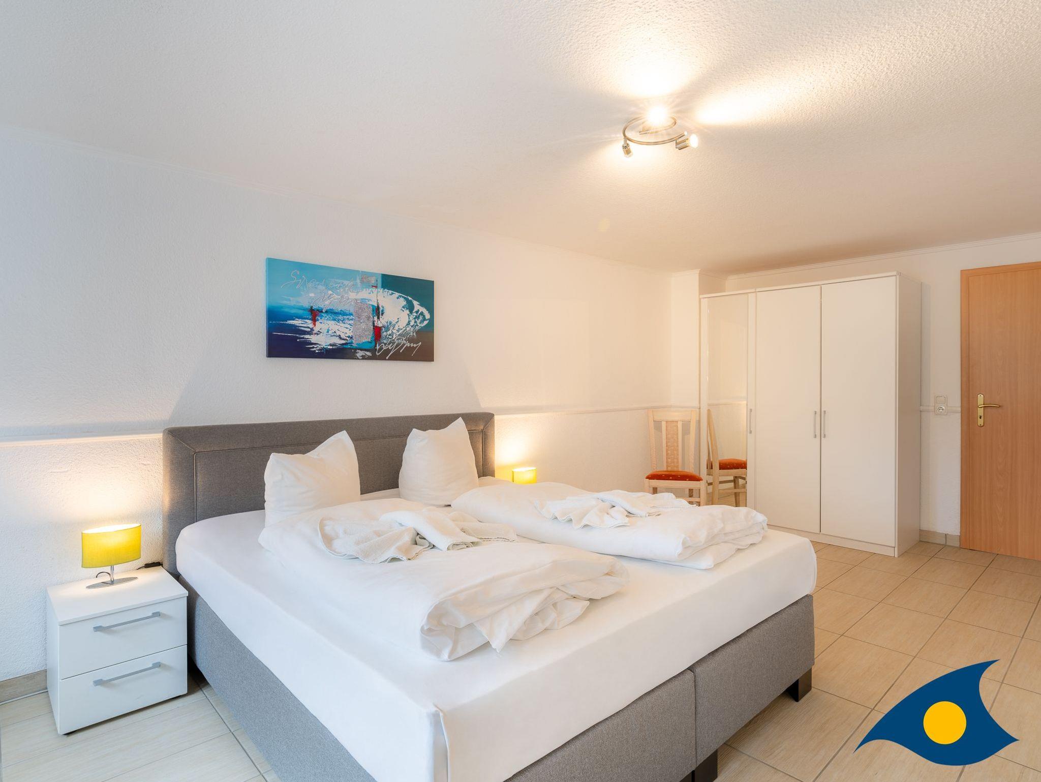 Das Schlafzimmer mit dem bequemen Bockspringbett bietet genügend Platz für 2 Kinderreisebetten (Aufbettung für 2 Kinder bis zu 3 Jahren) und durch den geräumigen Kleiderschrank für alle ihre persönlichen Dinge.
