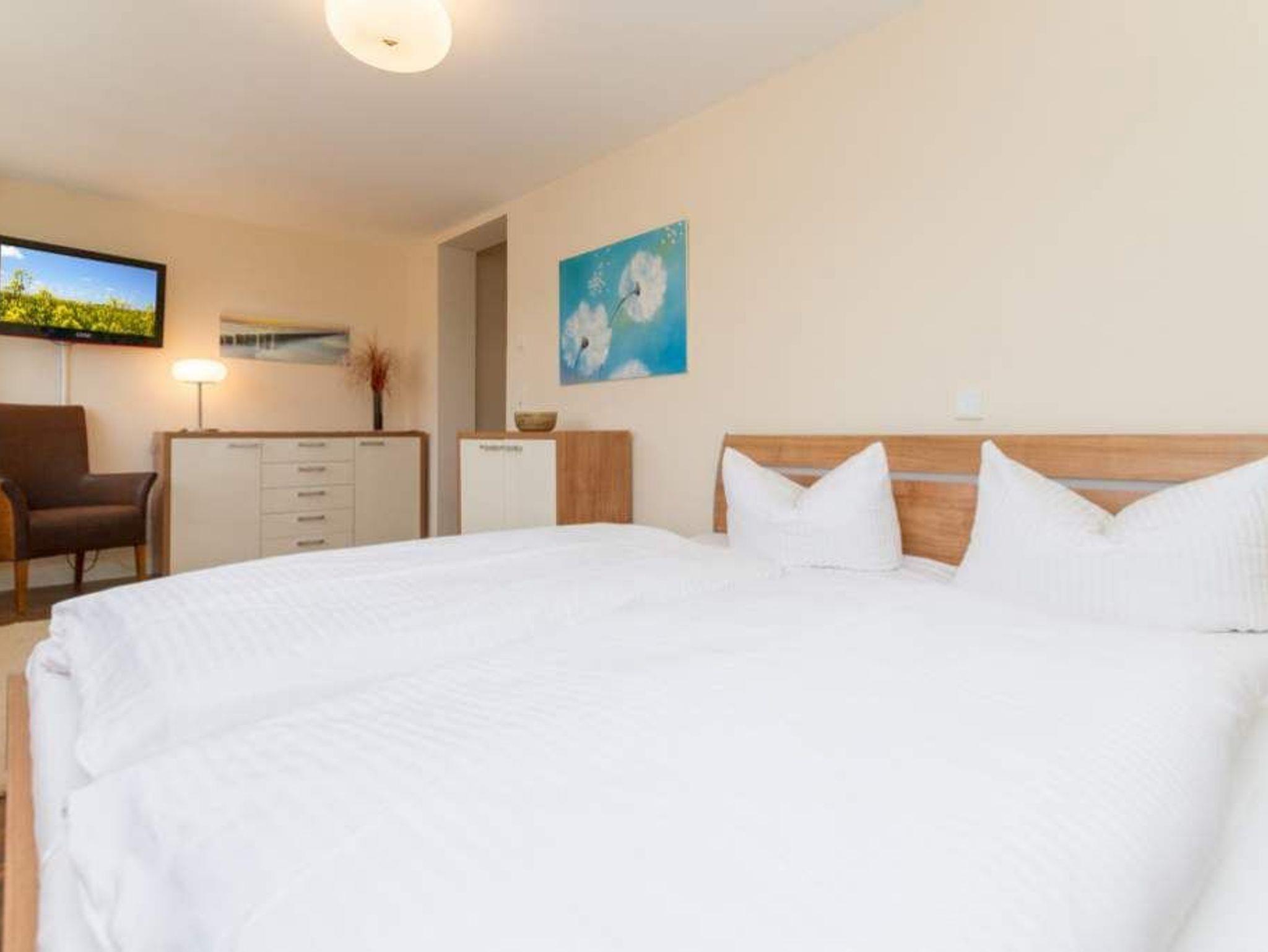 Willkommen in unserer modernen und großzügigen 3-Raum-Ferienwohnung im 3. Obergeschoss. Mit einer Fläche von 89 qm bietet sie ausreichend Platz für 4 Personen und ein Kleinkind (bis 3 Jahre), das in einem Kinderreisebett untergebracht werden kann. Der helle und ansprechende Wohnbereich lädt mit einer bequemen Sitzgruppe und einem Flachbildfernseher zum Entspannen ein. Die offene Küche ist komplett ausgestattet und verfügt über einen Essplatz. Von dort aus gelangen Sie auf den großen Balkon, der Ihnen zusätzlichen Raum zum Genießen und Entspannen bietet. Die Wohnung verfügt über zwei Schlafzimmer, beide mit komfortablen Doppelbetten ausgestattet. In einem der Schlafzimmer finden Sie außerdem einen zusätzlichen Fernseher vor. Das Badezimmer ist mit einer Glasdusche ausgestattet, während ein Gäste-WC zusätzlichen Komfort bietet. Ein PKW-Stellplatz steht Ihnen direkt am Haus zur Verfügung. Darüber hinaus können Sie das kostenfreie WLAN nutzen, um jederzeit mit dem Internet verbunden zu sein.