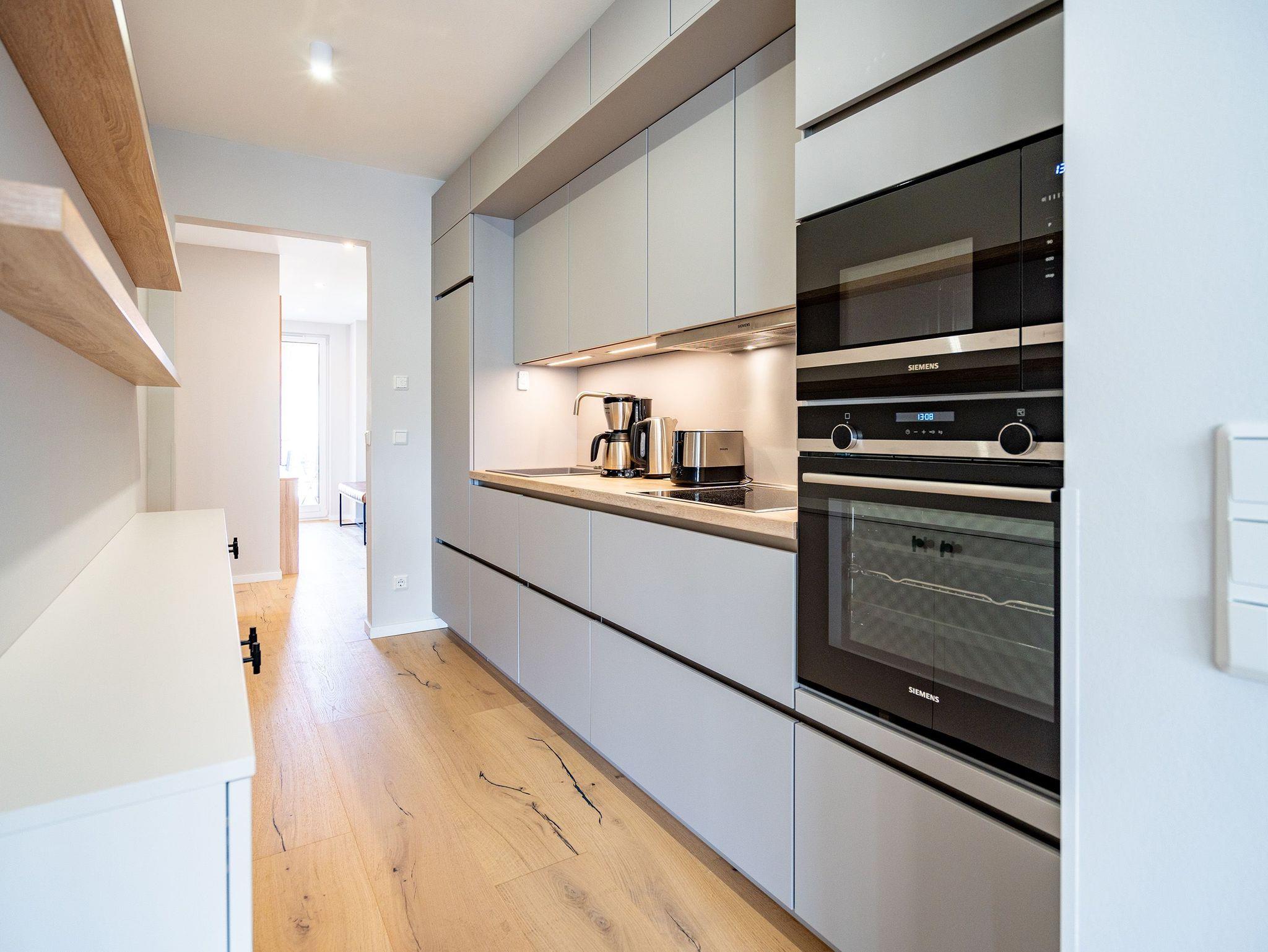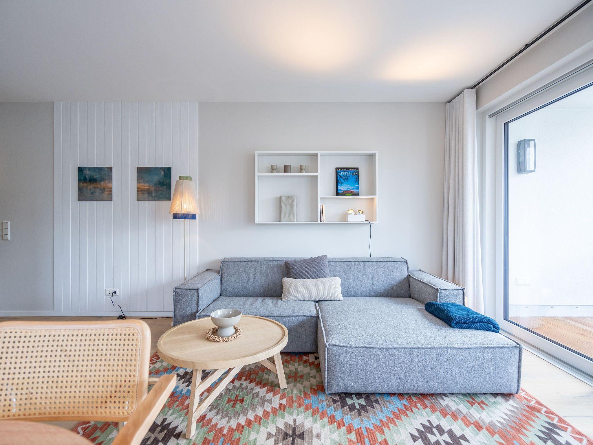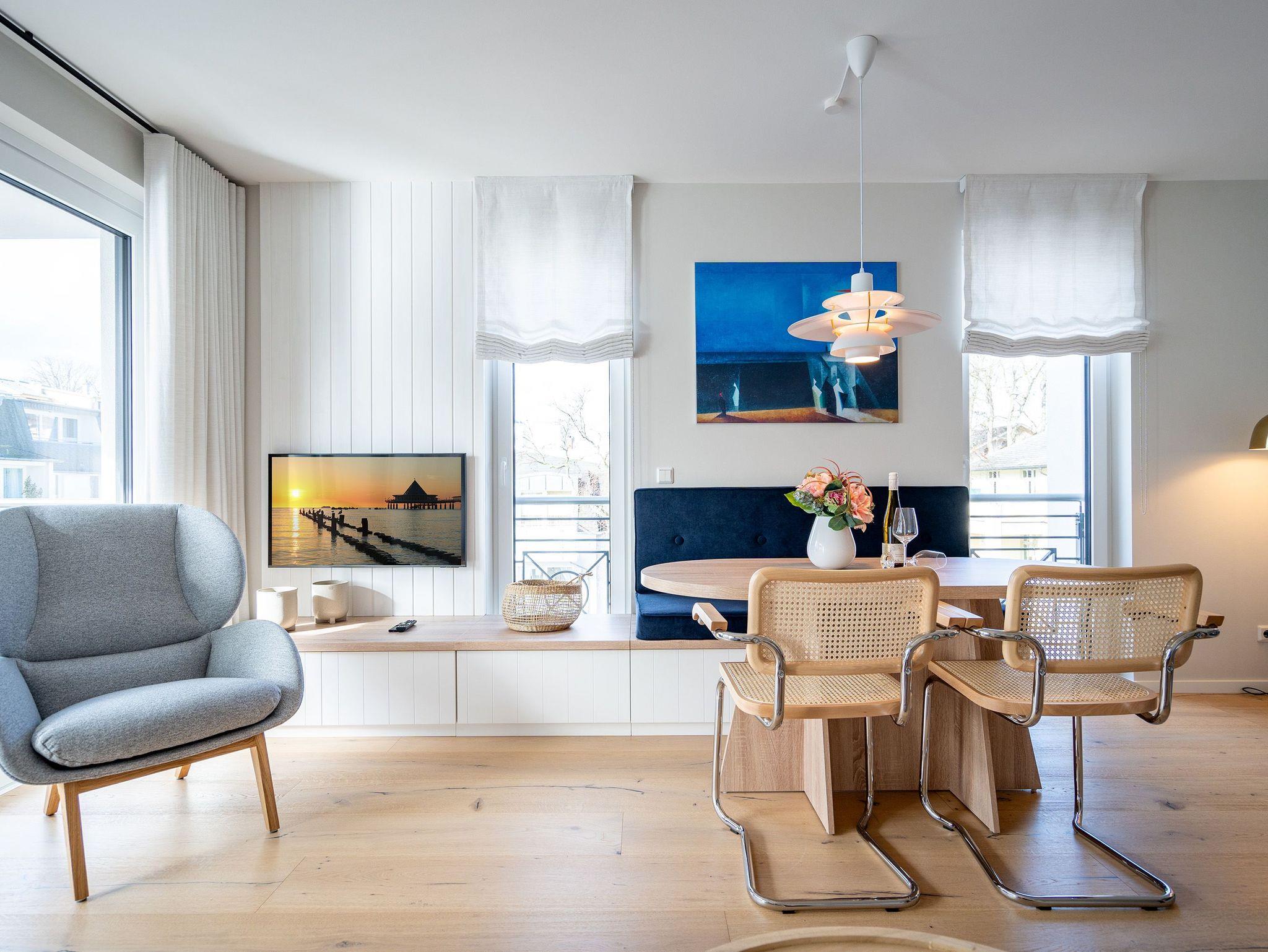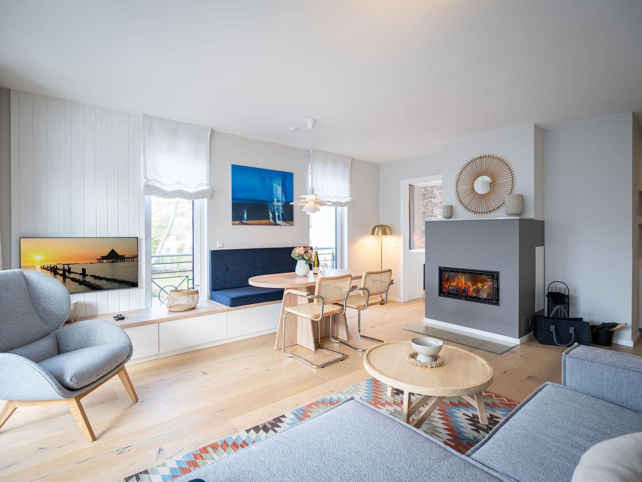 Willkommen in der großzügigen 3-Raum-Ferienwohnung Nr. 07 im Quartier am Strand! Diese herrliche 84 Quadratmeter große Wohnung im 2. Obergeschoss bietet Platz für bis zu 4 Erwachsene und ein Kleinkind (im Kinderreisebett). Der offene Wohnbereich ist ein einladender Ort, um Ihre Urlaubstage zu genießen. Hier finden Sie eine gemütliche Sitzgruppe, einen Flachbildfernseher (43 Zoll) und einen einladenden Kaminofen. Der Essplatz für 4 Personen lädt zu gemeinsamen Mahlzeiten und geselligen Abenden ein. Vom Wohnbereich aus gelangen Sie direkt auf den 9 Quadratmeter großen Süd-West-Balkon, wo Sie die Sonne und die frische Meeresluft in vollen Zügen genießen können. Die voll ausgestattete Küchenzeile bietet modernste Annehmlichkeiten, darunter einen Induktionsherd und eine Mikrowelle, um Ihre kulinarischen Abenteuer zu bereichern. Die Wohnung beherbergt zwei gemütliche Schlafzimmer, von denen eines mit einem komfortablen Boxspringdoppelbett (1,80m x 2,00m) ausgestattet ist und einen direkten Zugang zum innenliegenden Masterbad bietet. Hier finden Sie eine Dusche, einen Waschtisch und ein WC. Das zweite Schlafzimmer ist ebenfalls mit einem herrlichen Boxspringdoppelbett (1,80m x 2,00m), einem Flachbildfernseher und einem atemberaubenden Seeblick ausgestattet, der Ihre Morgen mit einer malerischen Kulisse bereichert. Zusätzlich zum Masterbad gibt es ein zweites Tageslichtbad mit Waschtisch, Dusche, WC, Waschmaschine und Trockner, um Ihren Aufenthalt so angenehm wie möglich zu gestalten. Die finnische Sauna für 2-3 Personen bietet eine wundervolle Gelegenheit zur Entspannung und Regeneration nach einem erlebnisreichen Tag. Genießen Sie den Ausblick zur Ostsee vom zweiten Balkon (6 qm) aus und erleben Sie Momente der Ruhe und Entspannung. Ihr Fahrzeug findet zwei sichere Plätze nebeneinander in der Tiefgarage, wobei einer optional mit einer E-Ladesäule buchbar ist. Ein wohnungseigener Fahrradkeller steht ebenfalls zur Verfügung. Erleben Sie unvergessliche Tage in dieser traumhaften Ferienwohnung und erkunden Sie die Schönheit der Umgebung.