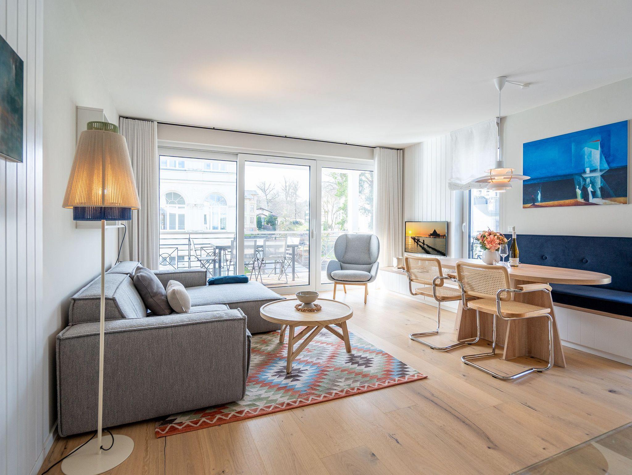 Großzügige 3-Raum-Ferienwohnung mit Sauna und Meerblick, nur 60 Meter vom Strand in Heringsdorf entfernt.