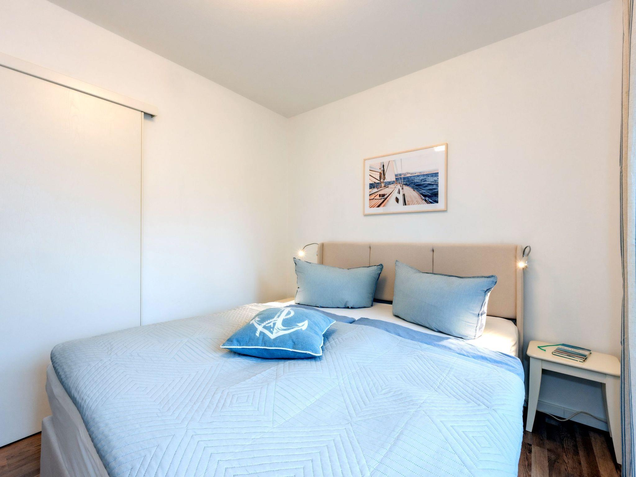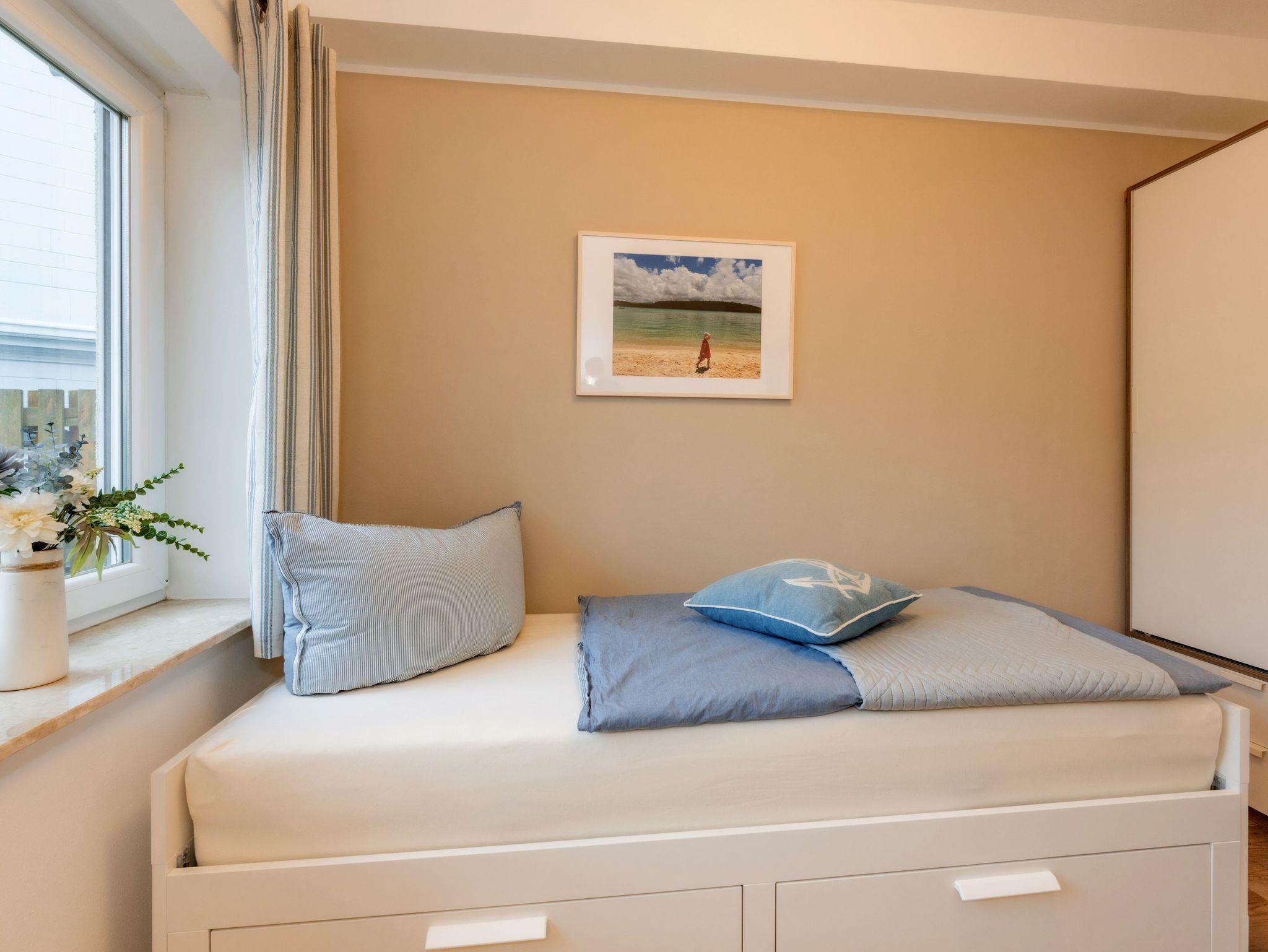 Eine moderne, im maritimen Stil eingerichtete 3-Raum-Nichtraucher-Ferienwohnung (ca. 50 qm) im Hochparterre des Appartementhauses (mit Fahrstuhl) sowie einer Terrasse, zu welcher Sie über 4 kleine Stufen einer Metalltreppe gelangen. Die Wohnung ist für 4 Erwachsene (ggf. zzgl. einem Kleinkind bis 3 Jahre) ausgestattet.
