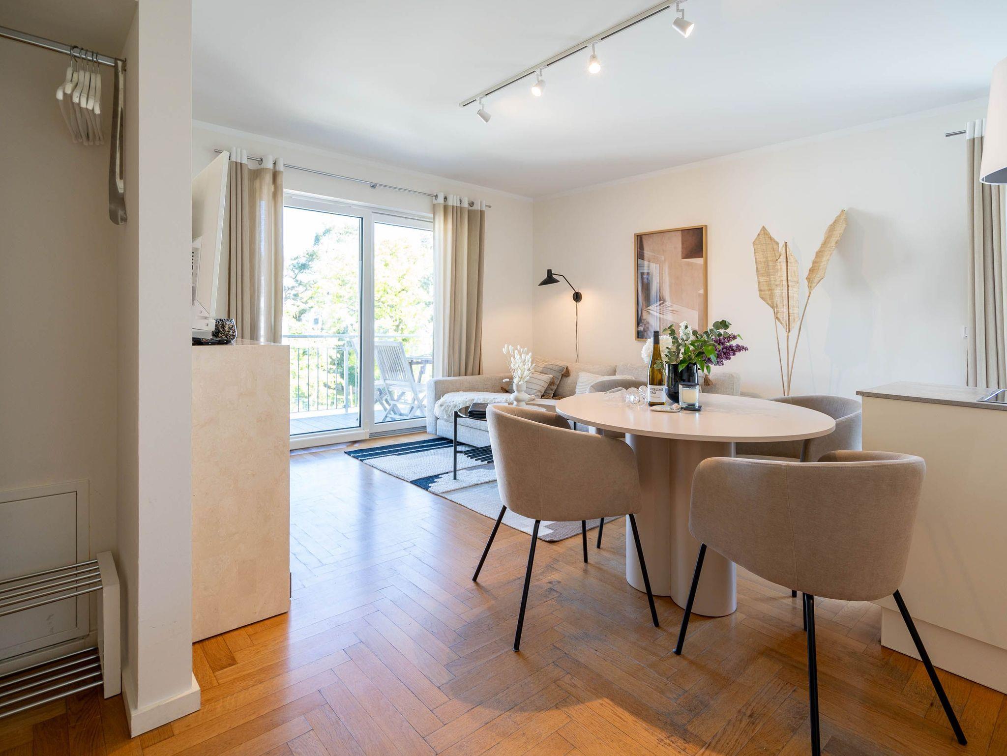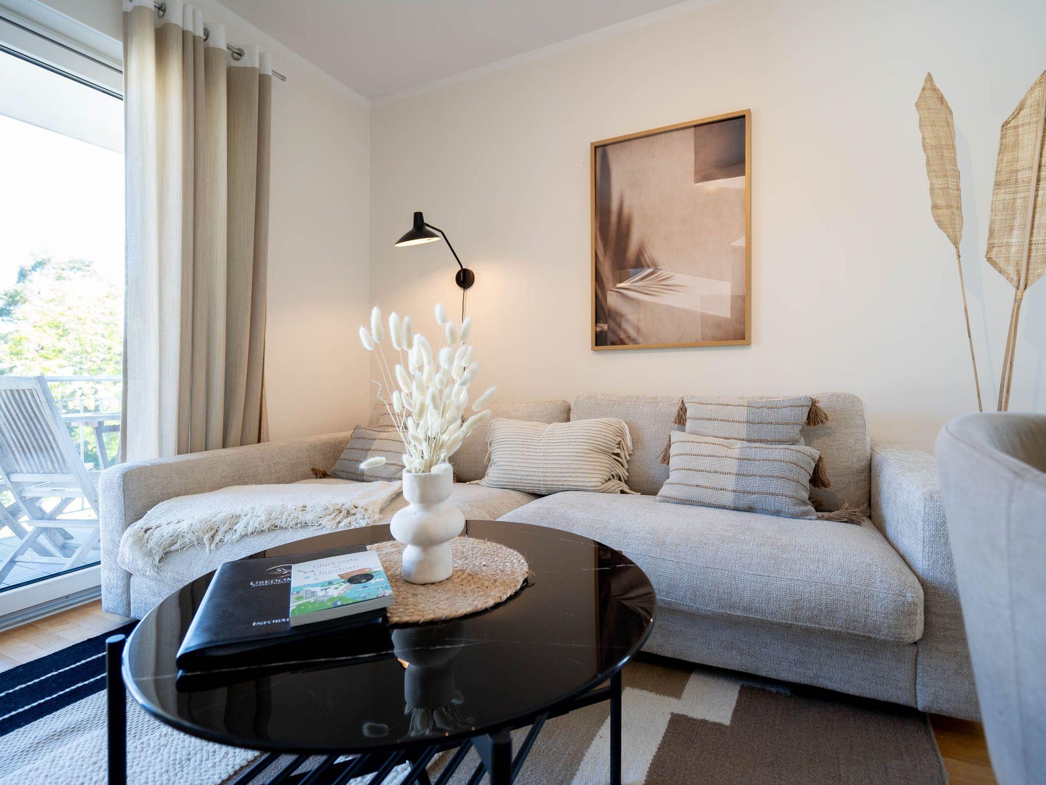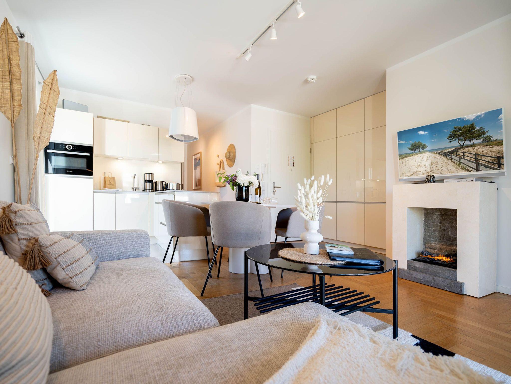 Modernes, komfortables Ferienappartement mit Sauna, Elektrokamin und Balkon nahe Strand in Heringsdorf.