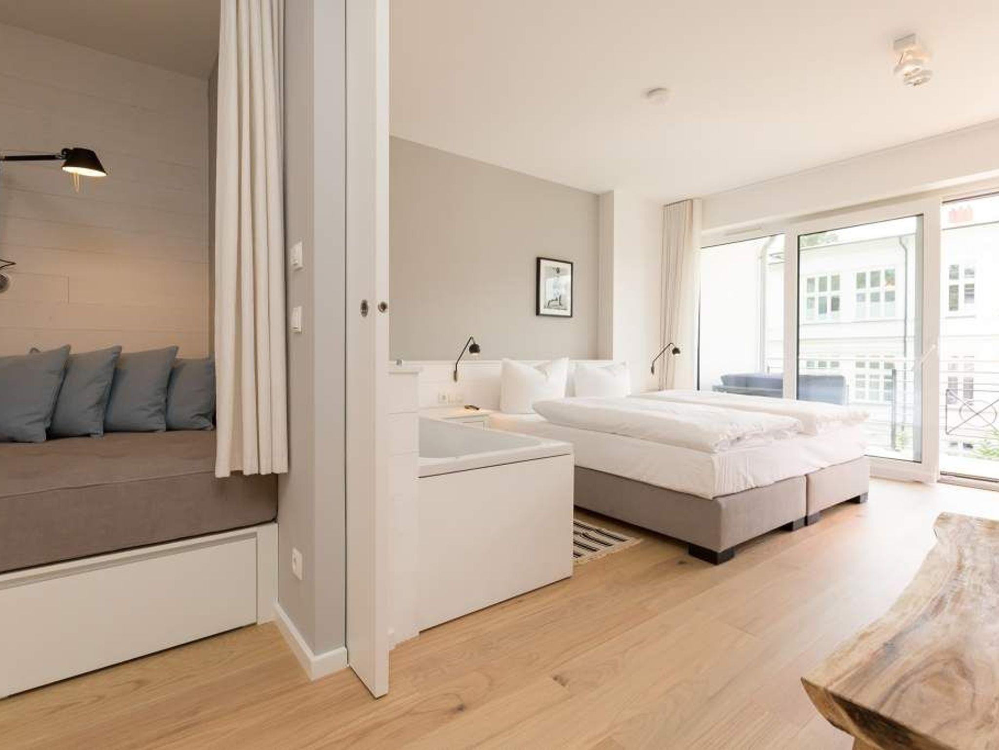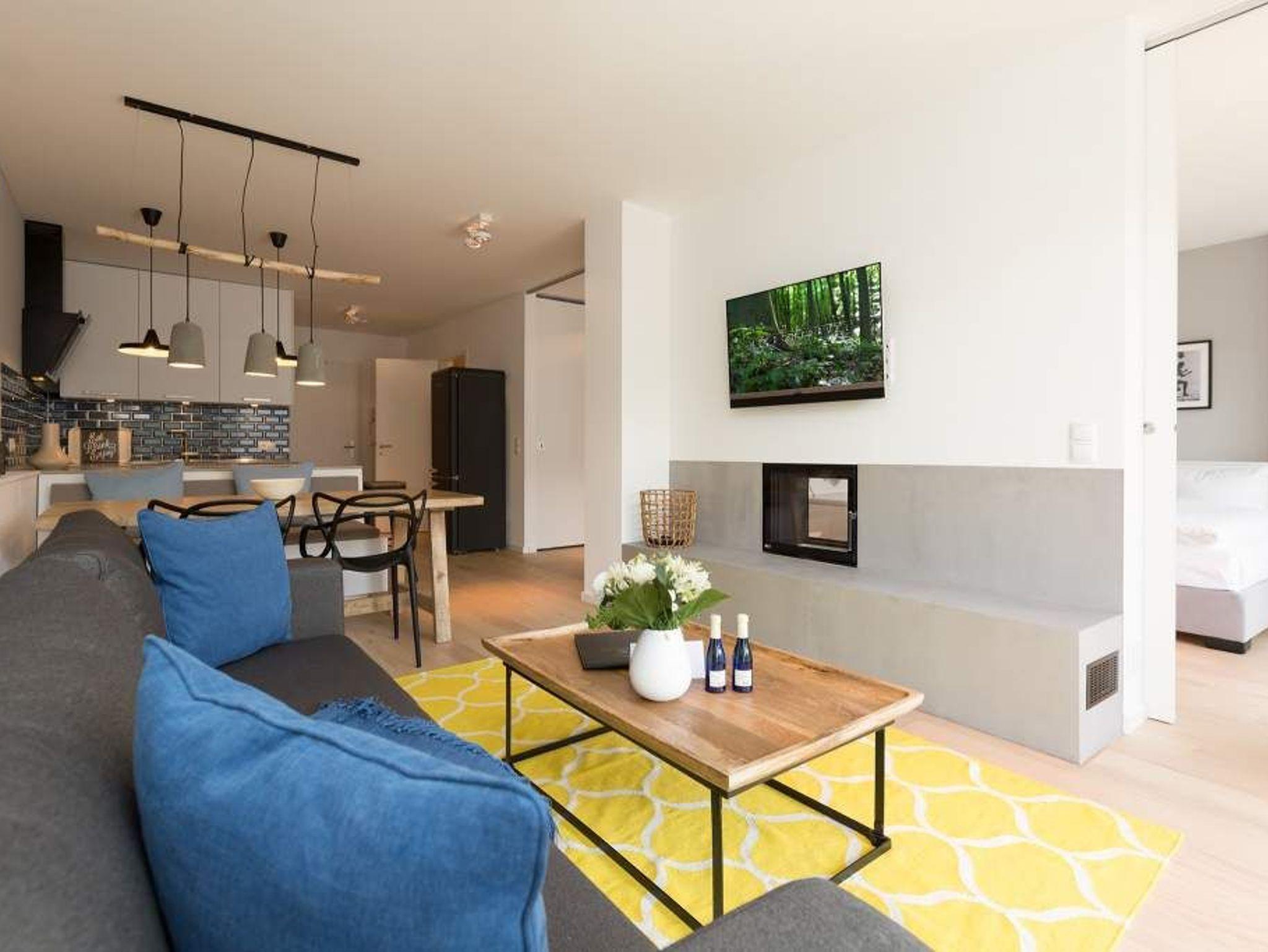 Modernes Apartment in Heringsdorf mit Kamin, Sauna und Balkon, nur 100 m vom Strand entfernt.