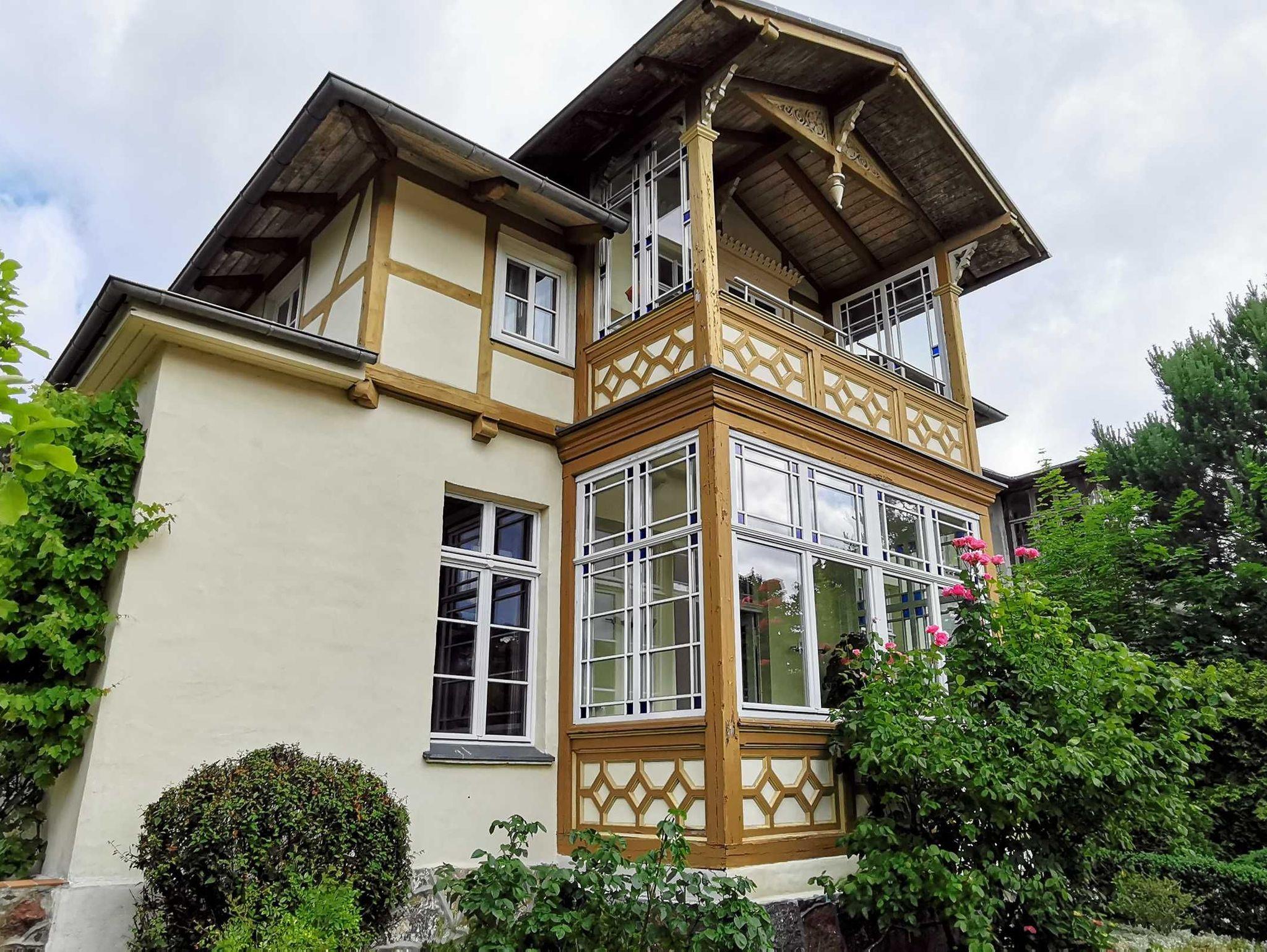 Sie suchen einen Rückzugsort für etwas Zeit zu zweit? Dann ist die Kajüte genau das Richtige für Sie. Sie gelangen durch eine kleine Treppe in der liebevoll sanierten Villa ins Obergeschoß, wo Sie Ihre 52qm große Ferienwohnung mit einem kleinen, gemütlichen Schlafzimmer mit einem 140 cm breiten Doppelbett und einem hellen Wohnzimmer finden werden. Lassen Sie sich von der Morgensonne auf der nach Südosten ausgerichteten Balkonveranda verwöhnen. Von hier aus haben Sie einen großartigen Blick auf das große, grüne Grundstück der Villa. Wahrscheinlich können Sie von hier das Meer schon riechen. Nur 100 Meter trennen Sie und die Ostsee. Der kilometerlange Sandstrand der Insel lädt zu einem ausgiebigen Spaziergang entlang der Kaiserbäder ein. Kommen Sie dann erschöpft zurück, wartet schon eine heiße Dusche oder auch eine kleine Auszeit in der großzügigen Badewanne auf Sie. Wie wäre es zum Ausklang eines romantischen Abends mit einem Glas Wein am kleinen Bio-Kamin? Bei uns bleiben keine Wünsche offen. Kommen Sie mit dem Auto oder vielleicht ganz sportlich mit dem Fahrrad? Für beides haben wir selbstverständlich einen Platz auf dem Grundstück. Das ist noch längst nicht alles. Sie finden bei uns: Gratis-WLAN, LED-TV, DVD-Player, DVD-Filme, Bücher, eine Einbauküche mit Geschirrspüler, Kühl- und Gefrierkombination, Backofen mit Ceranfeld, Wasserkocher, Kaffeemaschine, Toaster, Föhn und für die kleinsten Gäste Babybett, Babyhochstuhl, klappbare Wickelauflage und vieles mehr.