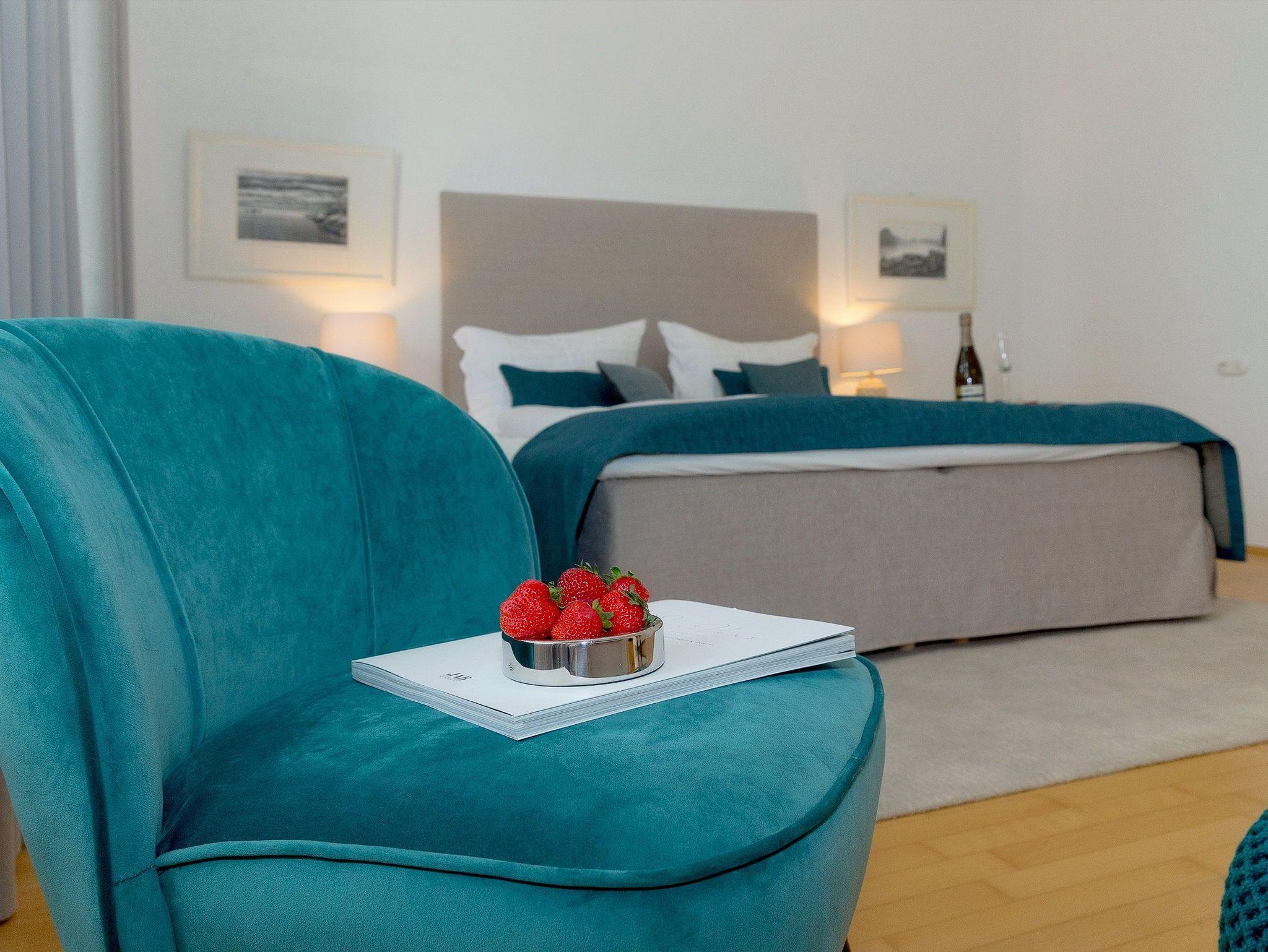 Das 2-Zimmer-Appartement erreichen Sie bequem mit dem Lift im 2. Obergeschoss. Mit seinen 75 Quadratmetern lässt dieses helle und sehr geräumige Appartement das Urlaubsherz höher schlagen. Großzügige Räume, hohe Decken und dazu passend die moderne und elegante Möblierung sorgen für ein komfortables Wohlfühlerlebnis im Urlaub.