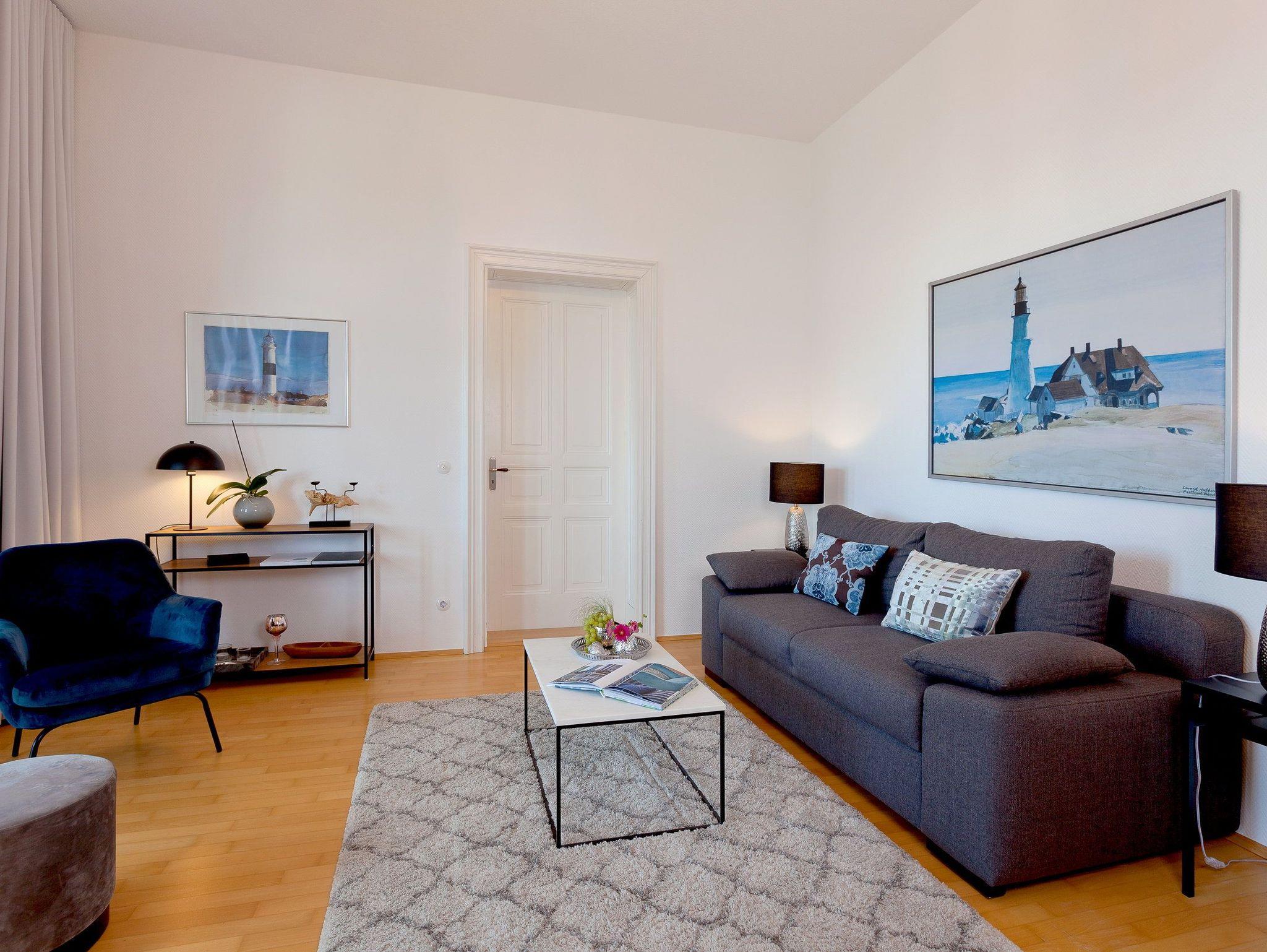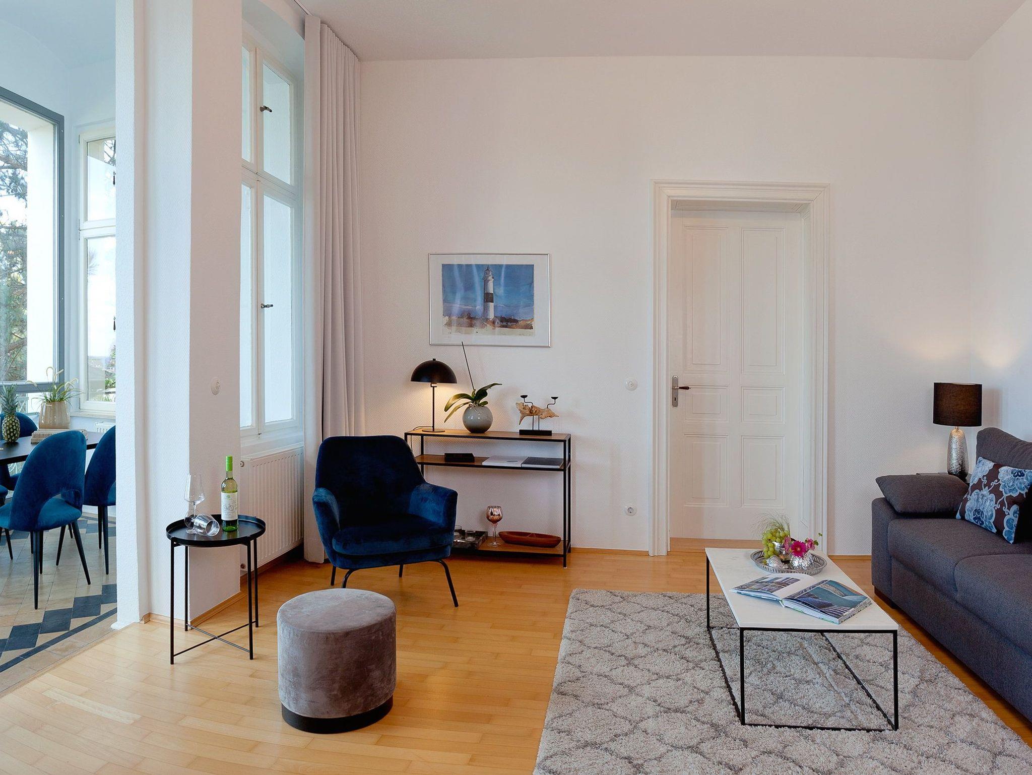 Herzlich Willkommen, dieses Appartement empfängt Sie bereits im Flur mit seiner Großzügigkeit. Der Wohnraum ist mit einem bequemen Sofa, welches sich im Handumdrehen zur Schlafgelegenheit für die 3. und 4. Person umwandeln lässt, und einem Flachbildfernseher mit integriertem DVD-Player ausgestattet. Der angrenzende Wintergarten Richtung Nordosten, bietet Dank der großen Fensterfront einen traumhaften Blick über das Seebad und lädt zum Zusammensein mit einem Esstisch für bis zu vier Personen ein. Auf der bequemen Liege können Sie es sich mit einem Buch und einem herrlichen Blick auf die Dächer von Heringsdorf bequem machen und den Urlaubstag Revue passieren lassen.