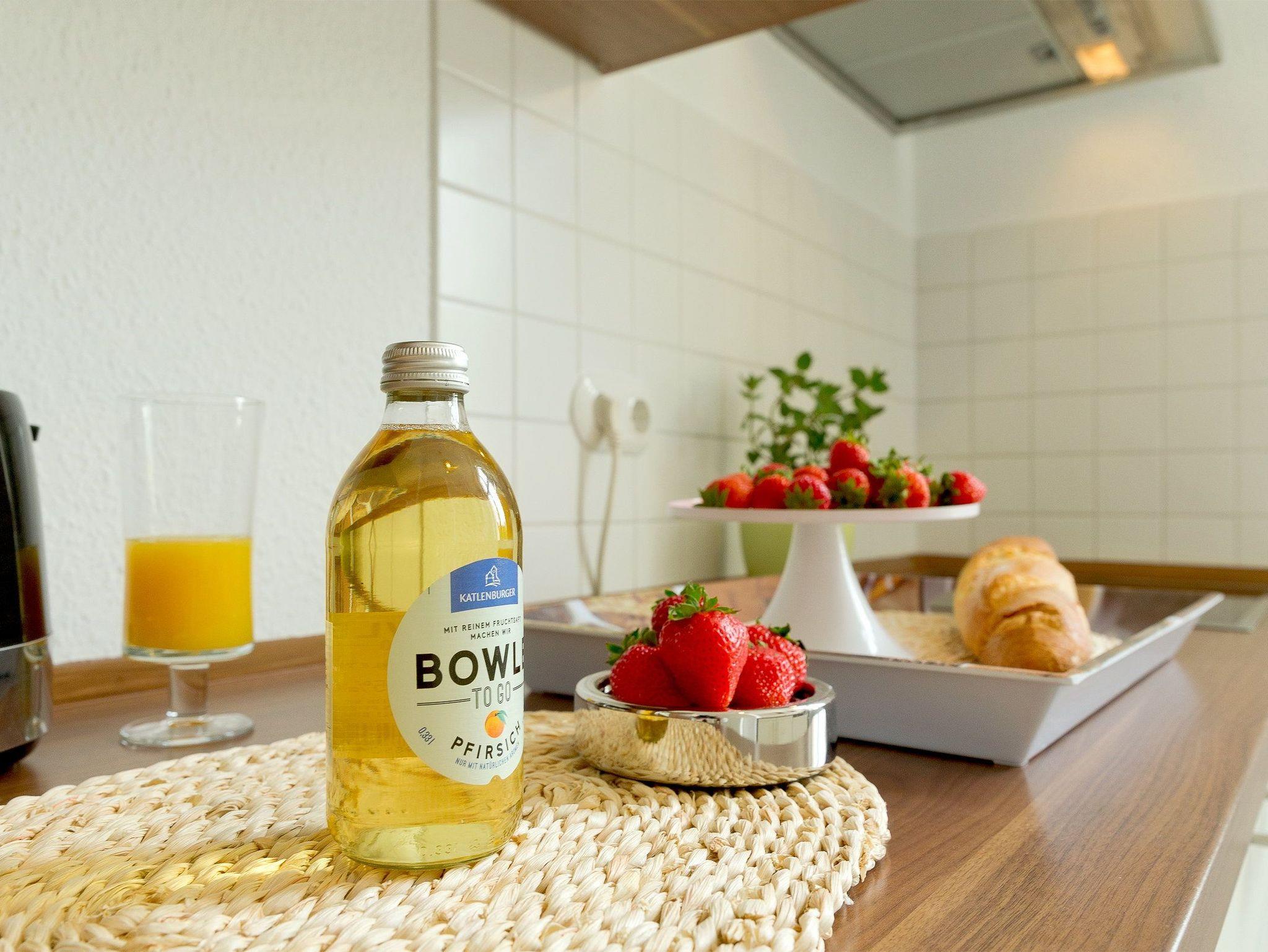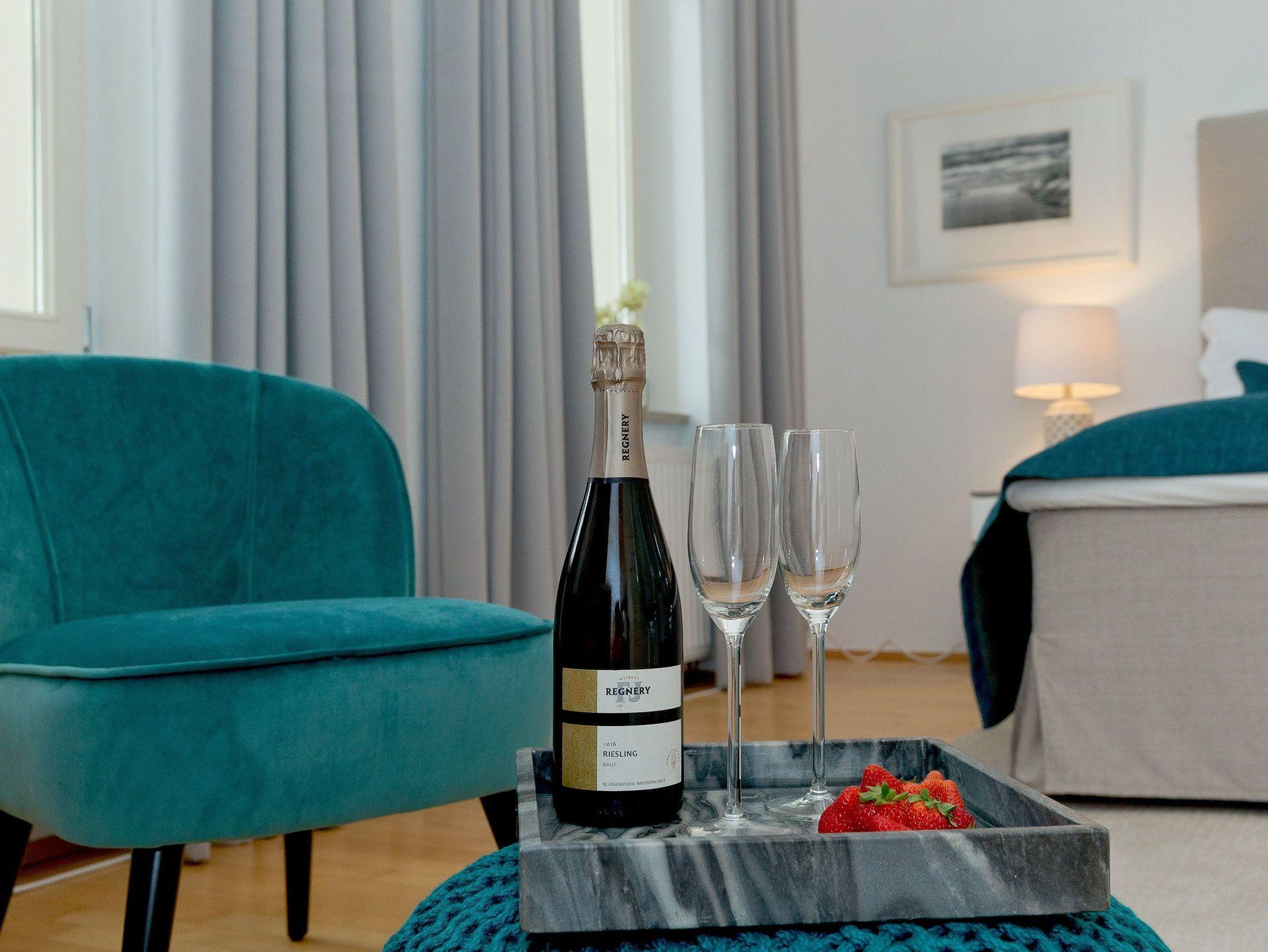 Die separate Küche verfügt über eine Küchenzeile mit Backofen, Kühlschrank mit Gefrierfach, Geschirrspüler, Wasserkocher, Toaster, Kaffeemaschine. Das Appartement verfügt zudem über ein großzügiges Schlafzimmer mit einem komfortablen Doppelbett (180 x 200cm / durchgehende Matratze) und Flat-TV. Dank der bodenlangen und verdunkelnden Vorhänge im Wohn- und Schlafzimmer können Sie in aller Ruhe und ausgeschlafen in einen neuen Urlaubstag starten. Damit Sie Ihre wohlverdiente Urlaubszeit bereits am Anreisetag in vollen Zügen genießen können haben wir das Bett für Sie und das für Ihre lieben Mitreisenden bereits bezogen und ein Duschtuch sowie ein kleines Handtuch bereitgelegt.
