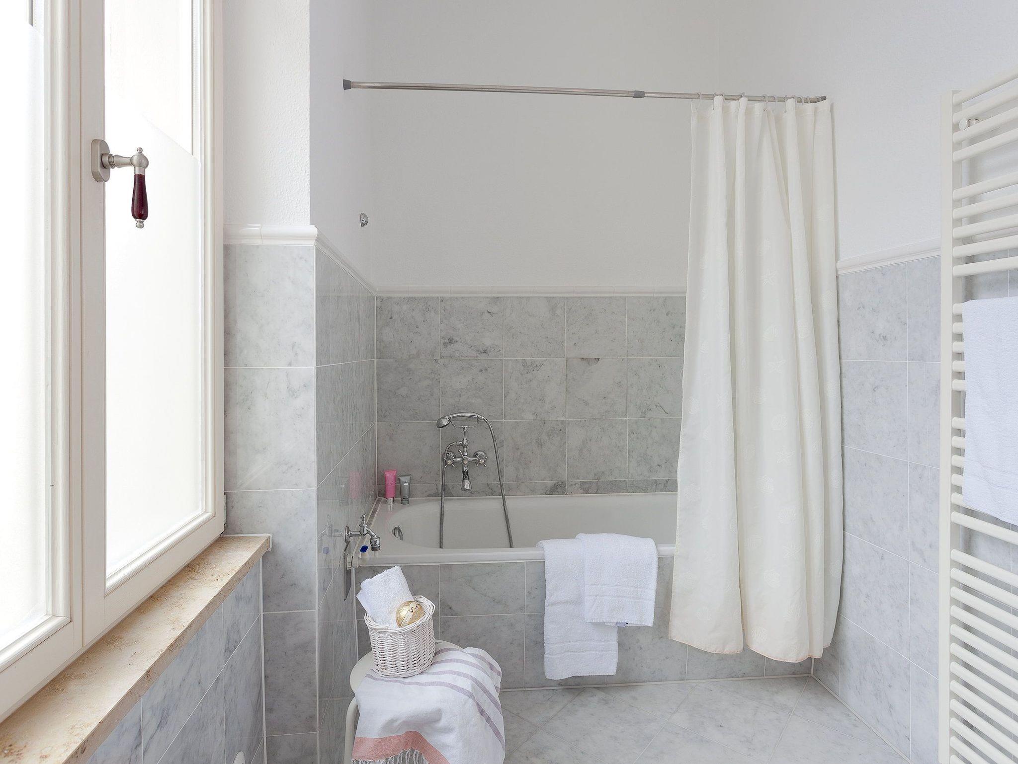 Das marmorierte Badezimmer verfügt über Badewanne, WC und einem Haartrockner. Ein PKW-Stellplatz direkt am Haus sowie ein kostenfreier WLAN-Zugang runden den Urlaubskomfort dieses Appartements perfekt ab.