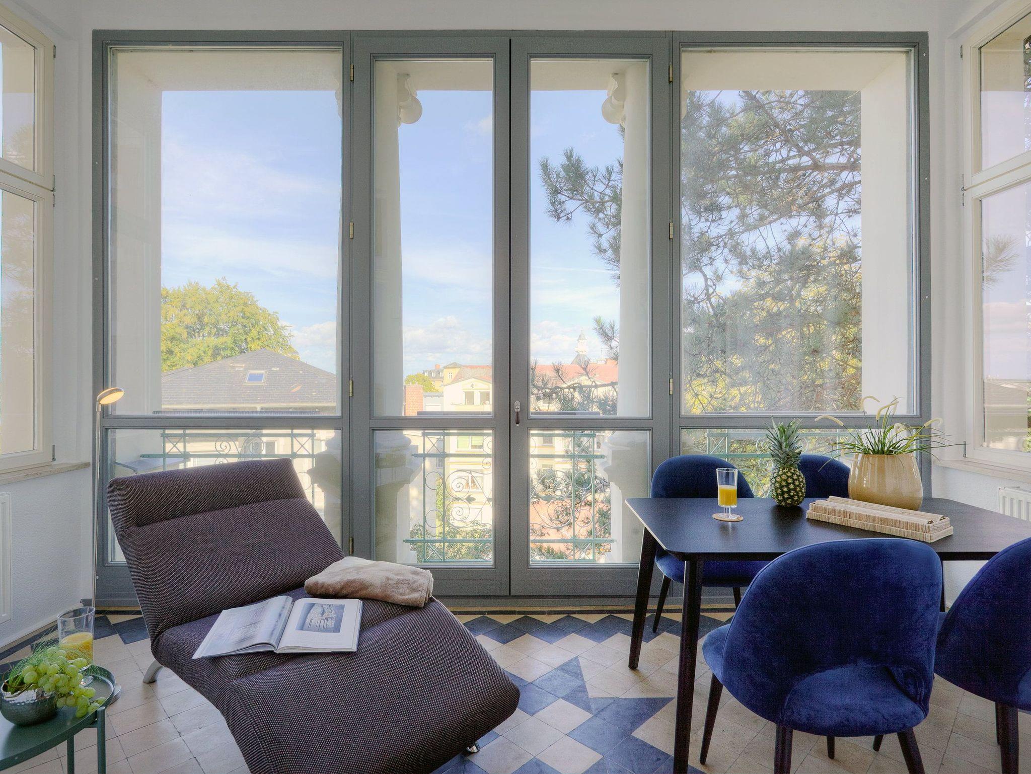 Genießen Sie einen traumhaften Blick über Heringsdorf in der elegant möblierten Villa Schlossbauer, Apartment Nr. 9.