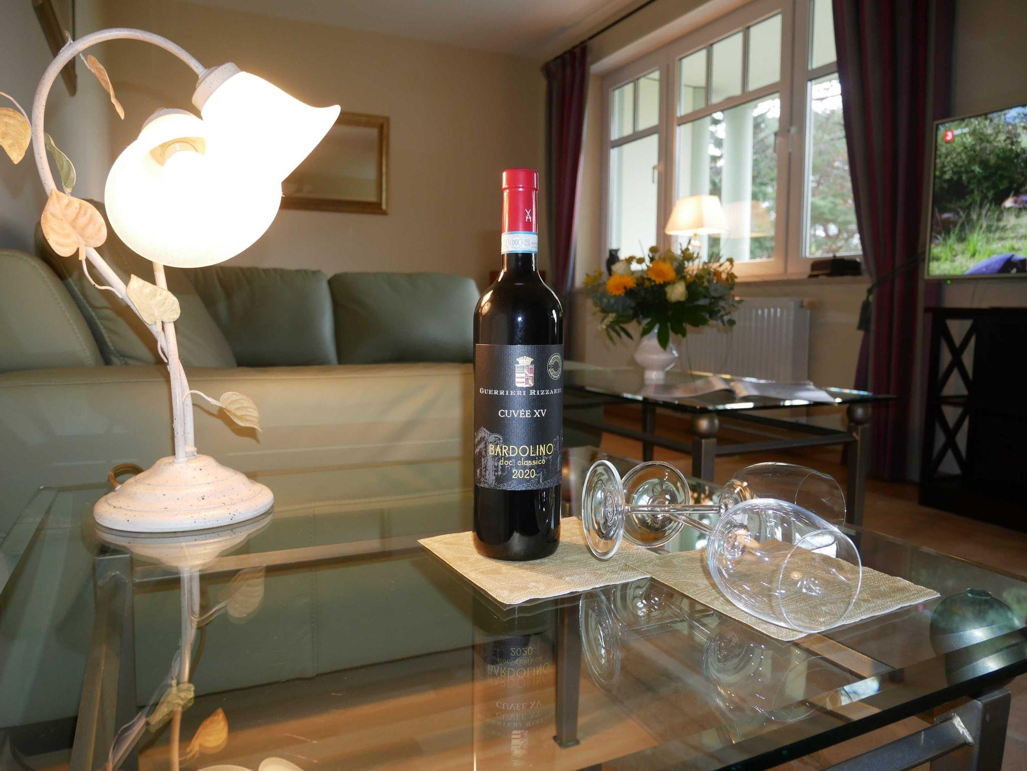 Die komfortable 2-Raum-Ferienwohnung befindet sich im Ergeschoss der Villa und verfügt über ein Wohnzimmer und ein Schlafzimmer, eine voll ausgestattete separate Küche mit Essplatz und 2 Terrassen (Meer- und Südseite). Das Badezimmer ist mit Dusche/WC und einer Badewanne ausgestattet. Die Wohnung verfügt über Laminatboden, antike Möbel und moderne Funktionsausstattung wie FLAT-TV und W-LAN.