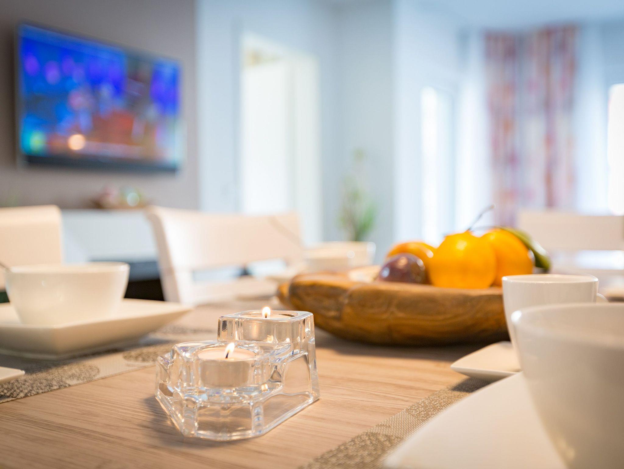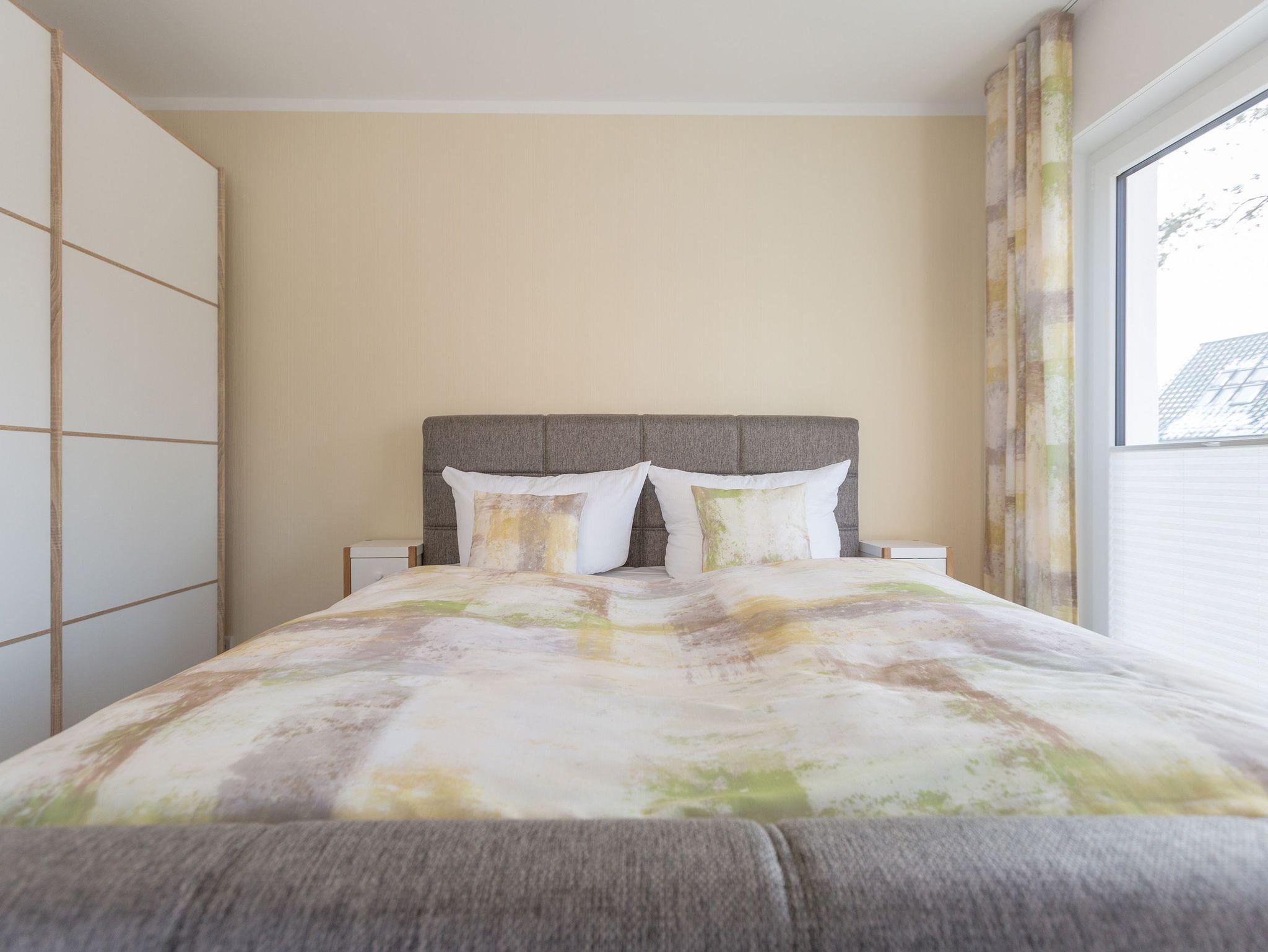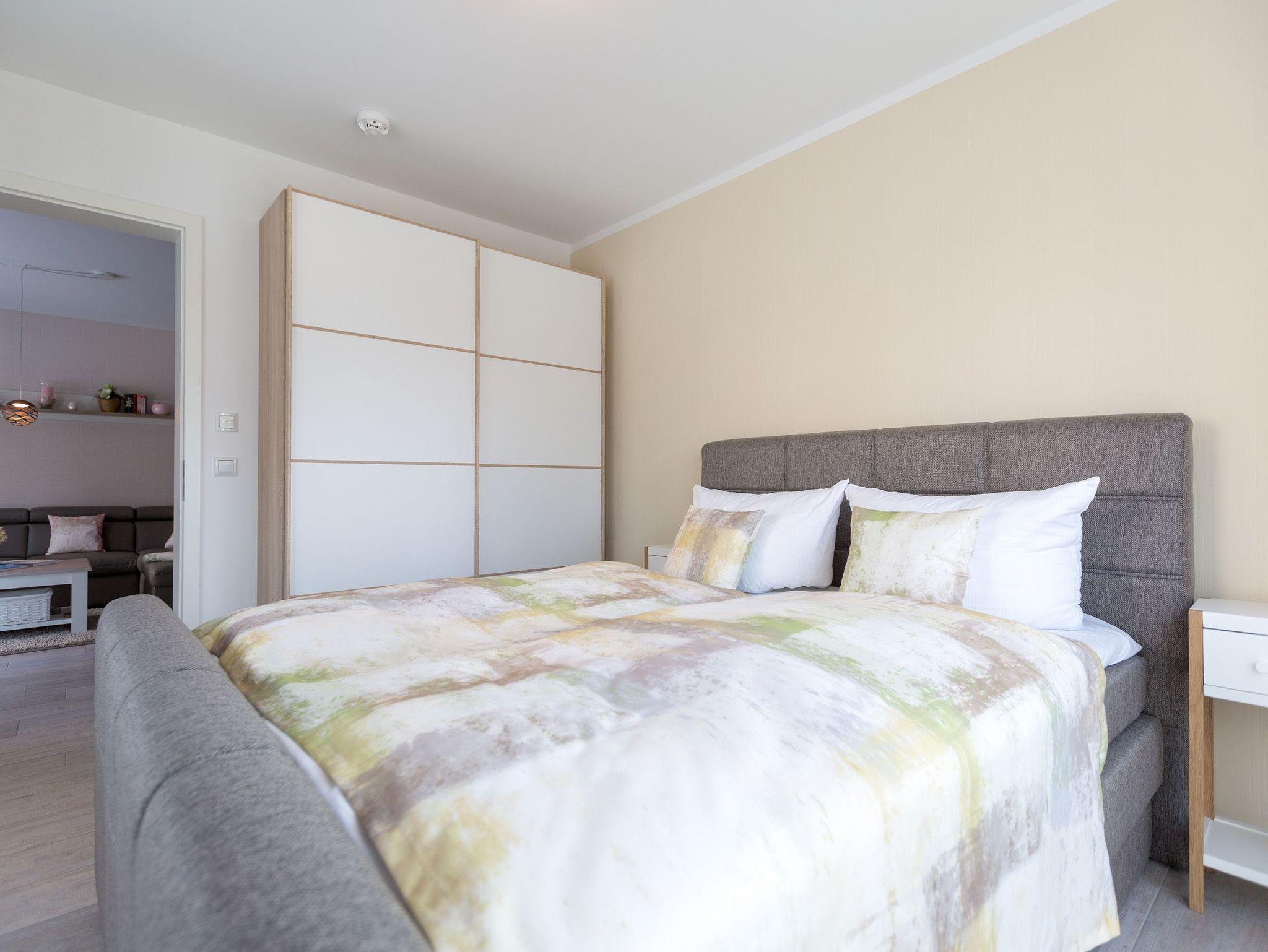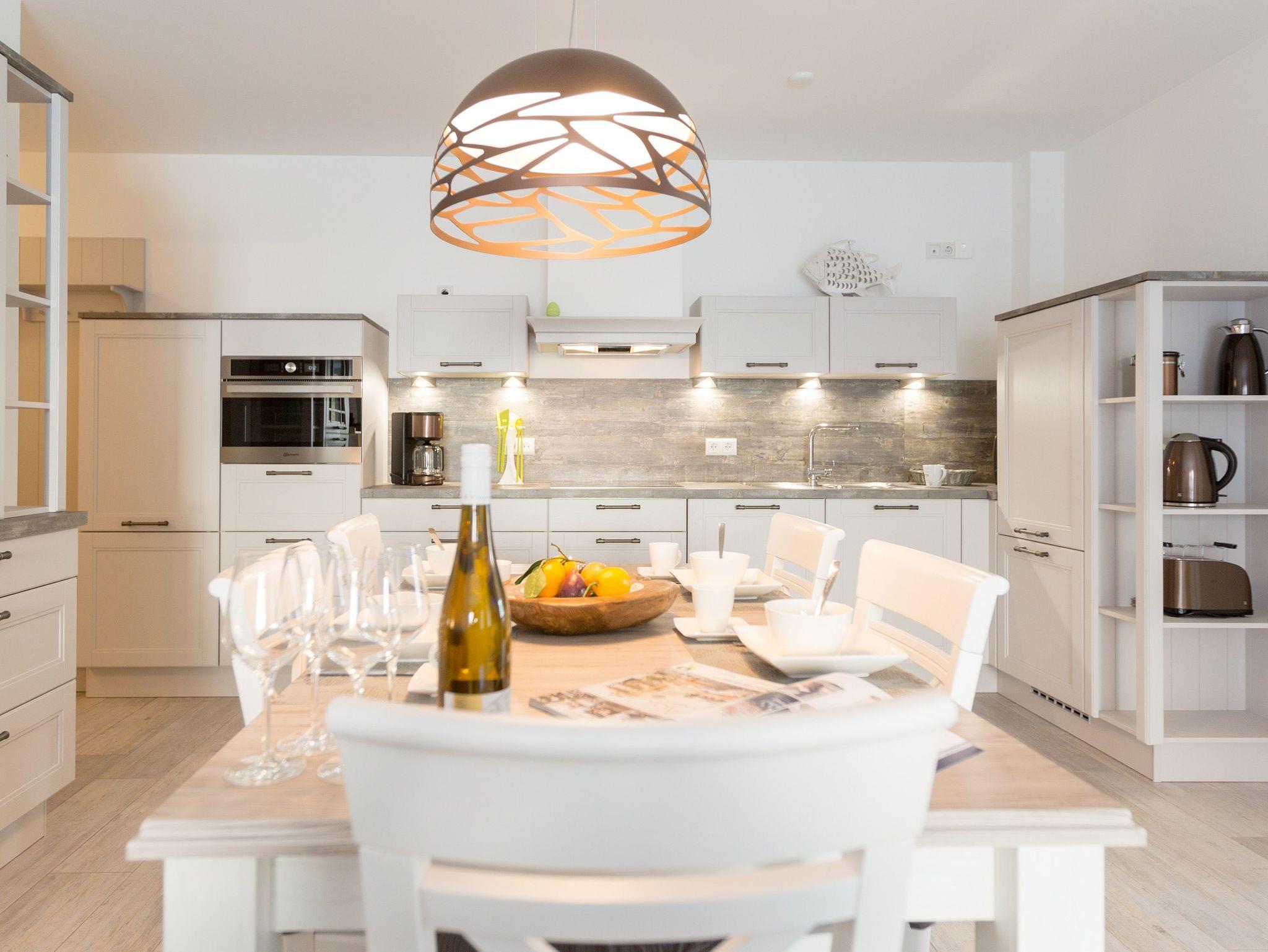 In diesem 67 Quadratmeter großen Ferienappartement im Erdgeschoss der Dünenresidenz in Heringsdorf passt alles harmonisch zusammen. Hell und lichtdurchflutet schafft es eine Atmosphäre voller Leichtigkeit. Genauso sollte ein Urlaub sein. Stilvoll und komfortabel sind die drei Räume eingerichtet, die Platz bieten für bis zu vier Personen und ein Kleinkind bis drei Jahre im Kinderreisebett. Leder, Echtholzmöbel, Designlampen und geschmackvolle Accessoires ? hier empfängt Sie eine wunderschöne Wohlfühlatmosphäre. Mit viel Liebe zum Detail wurde dieses Urlaubsdomizil eingerichtet. Alles ist ebenerdig konzipiert. Eine große Wohnlandschaft verführt zum Entspannen bei Kaminfeuer oder Kerzenlicht. Für Unterhaltung sorgt ein großer Flat-TV. Eine offene, in schlichtem Weiß gehaltene Küche ? mit hochwertigen Bauknecht-Geräten ausgestattet ? ist zum Kochen und Zusammensitzen ideal. Lassen Sie sich in die beiden großen Doppelboxspringbetten (1x 1,60m x 2,00m / 1x 1,80m x 2,00m) in den beiden Schlafzimmern fallen und genießen Sie einen erholsamen Schlaf oder ausgiebige Kuschelzeiten. Von einem der Schlafzimmer sowie vom Wohnzimmer aus haben Sie Zugang zum Westbalkon, der Ihnen allabendlich den Sonnenuntergang in den schönsten Farben präsentiert. Das Badezimmer hat eine geräumige Dusche, einen Waschtisch, eine Waschmaschine und ein WC. Lassen Sie sich vom ersten Moment an rundum verwöhnen. Handtücher liegen für Sie bereit und die Betten sind bezogen. Ein Pkw-Stellplatz steht in der Tiefgarage (max. Einfahrtshöhe 1,85 m) zur Verfügung.