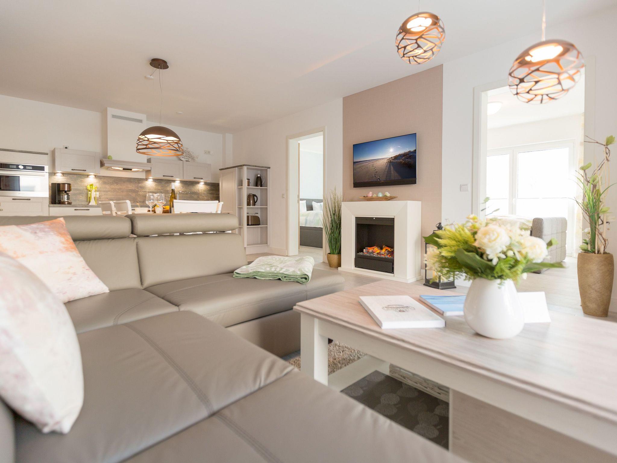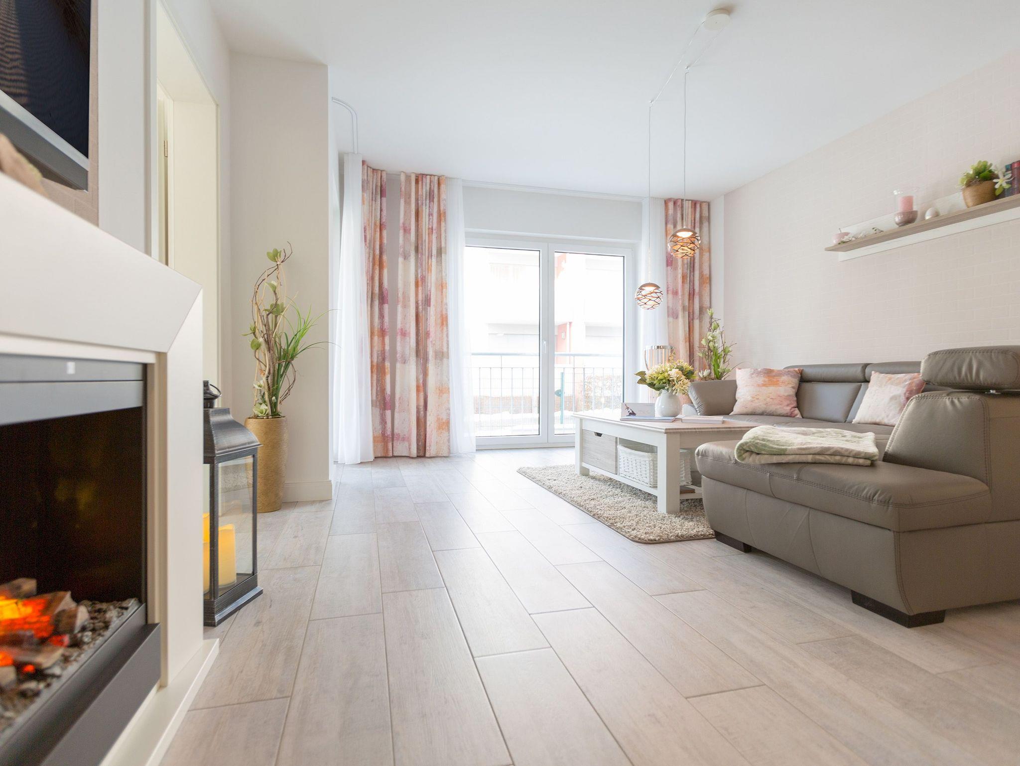 Helles und stilvolles Ferienappartement mit Balkon und Kamin in Heringsdorf, nur 50 m vom Strand entfernt.