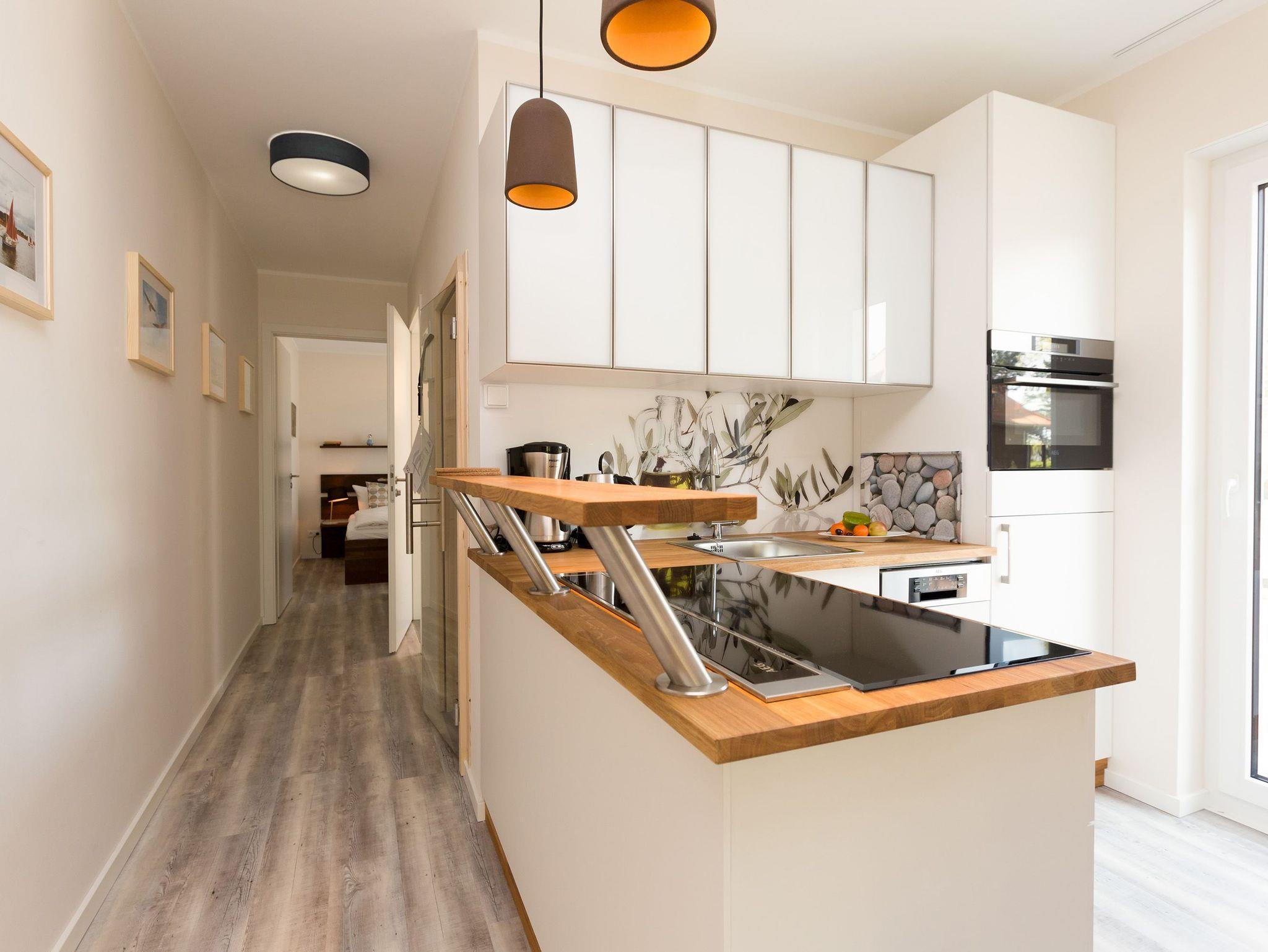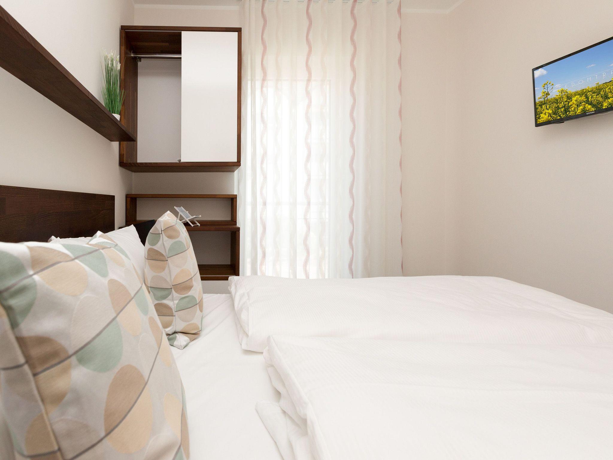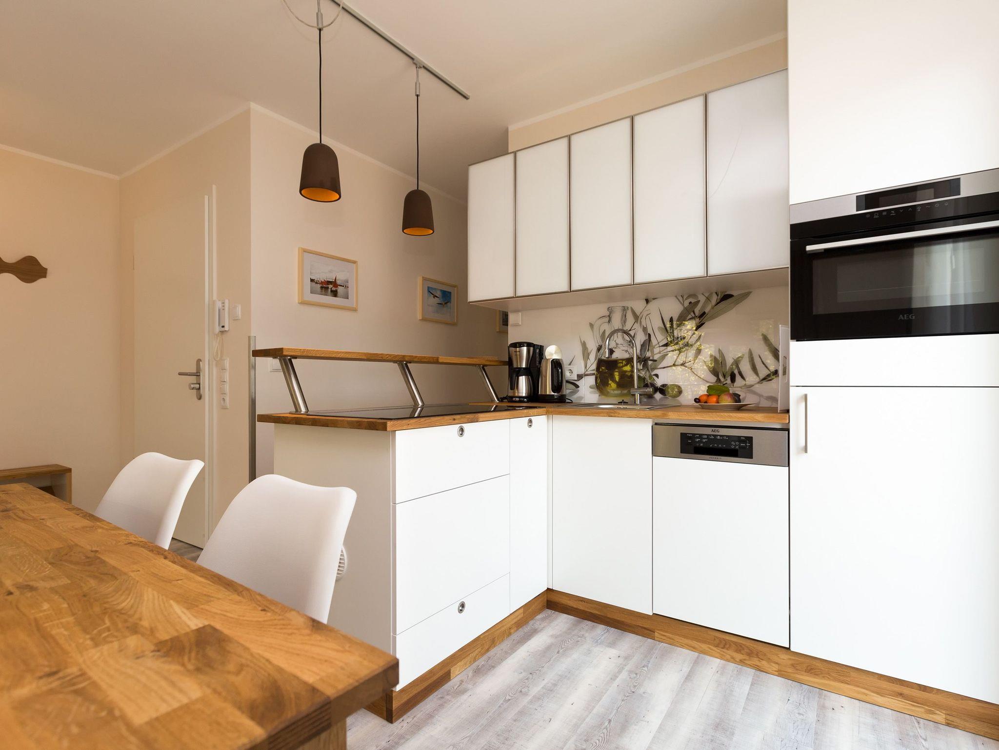 Urlaubsfeeling zum Wohlfühlen. Unsere neue 3-Raum-Ferienwohnung (62 qm) im 1.Obergeschoss der Dünenresidenz empfängt Sie mit hellen Farben und liebevollen Dekorationen. Wertige Einbauten aus Eiche [&] Akazie und eine gelungene Raumaufteilung schaffen hier ein schönes Urlaubziel für 4 Personen und ein Kleinkind bis 3 Jahre (als Aufbettung im Babyreisebett). Schon beim Eintreten offeriert sich der helle Wohnbereich, ausgestattet mit einer modernen Sitzgruppe und Flat-TV. Die angrenzende, offene Küche mit Essplatz fügt sich harmonisch ein und ist natürlich komplett ausgestattet. Zwei Schlafzimmer mit jeweils eigenem Bad bieten einen idealen Rückzugsort. Das erste Schlafzimmer verfügt über ein komfortables Doppelbett mit Bettkasten (1,80m x 2,00m) und Flat-TV, ein kleines Duschbad und Zugang zum Balkon. Das zweite Schlafzimmer wartet mit einem bequemen Doppelbett (1,60m x 2,00m) und Flat-TV auf, angrenzend gibt es hier ein Bad mit Dusche und WC. Klein aber fein, die wohnungseigene Sauna bietet nicht nur in der kalten Jahreszeit eine erholsame Abwechslung. Die Usedomer Sonne und das Meeresrauschen genießen Sie schon beim Frühstück auf dem Ostbalkon, ausgestattet mit Gartenmöbeln. Hier kann man bei ein bisschen Meerblick wunderbar Relaxen. Für Ihren Komfort sind die Betten bei der Anreise bezogen und Handtücher liegen bereit. Ein Pkw-Stellplatz steht in der Tiefgarage zur Verfügung (max. Einfahrtshöhe 1,85 m). Das Wlan-Netz kann kostenlos genutzt werden.