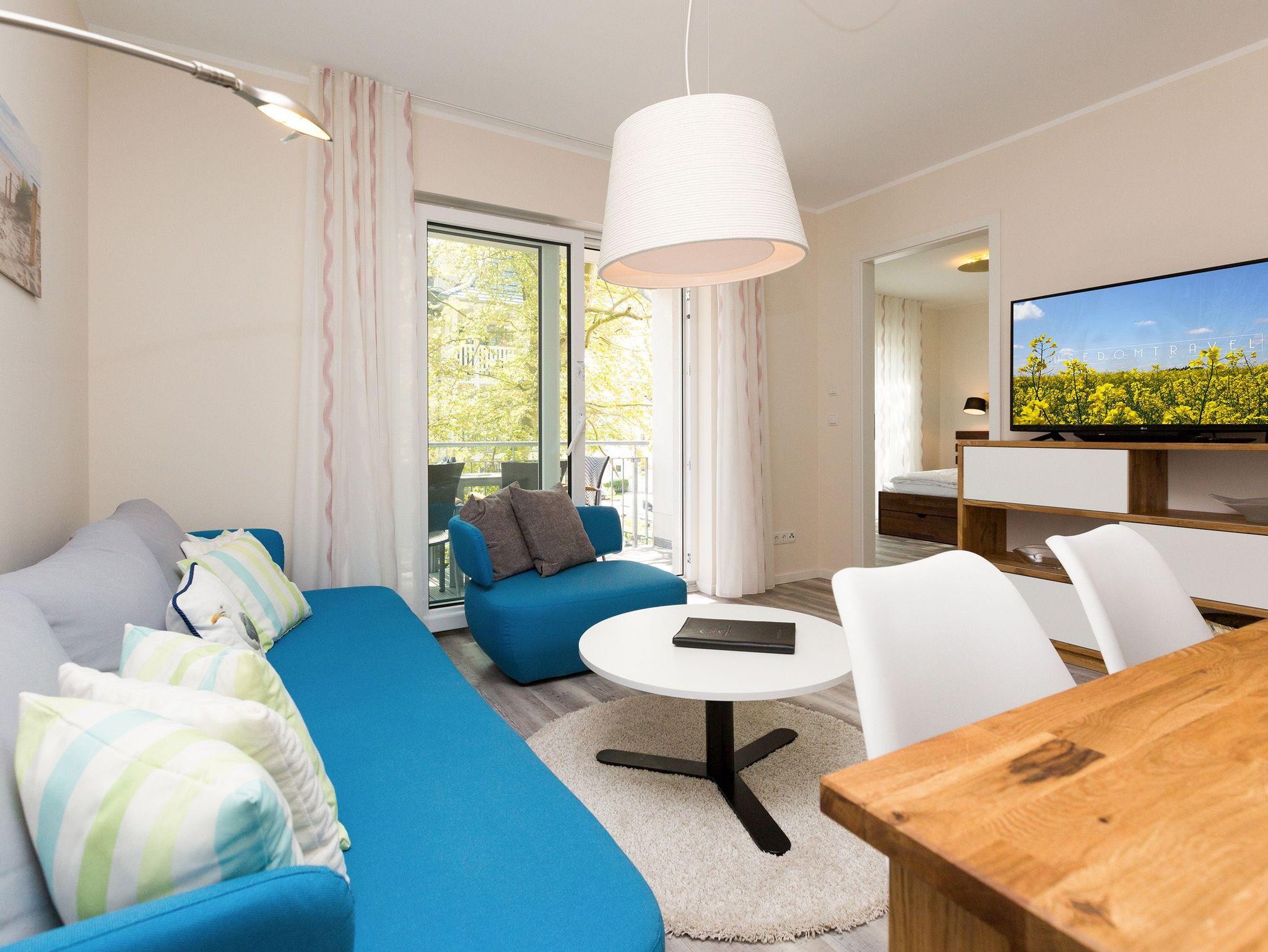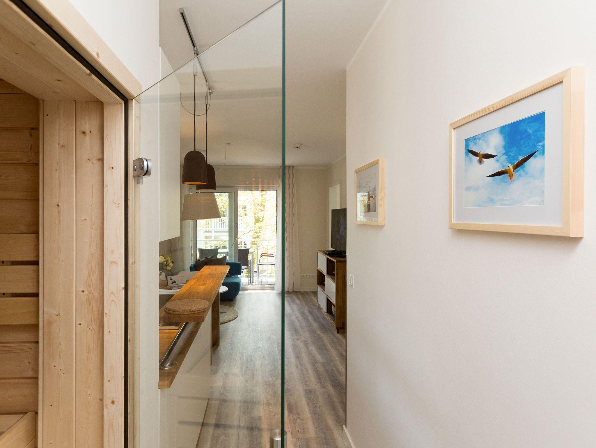 Moderne 3-Raum-Ferienwohnung in Heringsdorf mit Sauna, Balkon und Meerblick, perfekt für entspannte Urlaubstage an der Ostsee.
