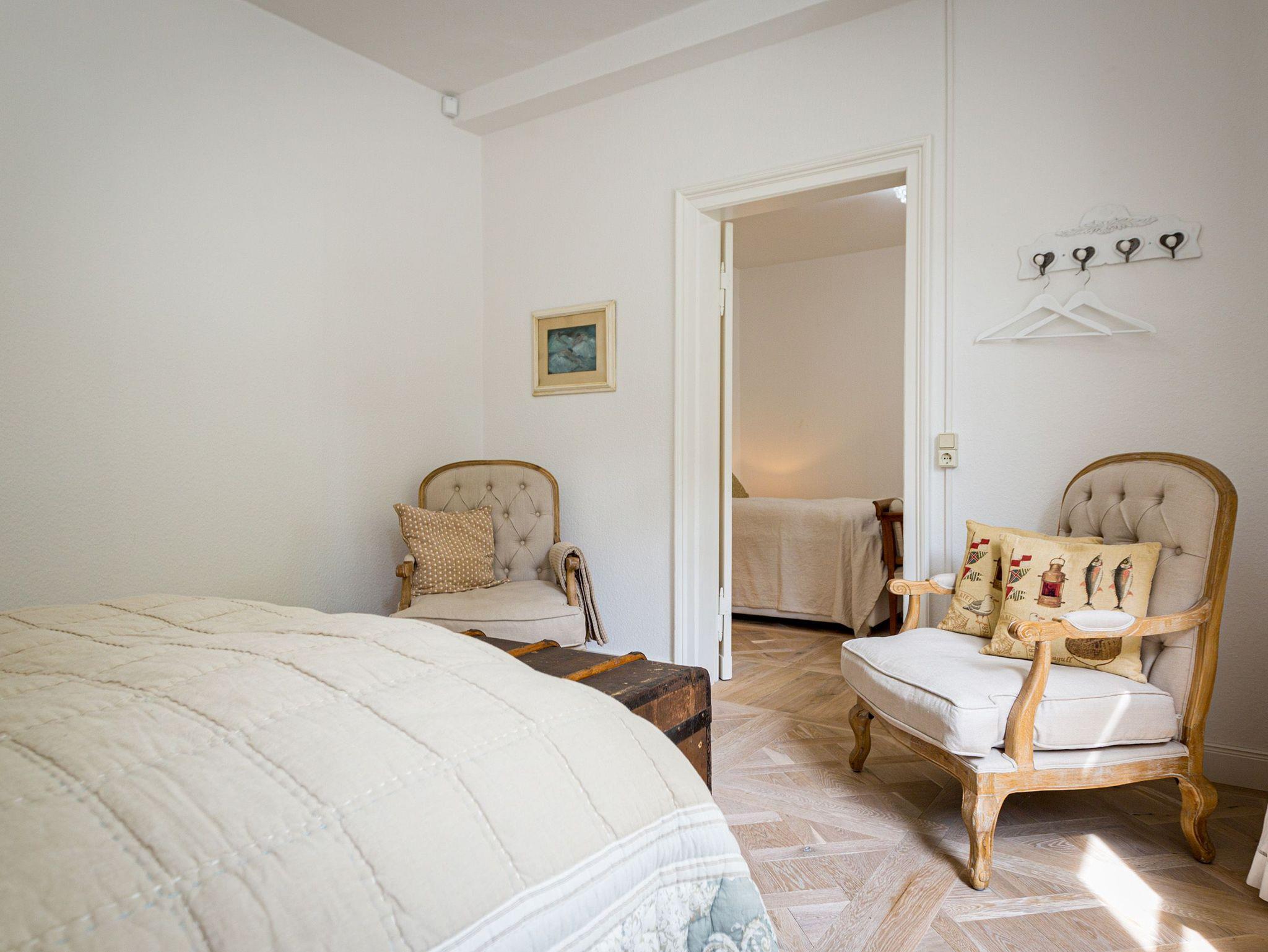Die idyllische Villa Strandschlösschen ist ein echtes Kleinod aus dem 19. Jahrhundert. Modern saniert bietet sie 170 qm modernen Wohnkomfort in historischem Ambiente. Auf 3 Etagen finden bis zu sechs Personen und zwei Kleinkinder bis zwei Jahre (im Kinderreisebett) viel Platz für Ihren Urlaub am Meer. Machen Sie es sich gemütlich in dem wunderschönen Wohnzimmer, der urigen Küche, den zwei charmanten Schlafzimmern oder dem kleinen Studio unter dem Dach. Überall sorgen die liebevoll ausgesuchten Dekorationen und antiken Schmuckstücke für ein ganz besonderes Wohngefühl. Für mitreisende Familie oder Freunde (7. und 8. Person) kann ein kleines Appartement im Anbau dazu gemietet werden.