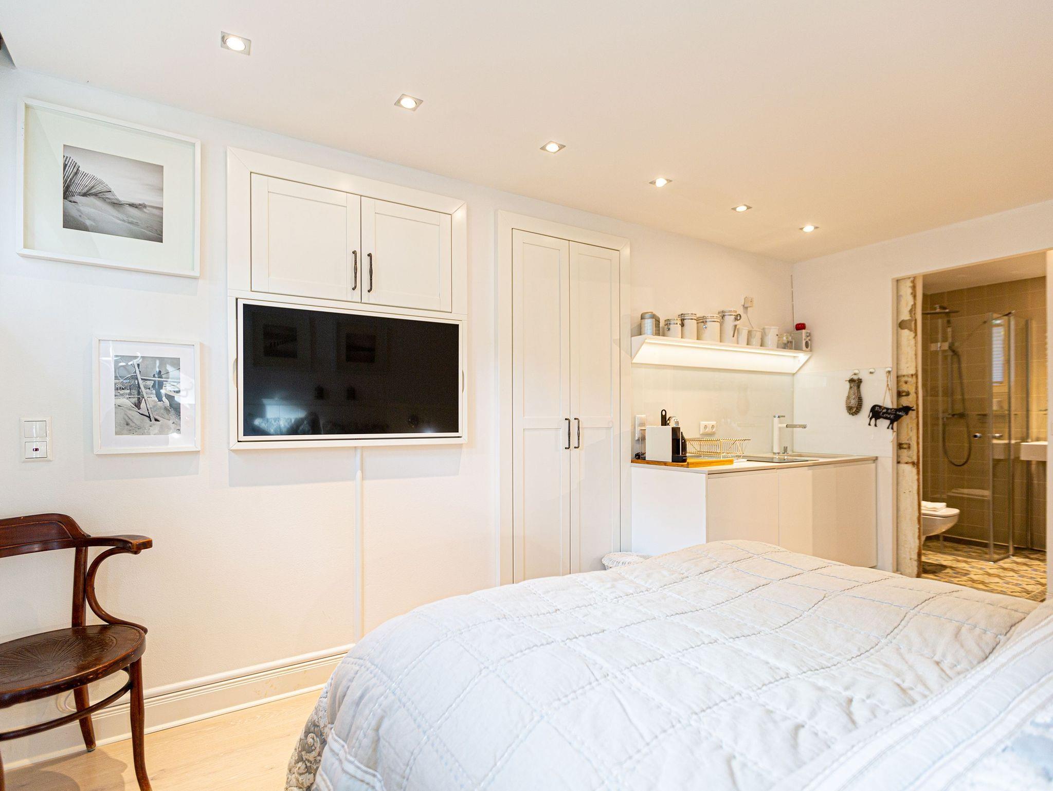 Sie brauchen ein wenig mehr Platz im Urlaub? Für die 7. und 8. Person besteht die Möglichkeit ein separates 30 qm großes Refugium im Anbau zu mieten. Ebenso charmant und liebevoll mit Doppelbett, Duschbad und kleiner Kitchenette ausgestattet, ist es eine schöne Ergänzung zum Ferienhaus. Das gesamte Haus ist mit der neuesten Unterhaltungstechnik wie Flat-TV, WLAN, CD-Player und DVD-Player ausgestattet.