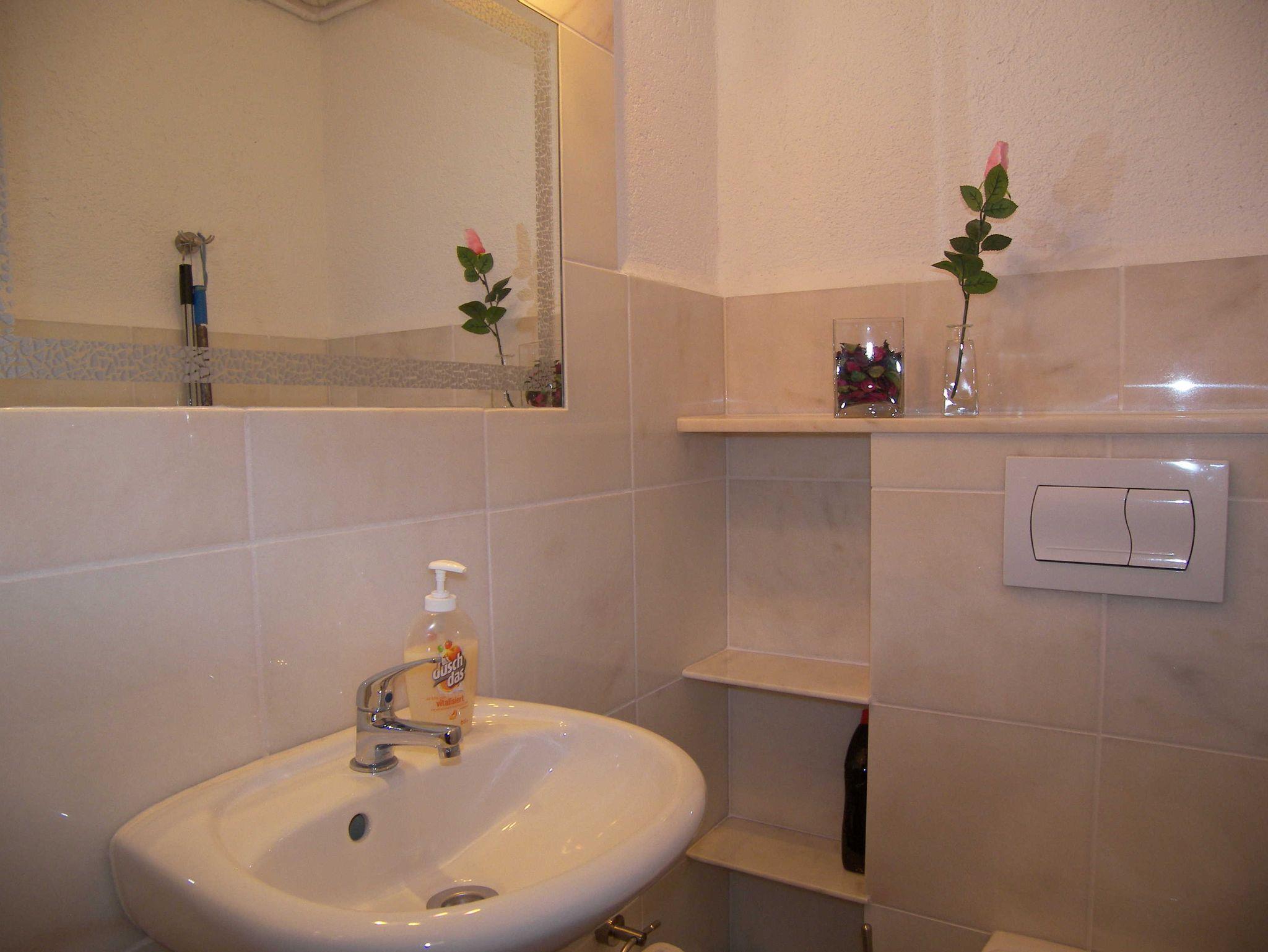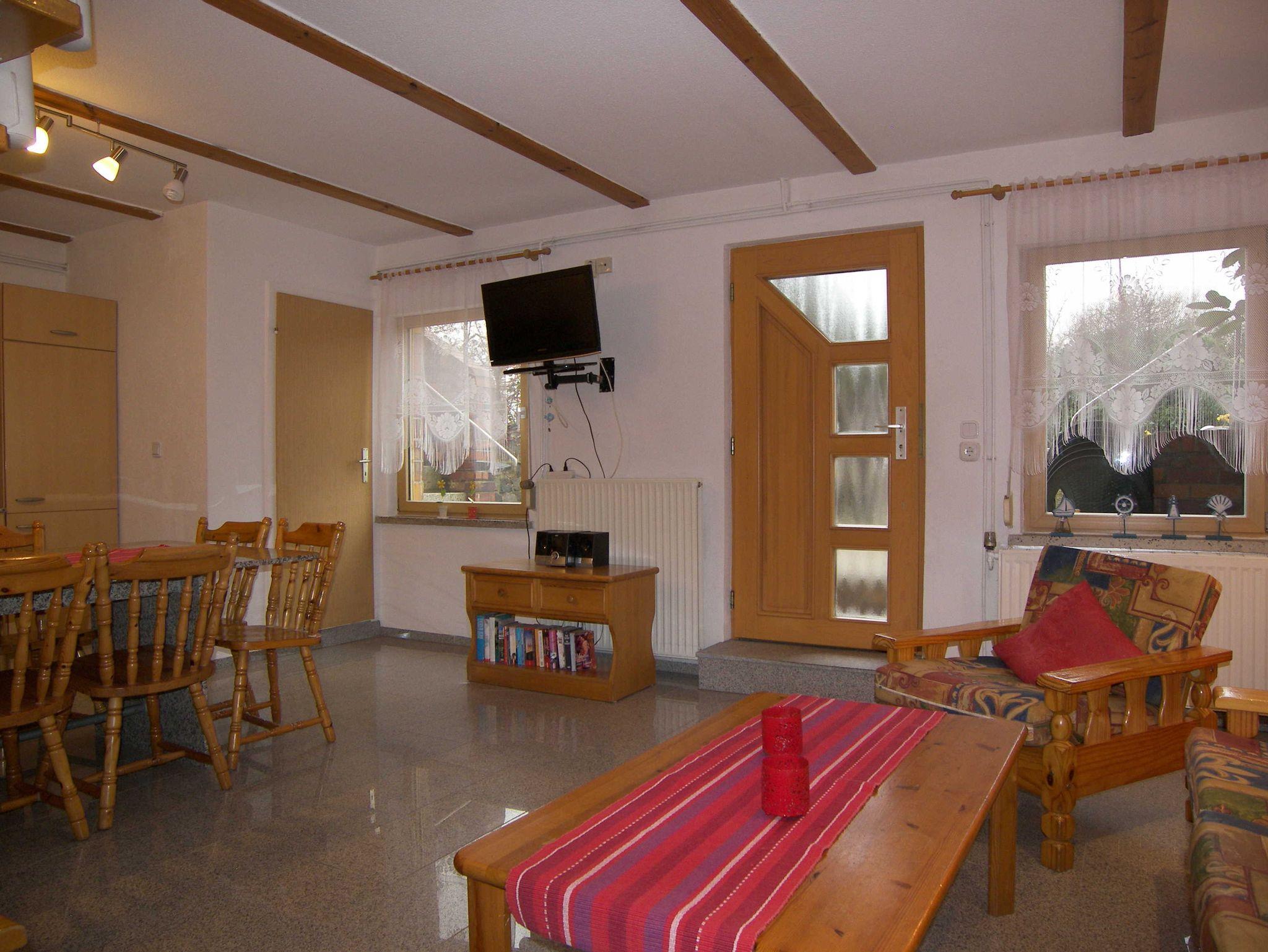 Untergeschoß- Souterrain: Hier befindet sich der großzügige Wohnraum mit Sitzecke, Flachbild Fernseher, Esstisch für 8 Personen, Küchenzeile, Gäste-WC und Terrasse.