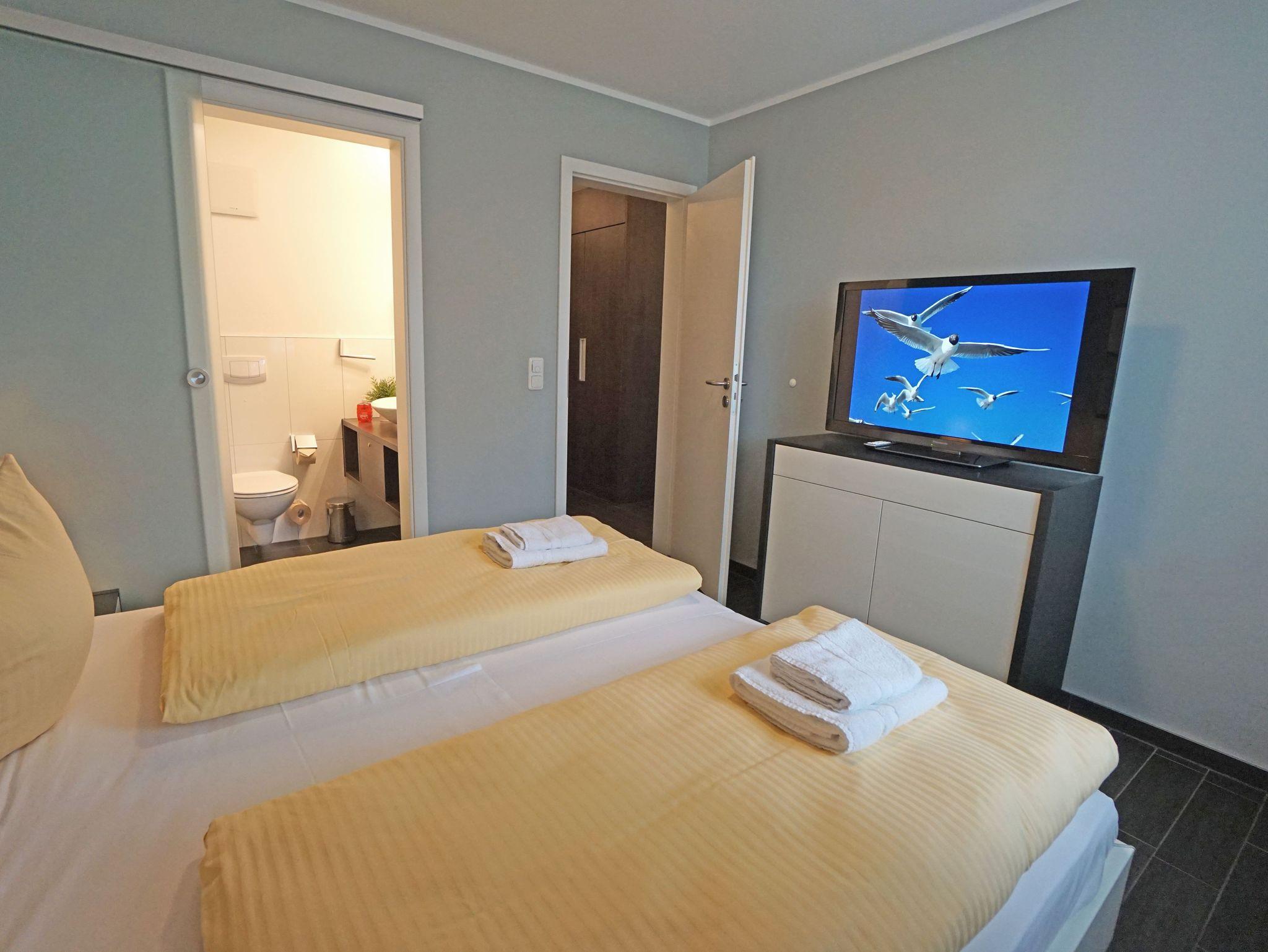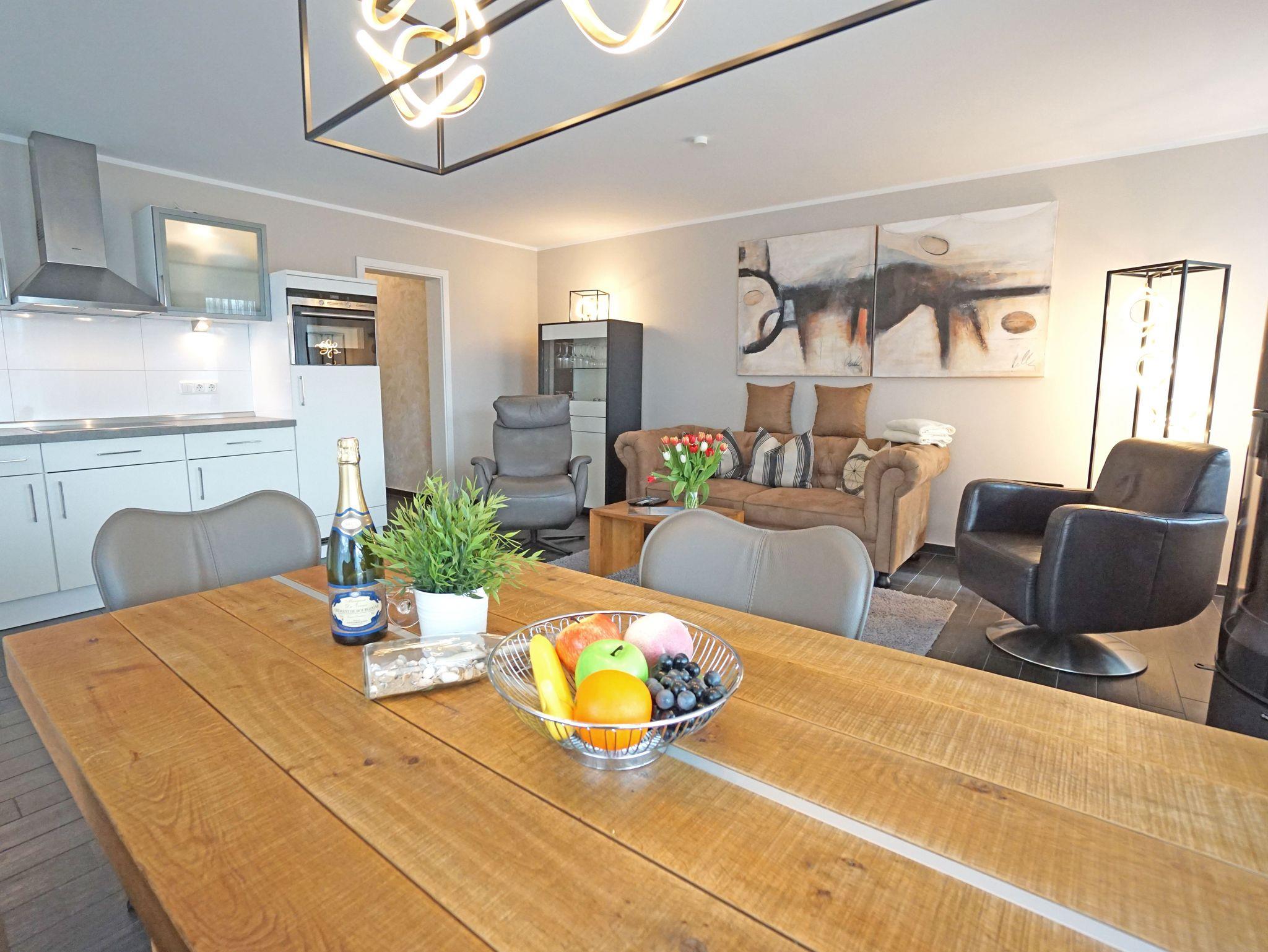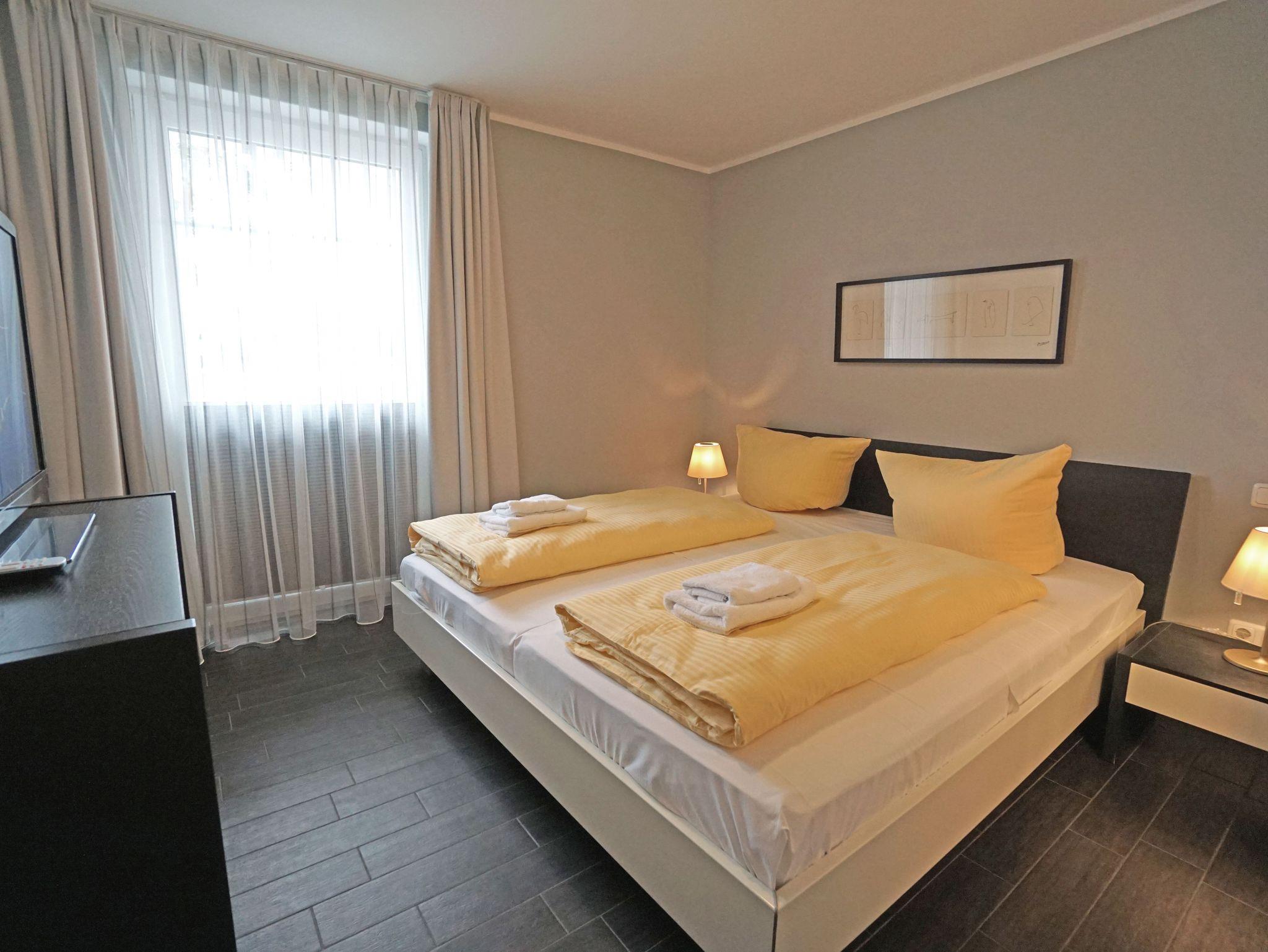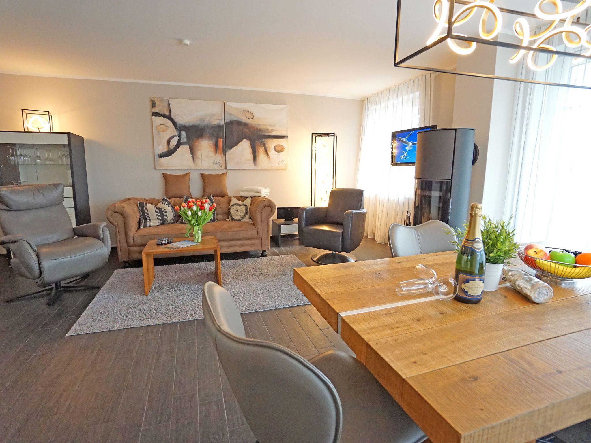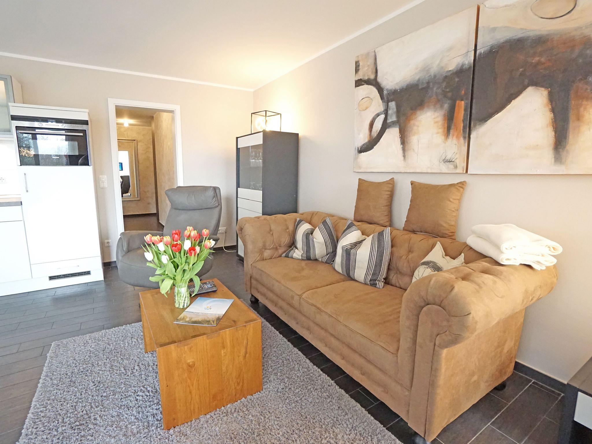 Die Stilvoll eingerichtete 3-Zimmer-Ferienwohnung im 2. OG mit hochwertiger Ausstattung verfügt über zwei Balkone. Ein Fahrstuhl im Haus sowie eine Tiefgarage (Stellplätze eng, eingeschränkte Wendemöglichkeit) stehen Ihnen zur Verfügung. Ein kostenfreier WLAN-Zugang kann genutzt werden.