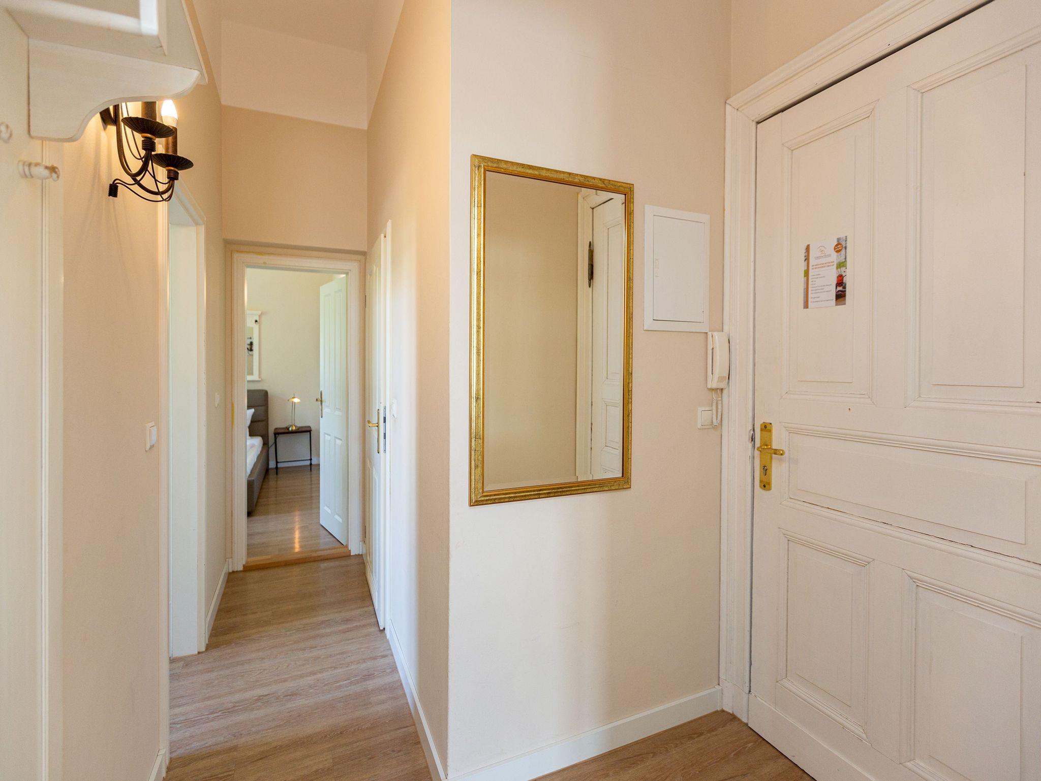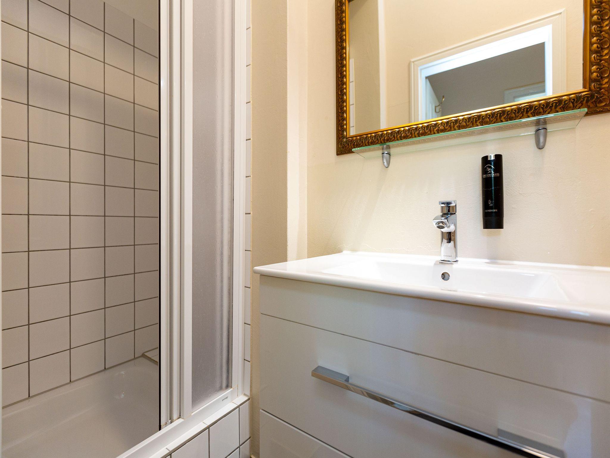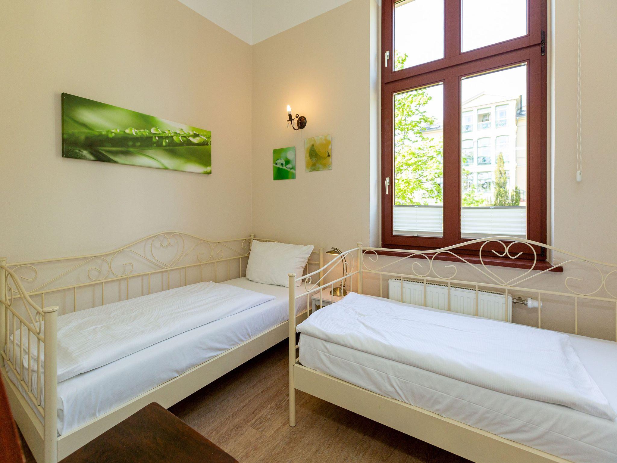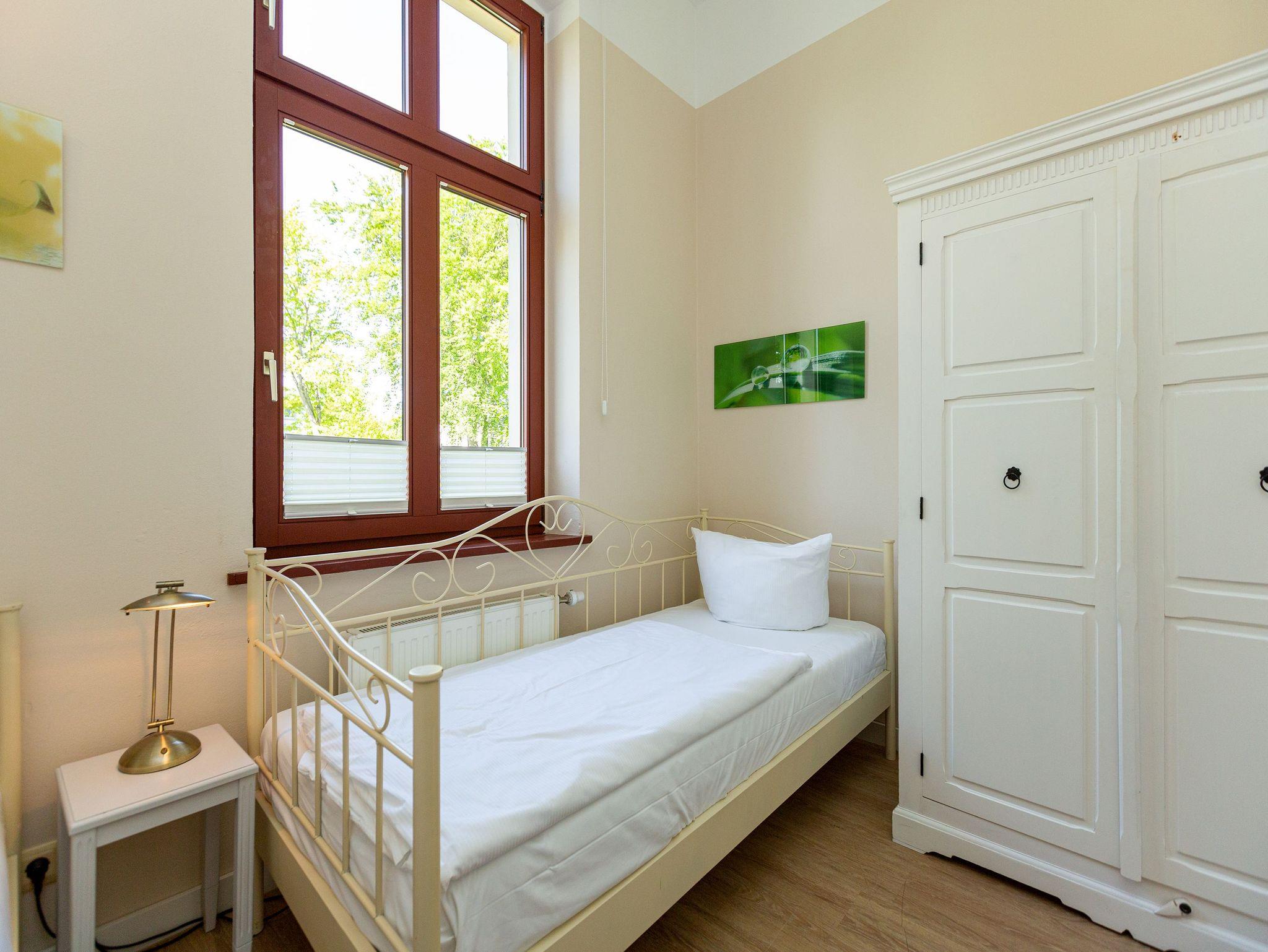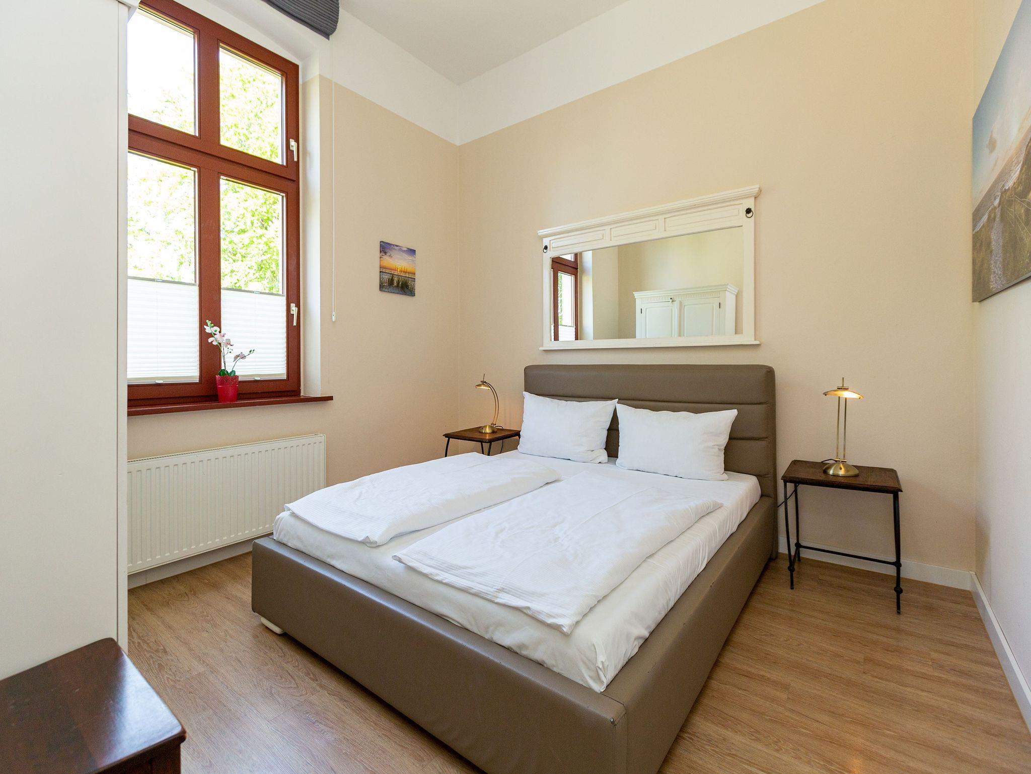 Im 1. Obergeschoss der Villa Arcadia befindet sich das wunderschöne 3-Raum-Appartement, das Platz für bis zu 4 Personen bietet. Das geräumige Wohnzimmer verfügt über eine gemütliche Sitzgruppe, einen Fernseher, einen Essplatz und eine praktische Küchenzeile, die mit allem ausgestattet ist, was Sie zum Zubereiten Ihrer Speisen benötigen. Ein kleiner Erker mit einem bequemen Lesesessel lädt darüber hinaus zum entspannten Verweilen ein. Die Wohnung verfügt über zwei Schlafzimmer, wovon eins mit einem komfortablen Doppelbett und das andere mit zwei Einzelbetten ausgestattet ist. Im Badezimmer befindet sich ein Waschtisch mit WC und Dusch. Für Ihren Komfort sind die Betten bei Ihrer Ankunft bereits bezogen und Handtücher liegen als Erstausstattung bereit. Ein PKW-Stellplatz direkt am Haus steht rundet dieses Appartement ab. WLAN-Netzwerk steht Ihnen im gesamten Haus kostenfrei zur Verfügung.