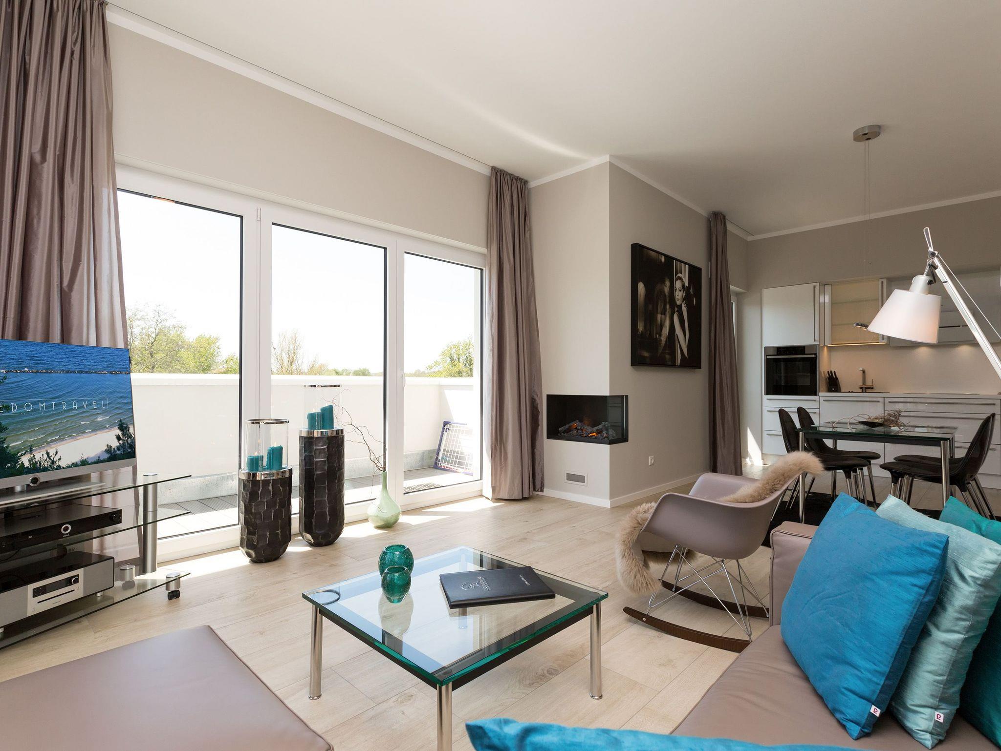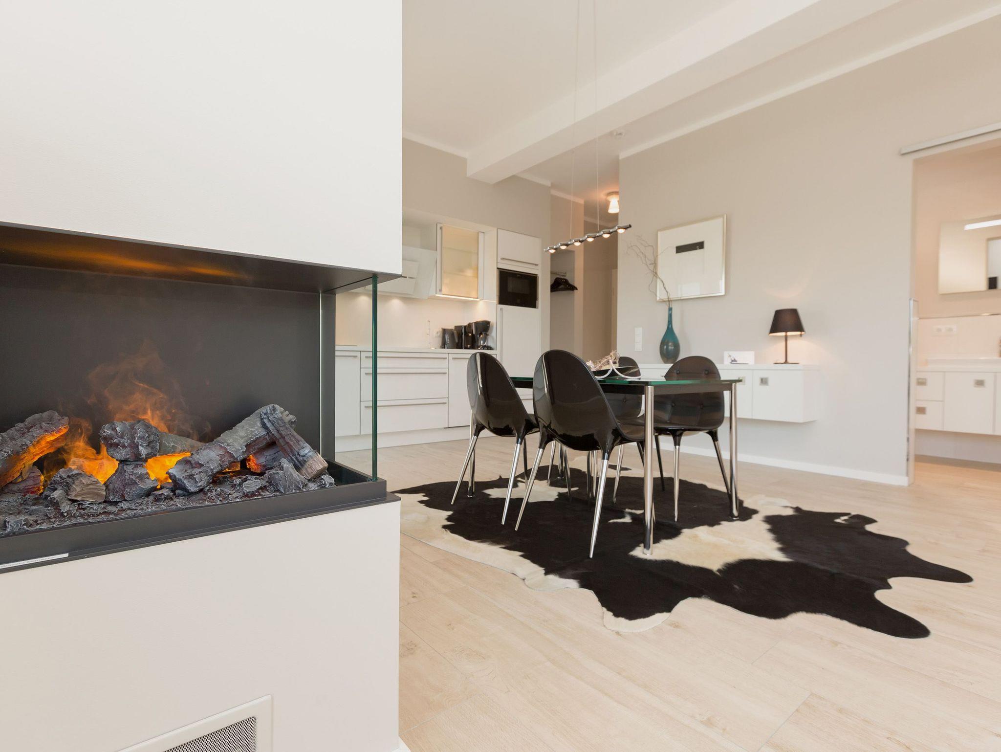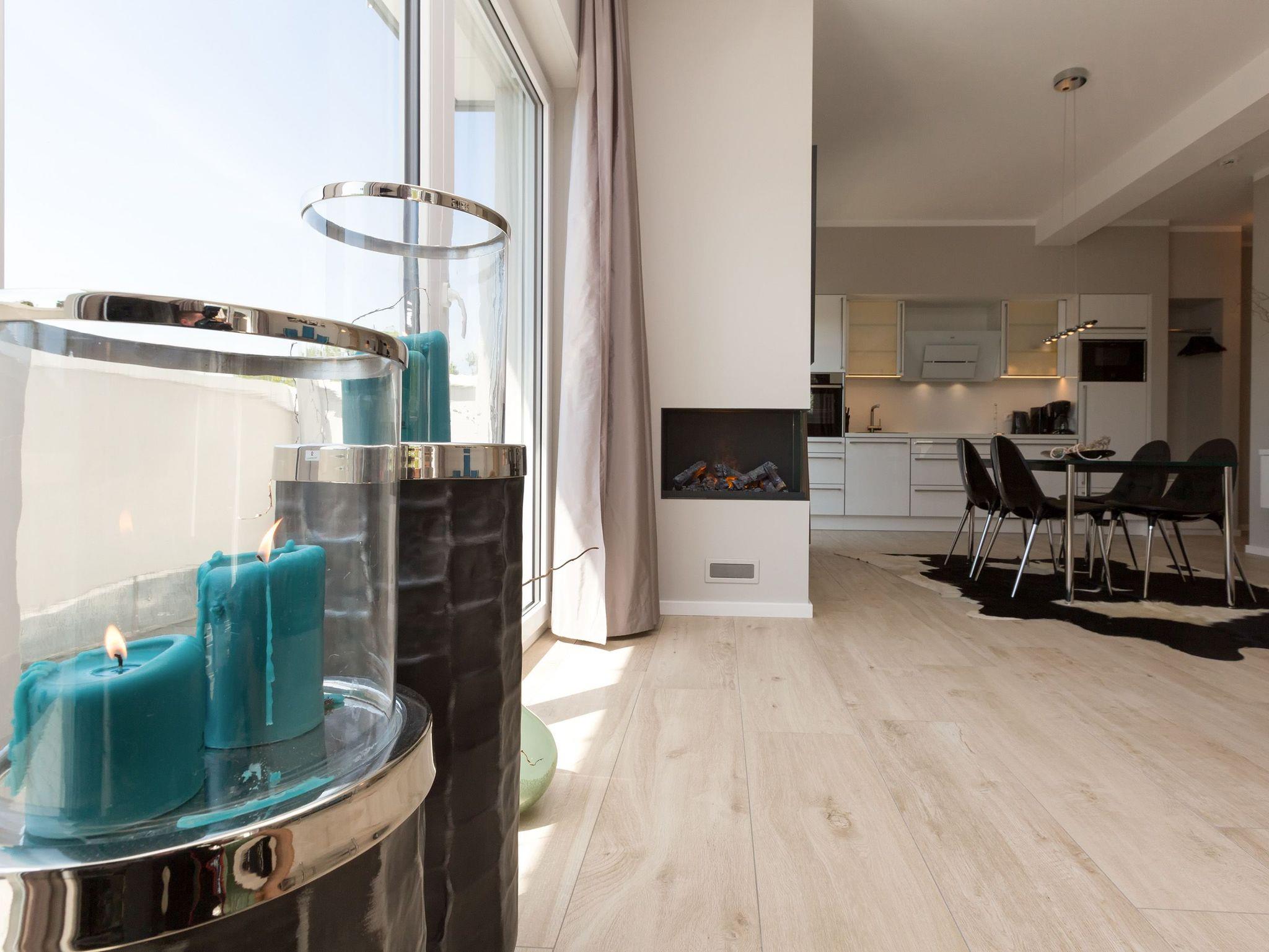 Genießen Sie Luxus und Design in der Dünenresidenz Heringsdorf, nur 50 m vom Strand entfernt mit großzügiger Dachterrasse und Elektrokamin.