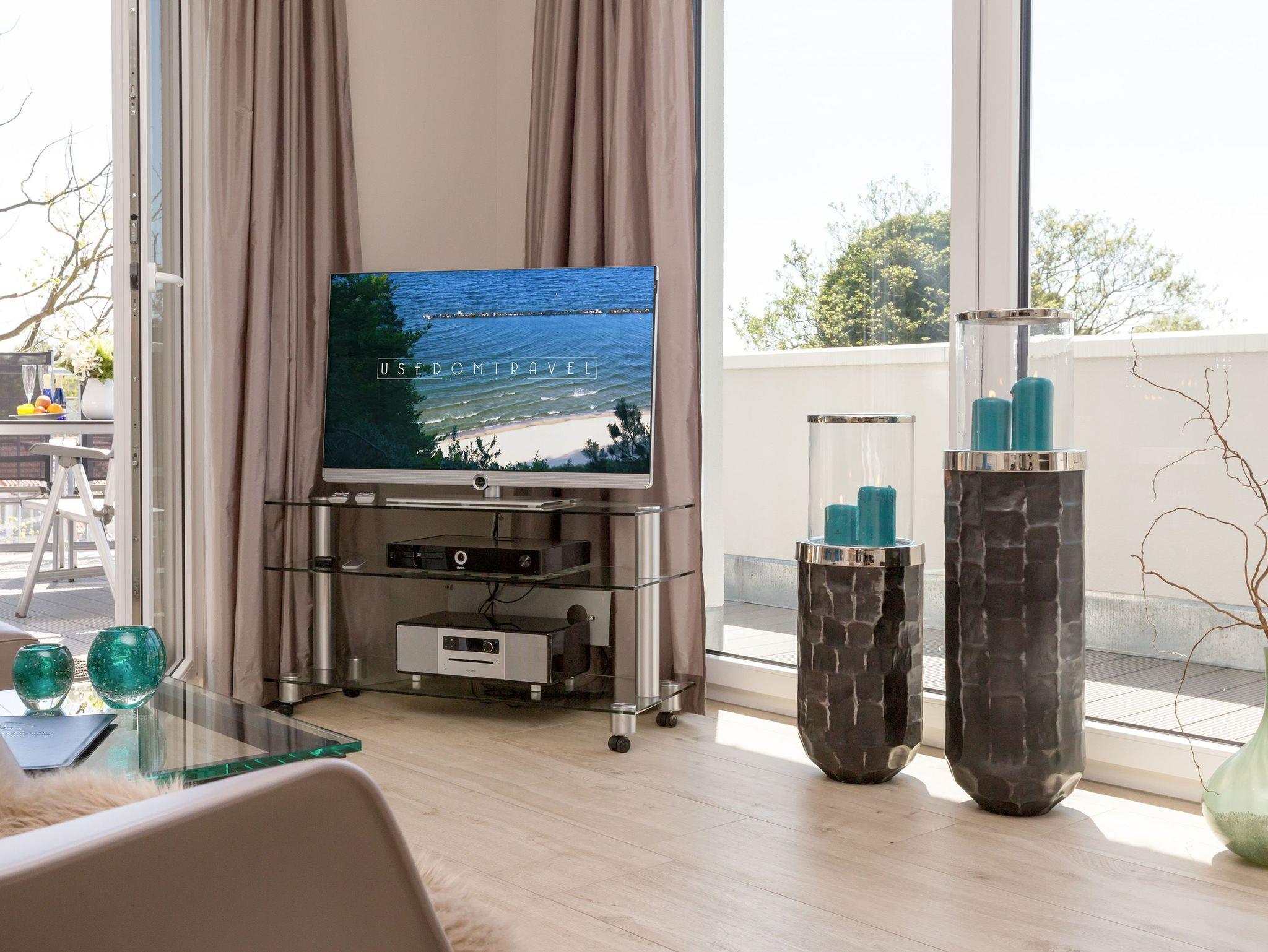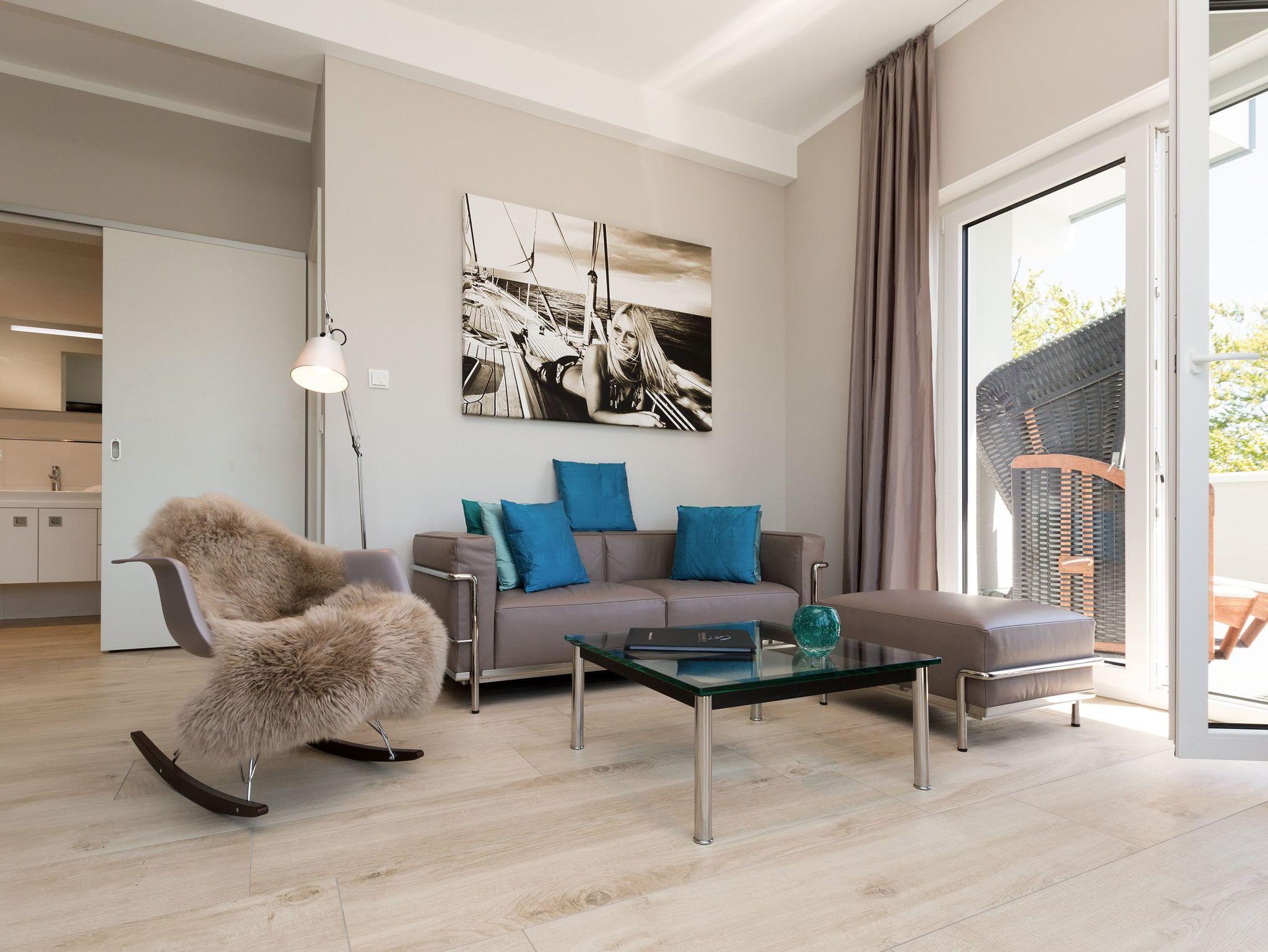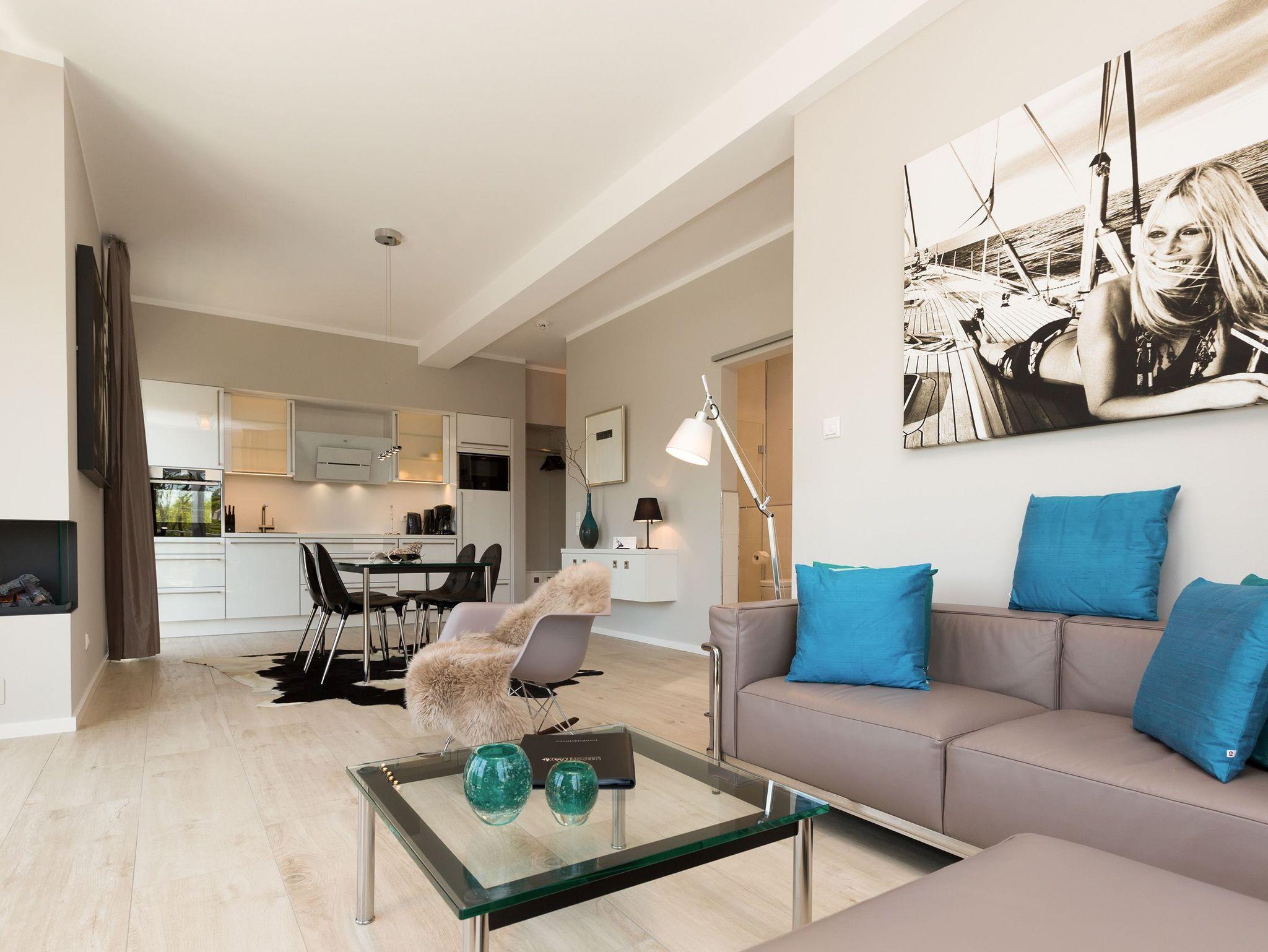 Genießen Sie Luxus und Design in der Dünenresidenz Heringsdorf, nur 50 m vom Strand entfernt mit großzügiger Dachterrasse und Elektrokamin.