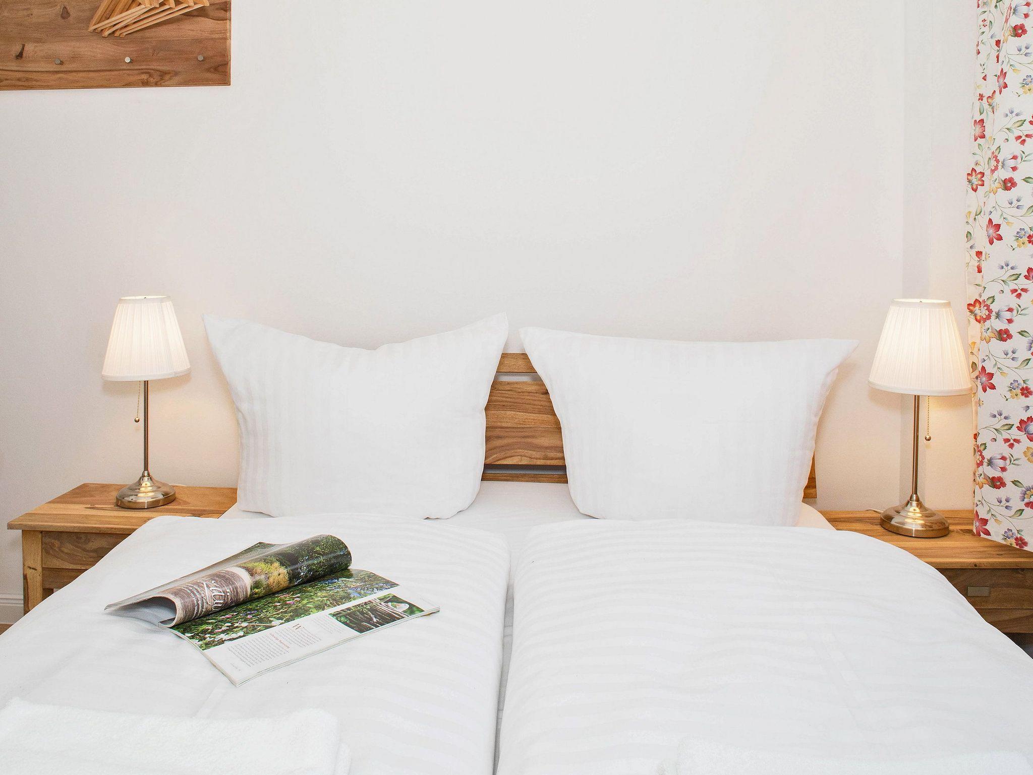 Damit Sie Ihre wohlverdiente Urlaubszeit bereits am Anreisetag in vollen Zügen genießen können,? haben wir das Bett für Sie und das für Ihre lieben Mitreisenden bereits bezogen und ein Duschtuch sowie ein kleines Handtuch bereitgelegt. Ein Badezimmer mit Dusche, WC und einem Haartrockner sowie ein kostenfreier PKW-Stellplatz direkt am Haus und ein WLAN-Zugang runden den Urlaubskomfort dieser Ferienwohnung ab.