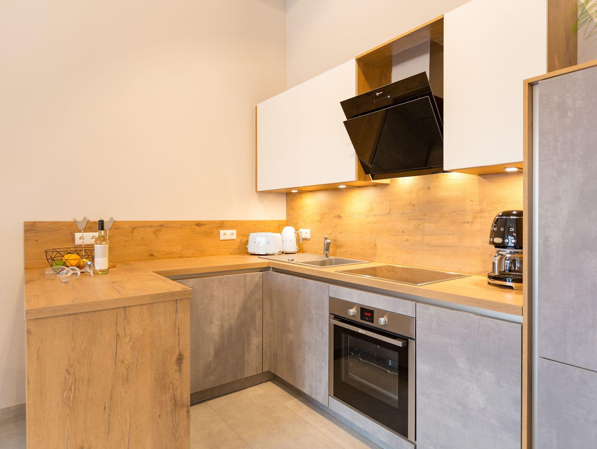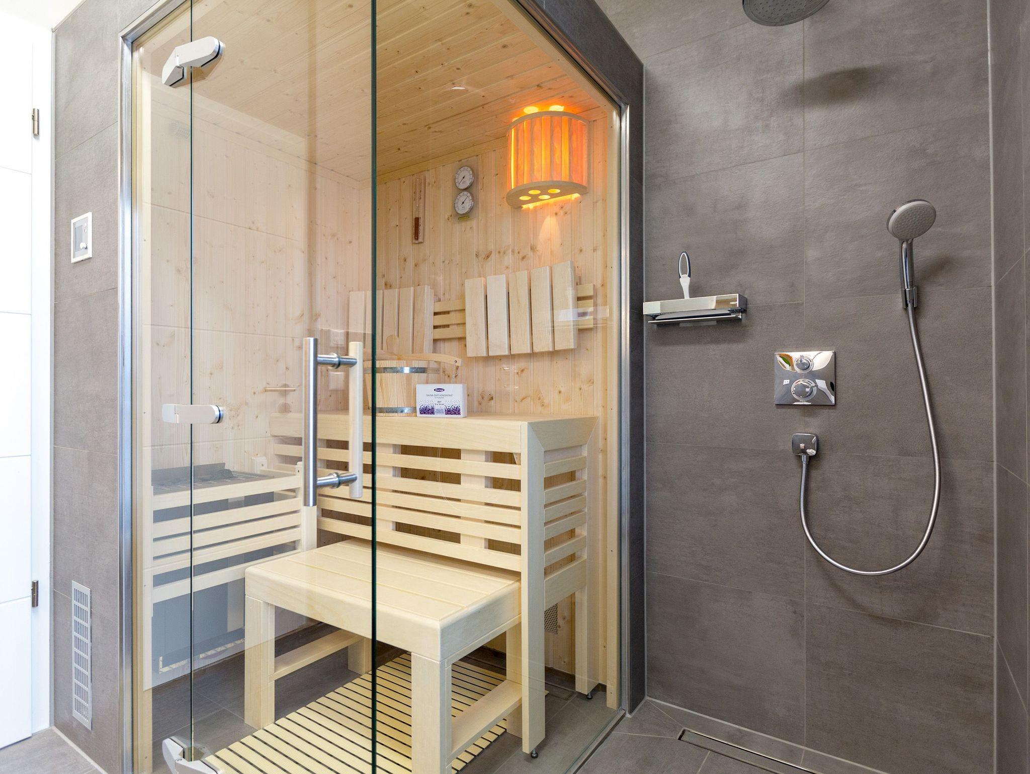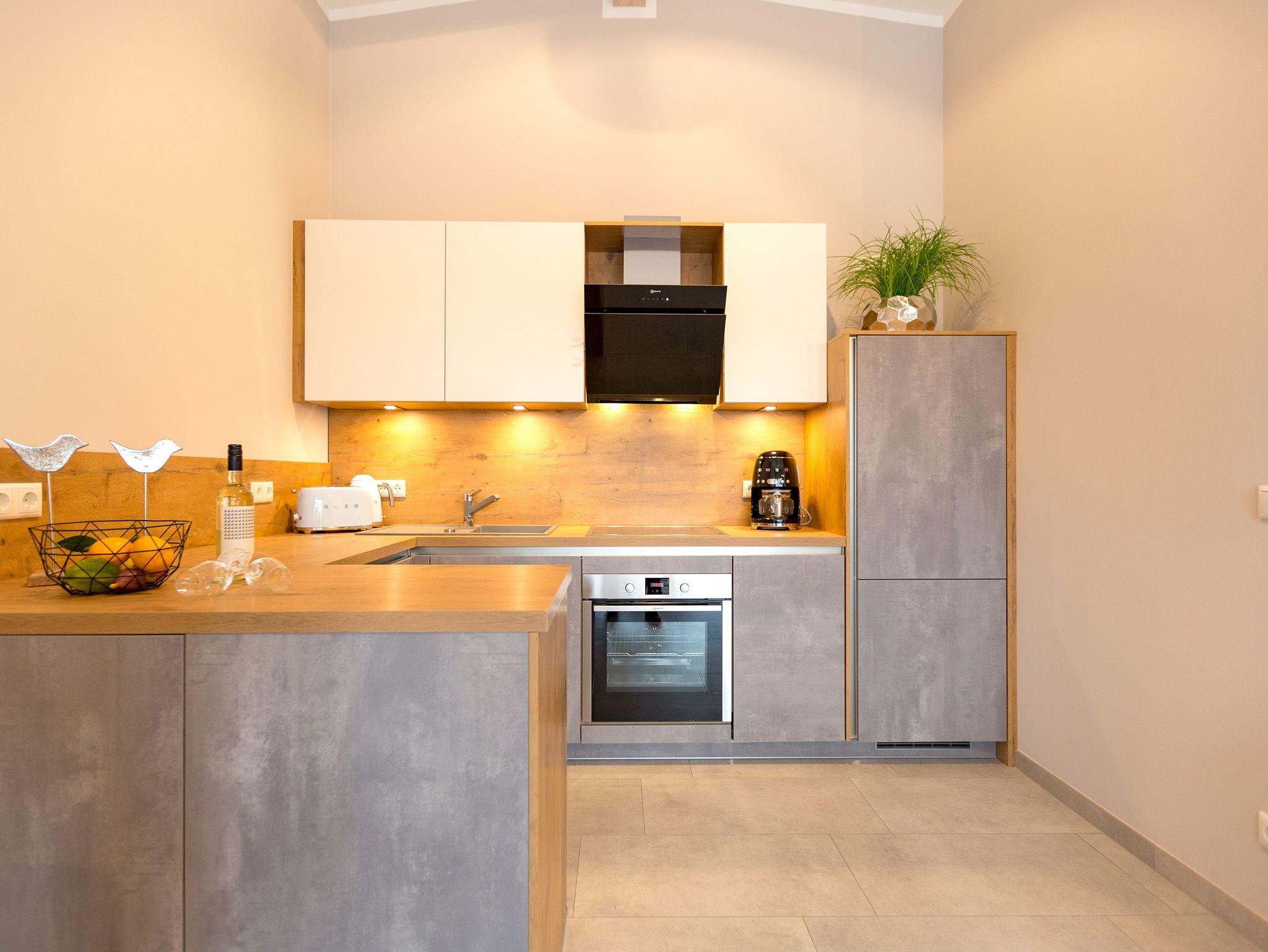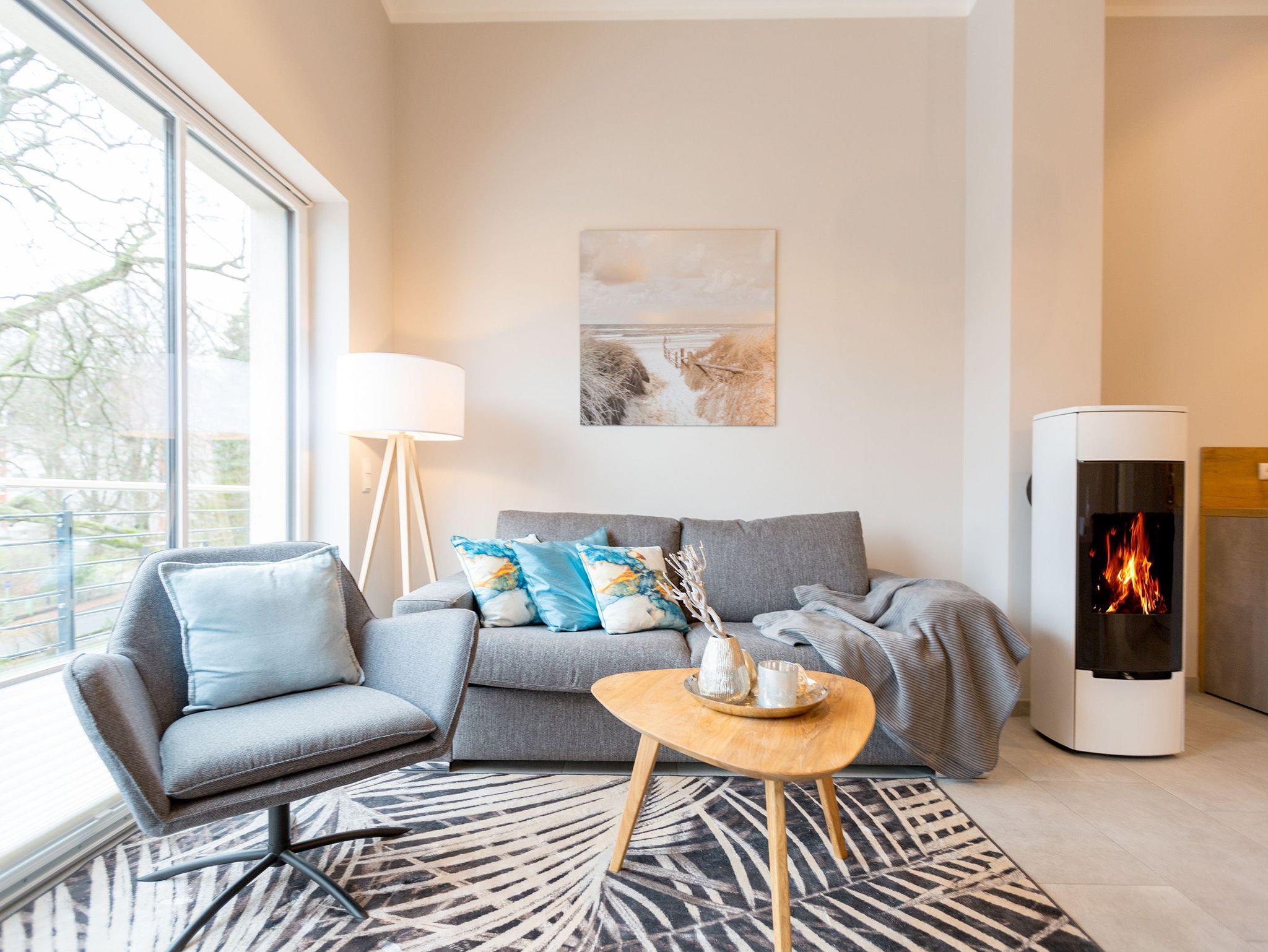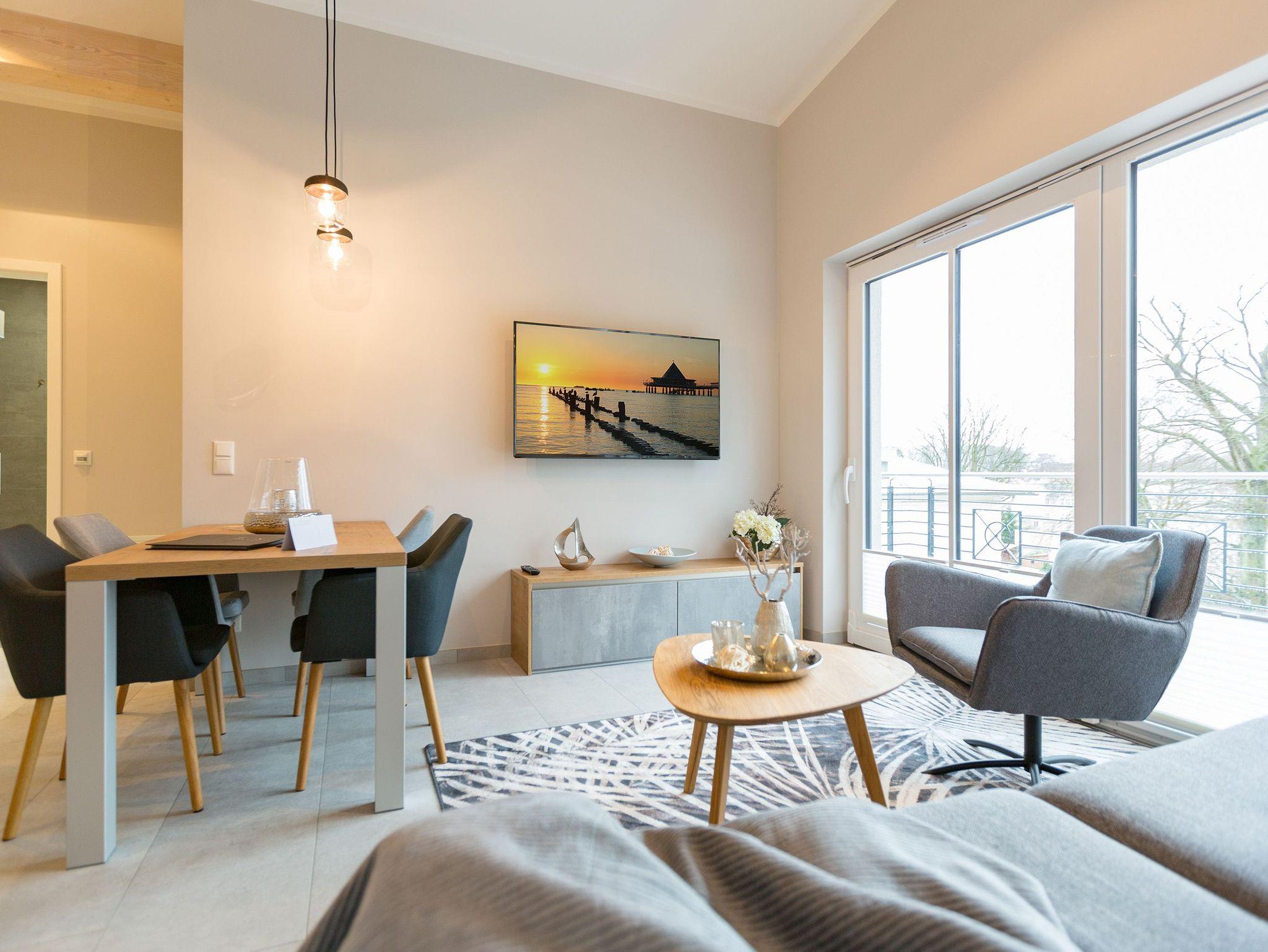 Eine schöne Dachgeschosswohnung (51 Quadratmeter) wartet im 2. Stock nur darauf, Sie in den Urlaubshimmel zu befördern. Zwei Erwachsene finden in den zwei Zimmern den idealen Ort für viel Zeit zu zweit. Durch die 1,40 m breite Schlafcouch im Wohnzimmer besteht die Möglichkeit der Aufbettung für eine Person. Ansonsten lässt es sich auf dem Sofa mit Blick auf den Flat-TV wunderbar entspannen. Über sich die hohen Decken des Daches. Um sich herum erlesene und ausgesuchte Designmöbel, die dem ganzen Appartement ein stylisches Flair geben. Die voll ausgestattete und offene Wohnküche ist mit hochwertigen Markengeräten wie Geschirrspüler, Induktionsherd, Wasch-Trockner, Kühlschrank mit Gefrierfach und Kaffeemaschine bestückt. Ein schöner Essplatz vor dem Kaminofen lädt zu romantischen Essen ein. Vom Wohnzimmer geht?s durch die bodentiefen Fenster auf die riesige umlaufende Terrasse (ca.13 Quadratmeter groß) mit Südost-Ausrichtung hinaus. Lassen Sie sich hier die frische Ostseeluft um die Nase wehen und genießen Sie ein ausgiebiges Sonnenbad oder Ihr Frühstück unter freiem Himmel. Auch vom Schlafzimmer aus können Sie auf die Terrasse hinaustreten. Das komfortable Boxspringdoppelbett (1,80 m x 2,00 m) sorgt für einen erholsamen Schlaf und wunderbare Urlaubsträume. Im Spiegelschrank finden Sie viel Platz für Ihre Garderobe. Auch hier befindet sich ein Flat-TV. Das Bad hat Tageslicht, eine geräumige Dusche, ein Waschbecken mit großem Spiegel und ein WC. Außerdem wartet es mit einer ganz besonderen Urlaubsüberraschung auf, die Sie mächtig ins Schwitzen bringen wird. Entspannen Sie in der eigenen, kleinen Finnischen Sauna. Handtücher müssen Sie nicht mitbringen. Die Betten sind frisch bezogen. In der Tiefgarage ist für Sie ein Parkplatz reserviert.