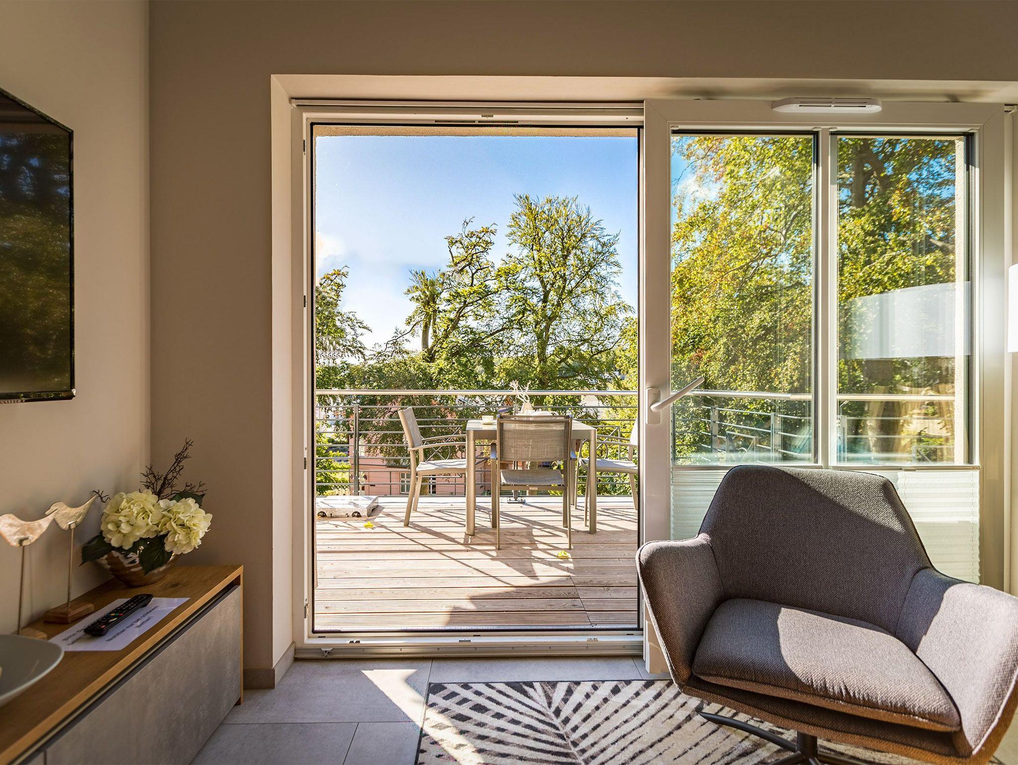 Hier schlägt das Herz des Kaiserbades. Umgeben vom Charme der alten Bädervillen können Ostseeliebhaber eintauchen ins mondäne und schon zu Kaiserzeiten beliebte Heringsdorf. Urlaub in ganz besonderer Atmosphäre. Anders als die umliegenden Häuser ist das Quartier am Waldschloss jedoch ein absolut modernes Kleinod mit stylischem Wohnkomfort. Das erst 2018 neu gebaute Haus empfängt seine Gäste in den Zwei- und Drei-Zimmer-Appartements mit viel Stil und Exklusivität. Es fehlt an nichts. Eine elegante, harmonisch aufeinander abgestimmte und gemütliche Einrichtung, eine hochwertige Küchen-Ausstattung, Kaminöfen, in jedem Appartement eine eigene Finnische Sauna, Balkone oder sonnenüberflutete Terrassen: Wohlfühlen der Extraklasse ist hier angesagt. Mit dem Aufzug geht?s in die oberen Etagen. Und für Ihr Auto gibt es einen für Sie reservierten Tiefgaragen-Stellplatz (Einfahrthöhe max. 2,00 m, Stellplatzbreite max. 2,30m, eingeschränkte Wendemöglichkeit). Und die Ostsee ist auch nur wenige Gehminuten entfernt. Wenn Sie das Besondere im Urlaub lieben, sind Sie im Quartier am Waldschloss genau richtig.